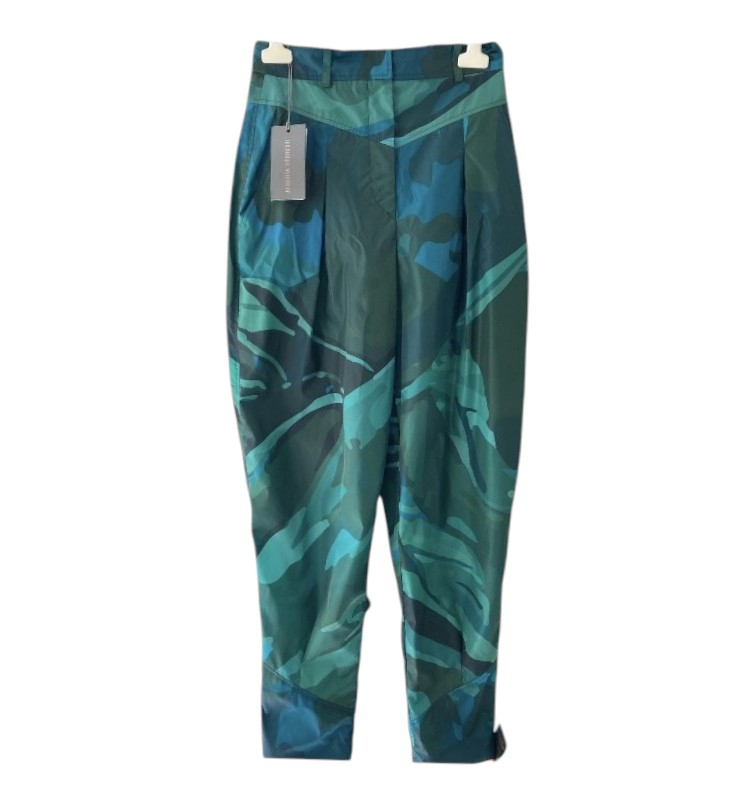 "Spodnie nowe z metkami. Rozmiar z metki S. Wymiary: długość 106cm, talia 35cm, biodra 50cm. Materiał- polyamide."