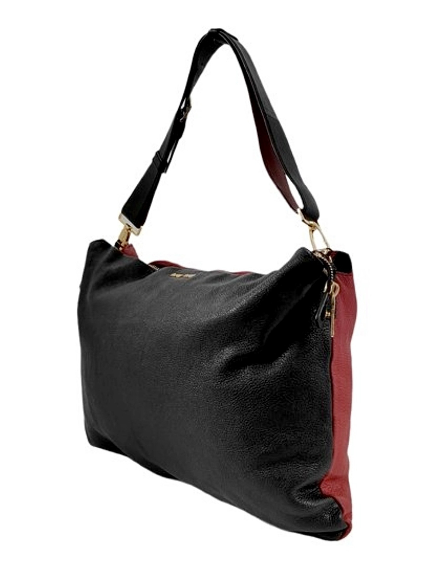 ▪️Wszechstronna i praktyczna torebka z linii Cloud marki Miu Miu, wykonana z miękkiej czarno-czerwonej skóry koziej ze złotymi okuciami.