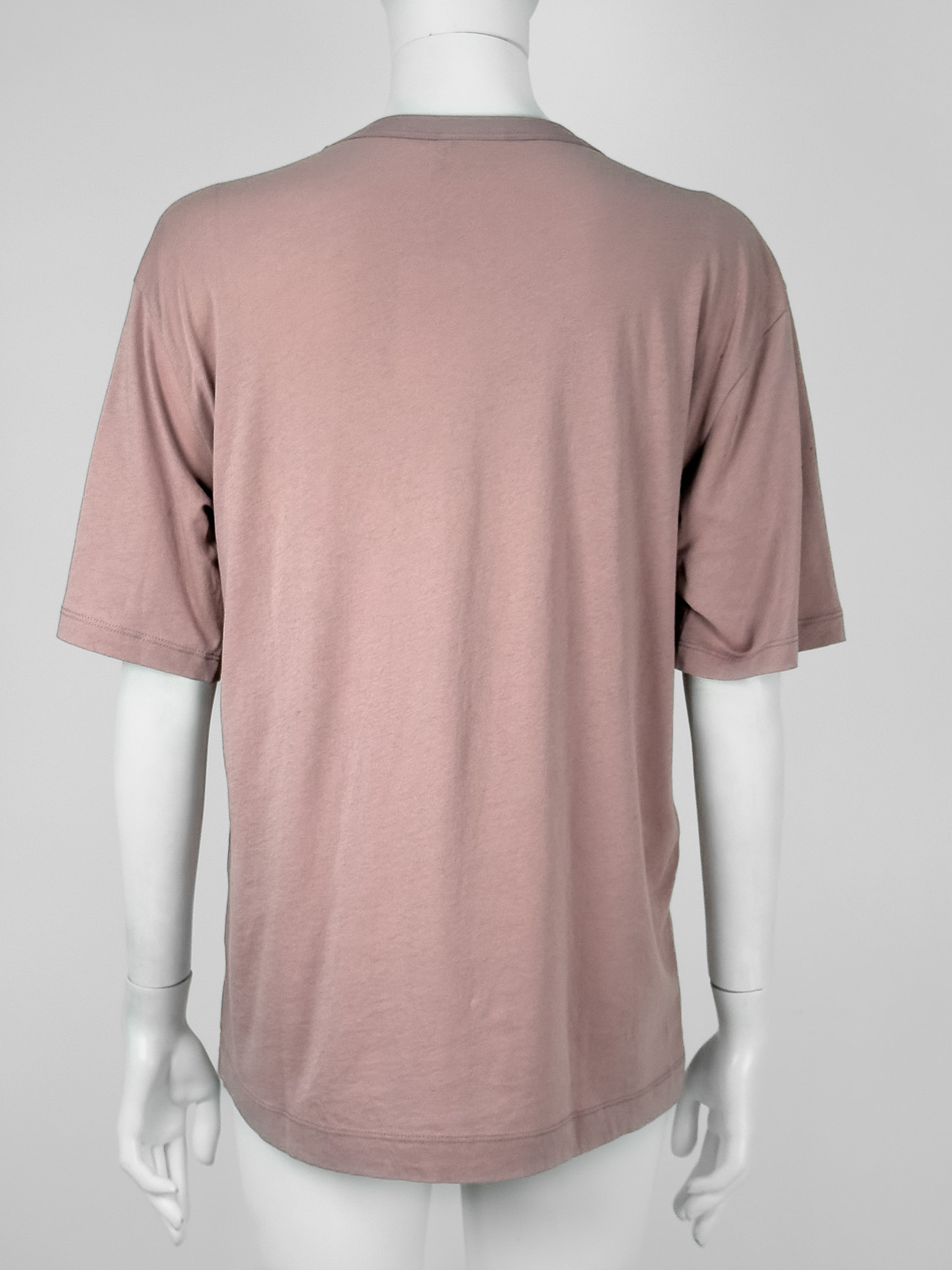 "Bawełniany t-shirt w kolorze bladego różu ozdobiony grafiką palm wysadzanych złotymi cekinami, prosty krój, zaokrąglony dekolt wykończony ściągaczem. Stan dobry, posiada plamę w okolicy biustu. Rozmiar z metki S. Skład: 100% bawełna. Wymiary: szerokość mierzona od pachy do pachy 55cm, długość całkowita 64cm."
