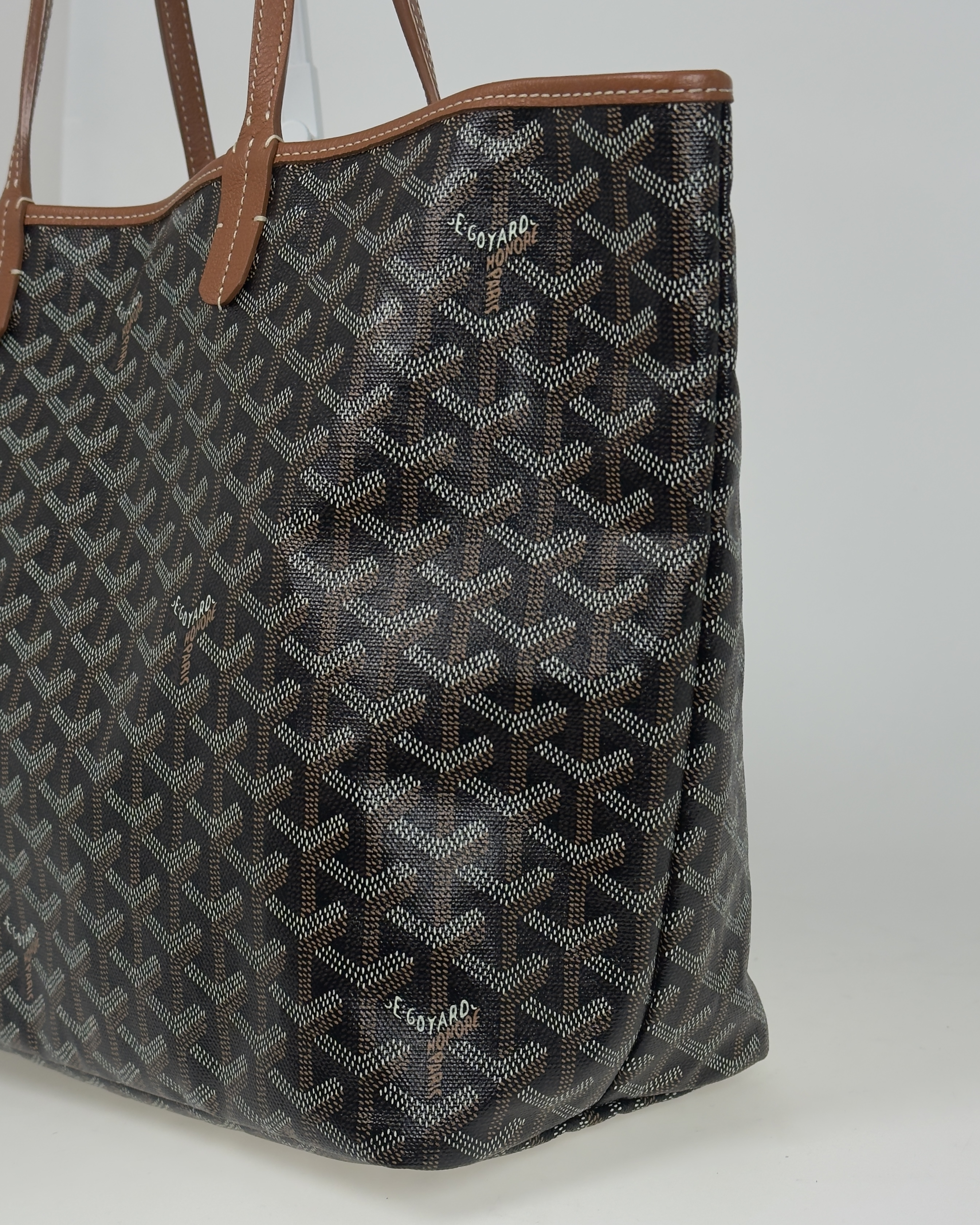 "Goyard Saint Louis PM, brązowy monogram + naturalna skóra, shopper, canvas, skóra cielęca, brak zamka 34x28x15cm, posiada dokumenty oraz etui, stan bardzo dobry"