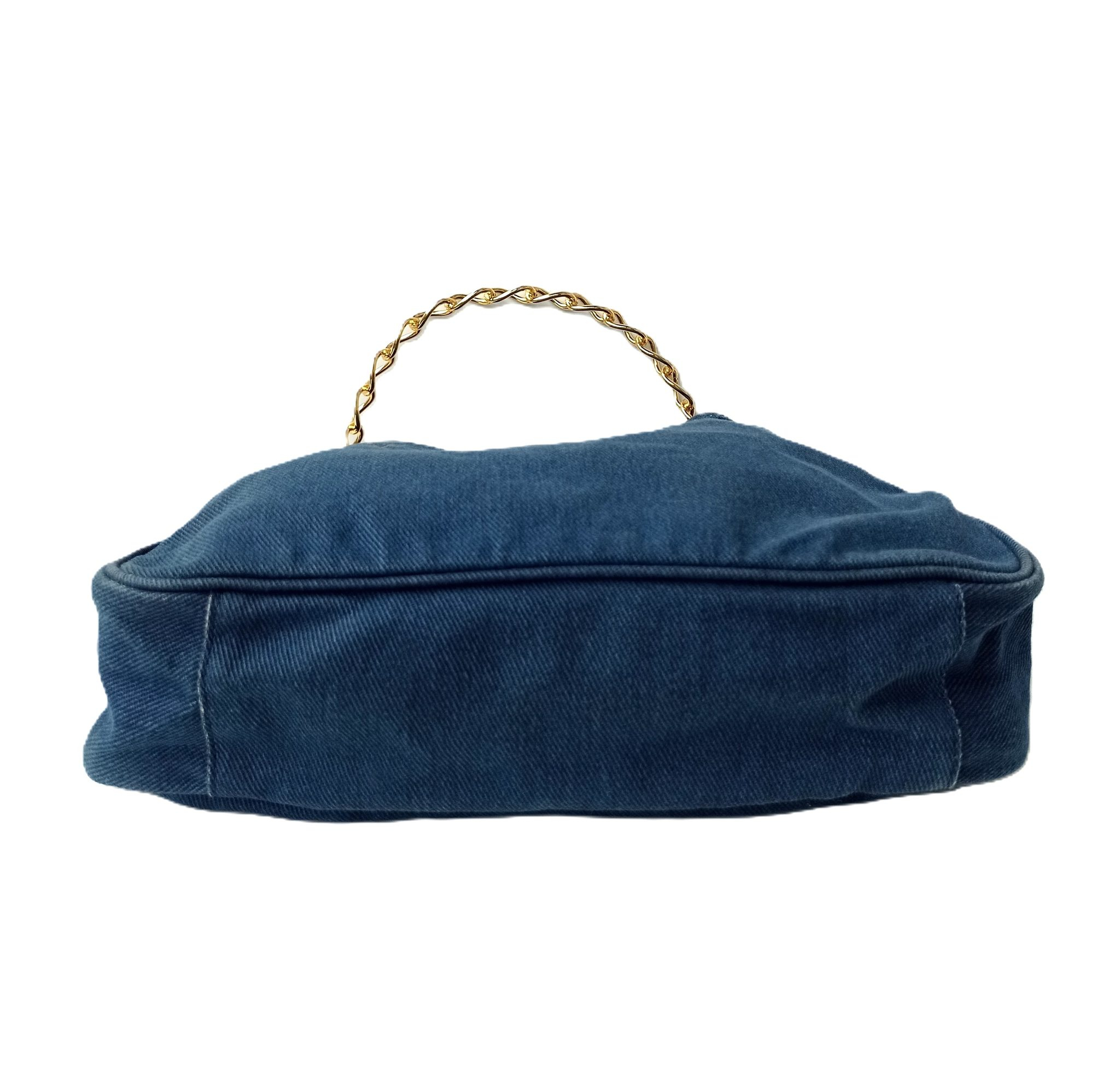 wykonana z niebieskiego jeansu z metalowym uchwytem w kolorze złota oraz złotym logo, z wygodną kosmetyczką zasuwaną na suwak. Środek z kontrastującą podszewką z zasuwaną kieszenią. Możliwość noszenia w ręku i na ramieniu.