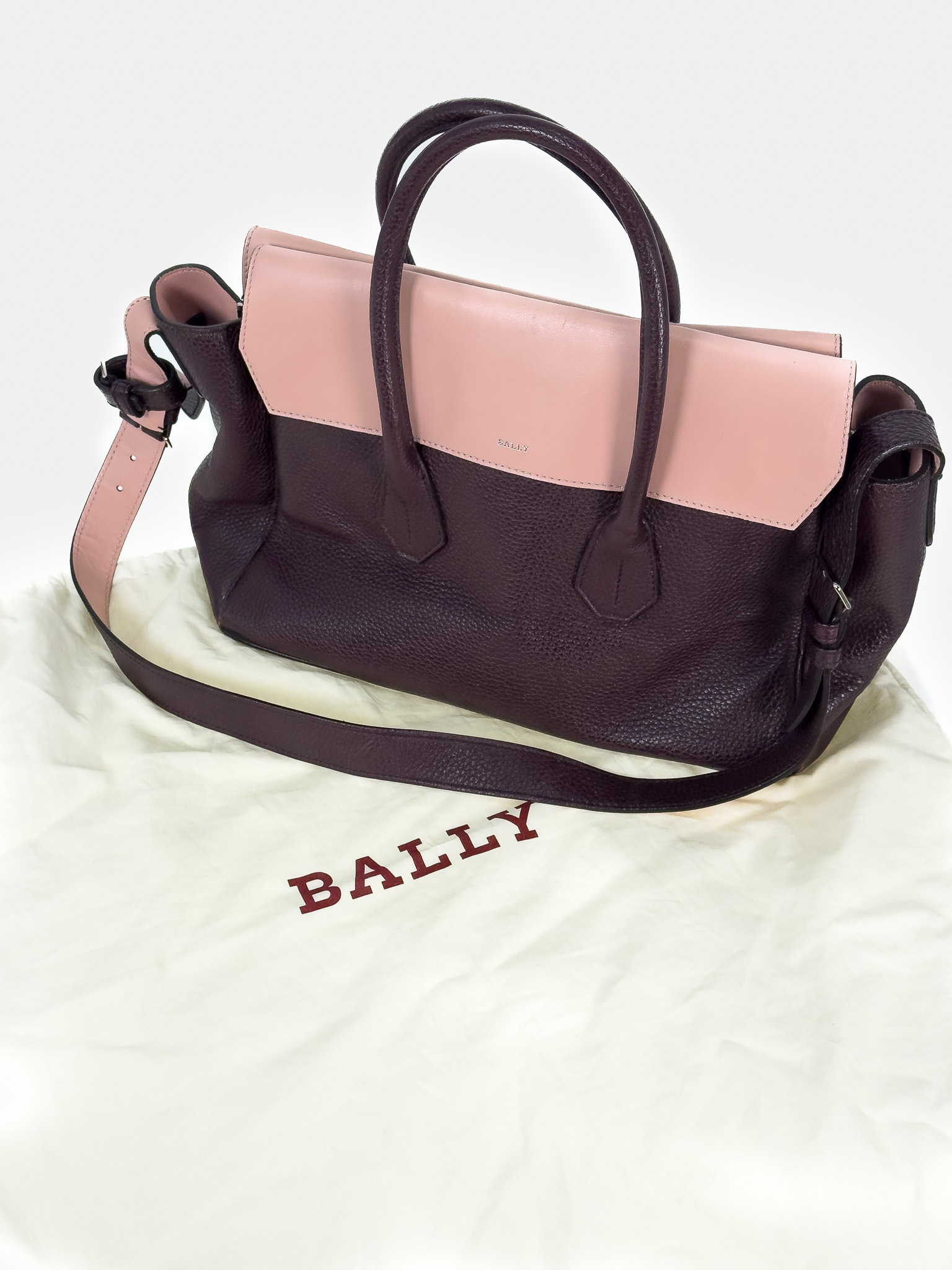 "model Sommetfold w kolorze śliwkowo-różowym. Klasyczna torba typu tote, wykonana ze skóry cielęcej, zapinana na magnes, pojemne wnętrze ze skóry o kolorze różowym, dodatkowo kieszonka na zamek. Z przodu torebki wybite srebrne logo marki, jedna kieszeń zewnętrzna pod przednią klapą. Posiada długi, regulowany, nieodpinany pasek. Torebka nosi ślady użytkowania, zarysowania, przebarwienia na skórze, przetarcia na rogach, wewnątrz torebki nieznaczne ślady z długopisu. Stan dobry. Worek przeciwkurzowy w zestawie. Wymiary: wysokość 28 cm, szerokość 35cm, głębokość 18 cm."