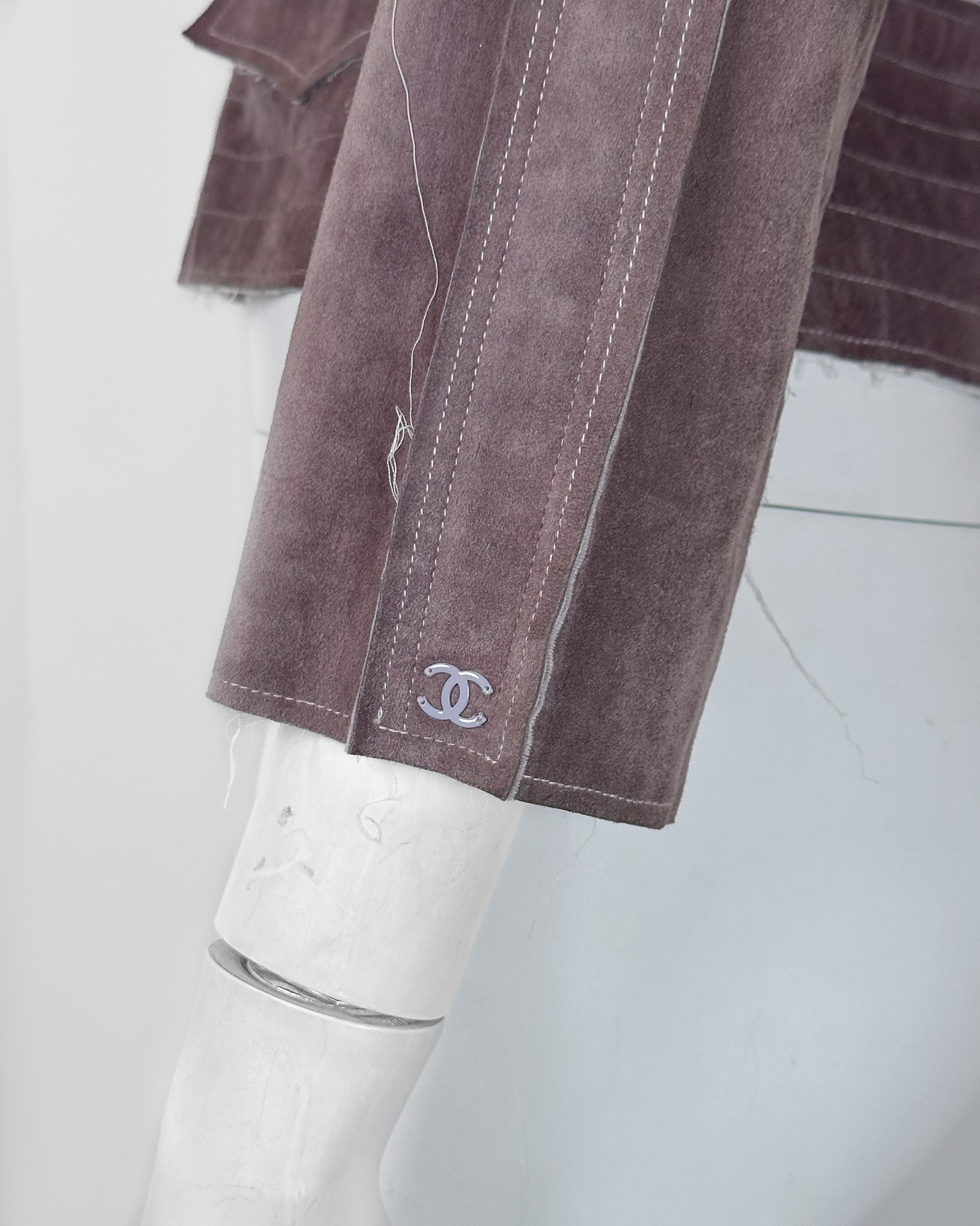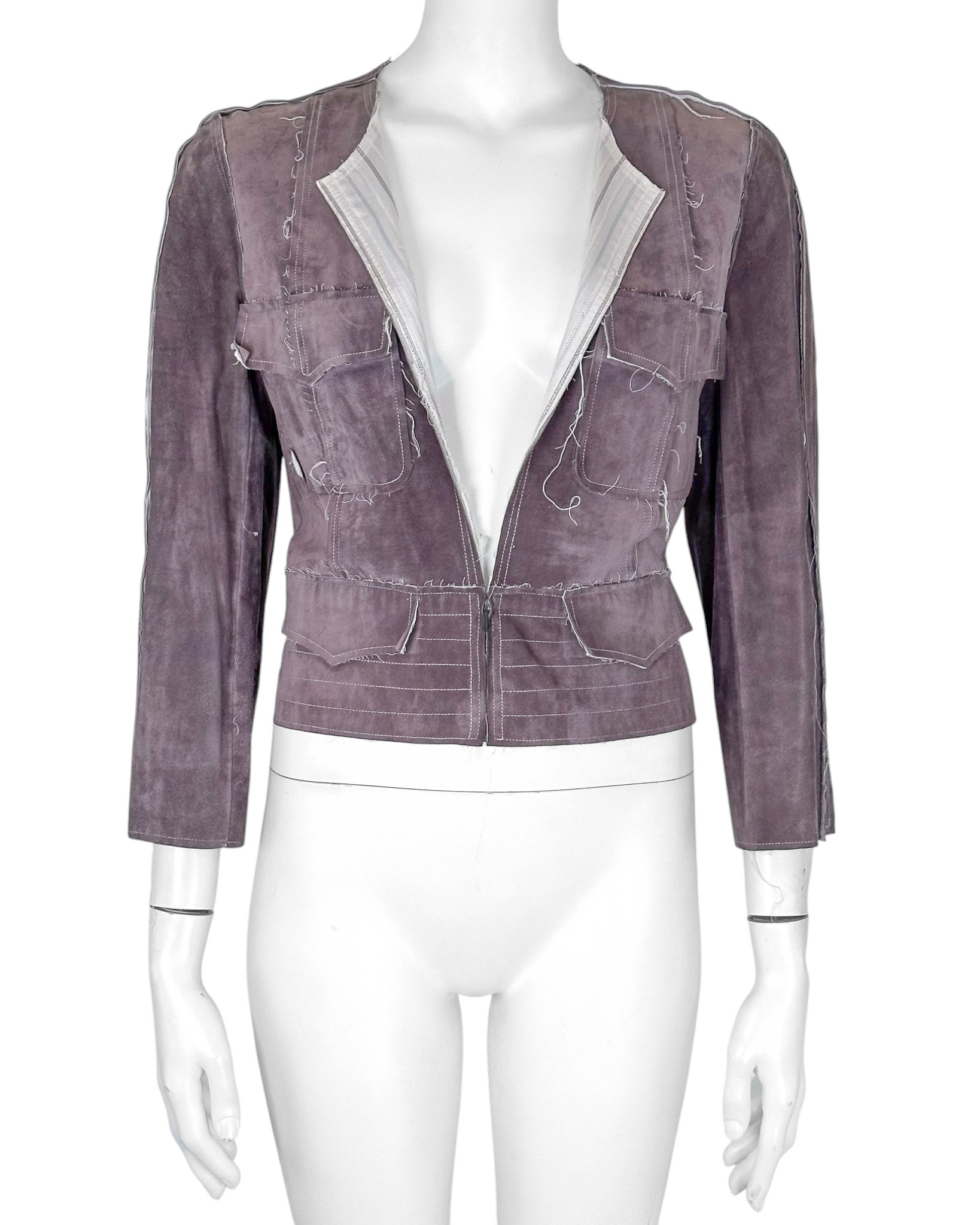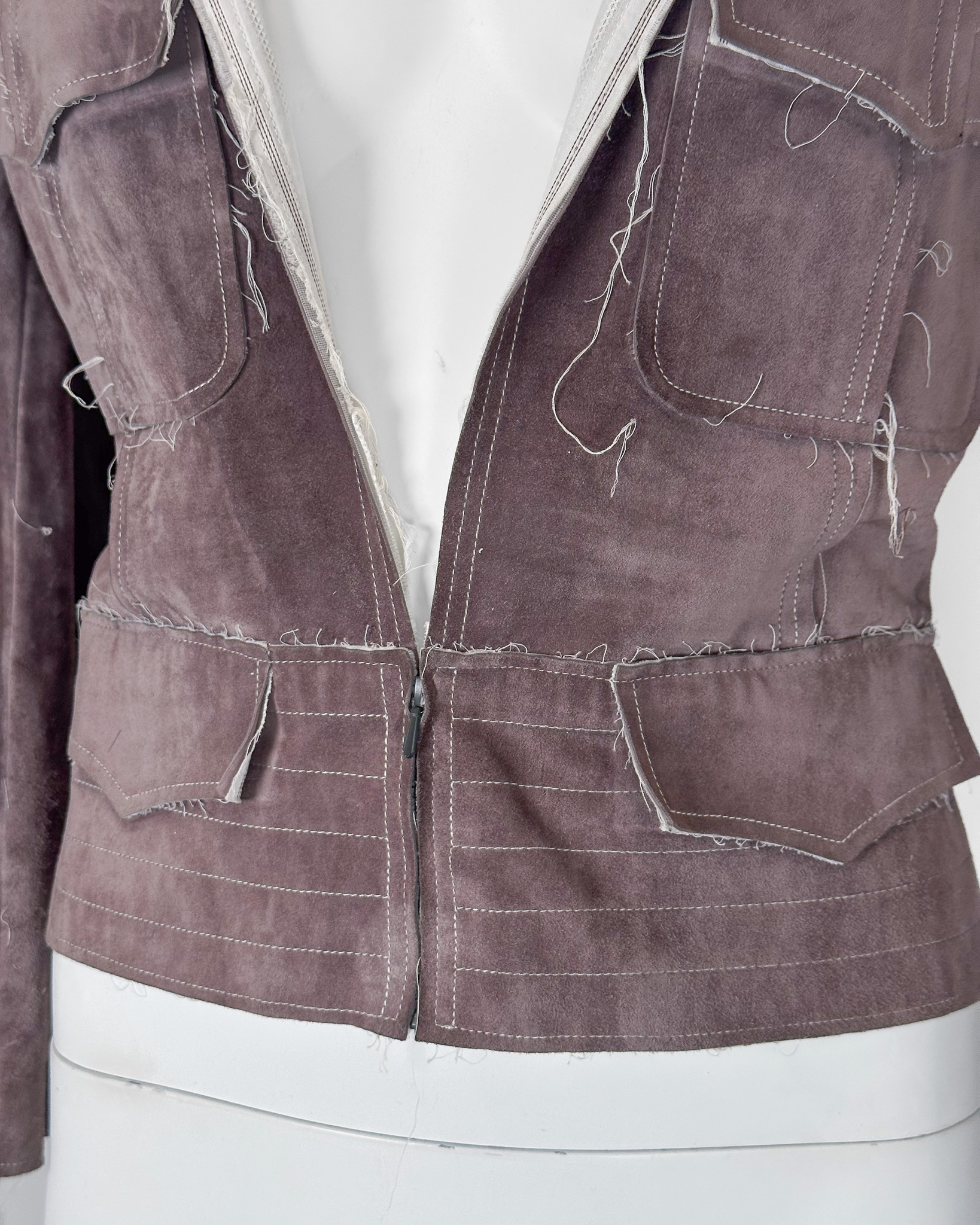 "Żakiet, kurtka skórzana-zamszowa, distressed, przeszywany biała nitką. Rozmiar 42."