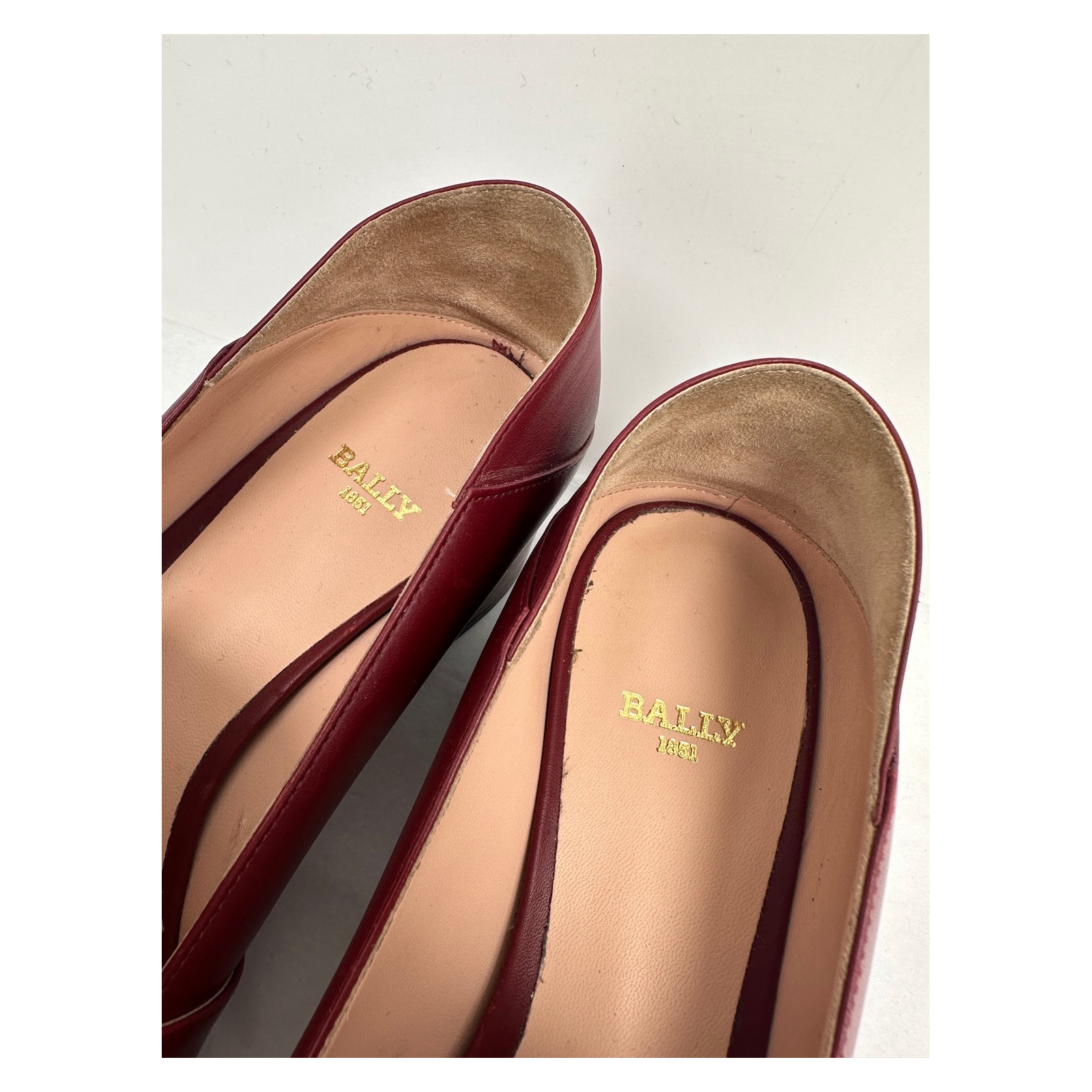 "bordowe skórzane półbuty ze złotą klamrą na przodzie, niski obcas słupkowy, zelówka, stan dobry, widoczne zarysowania na skórze. Rozmiar 36,5."