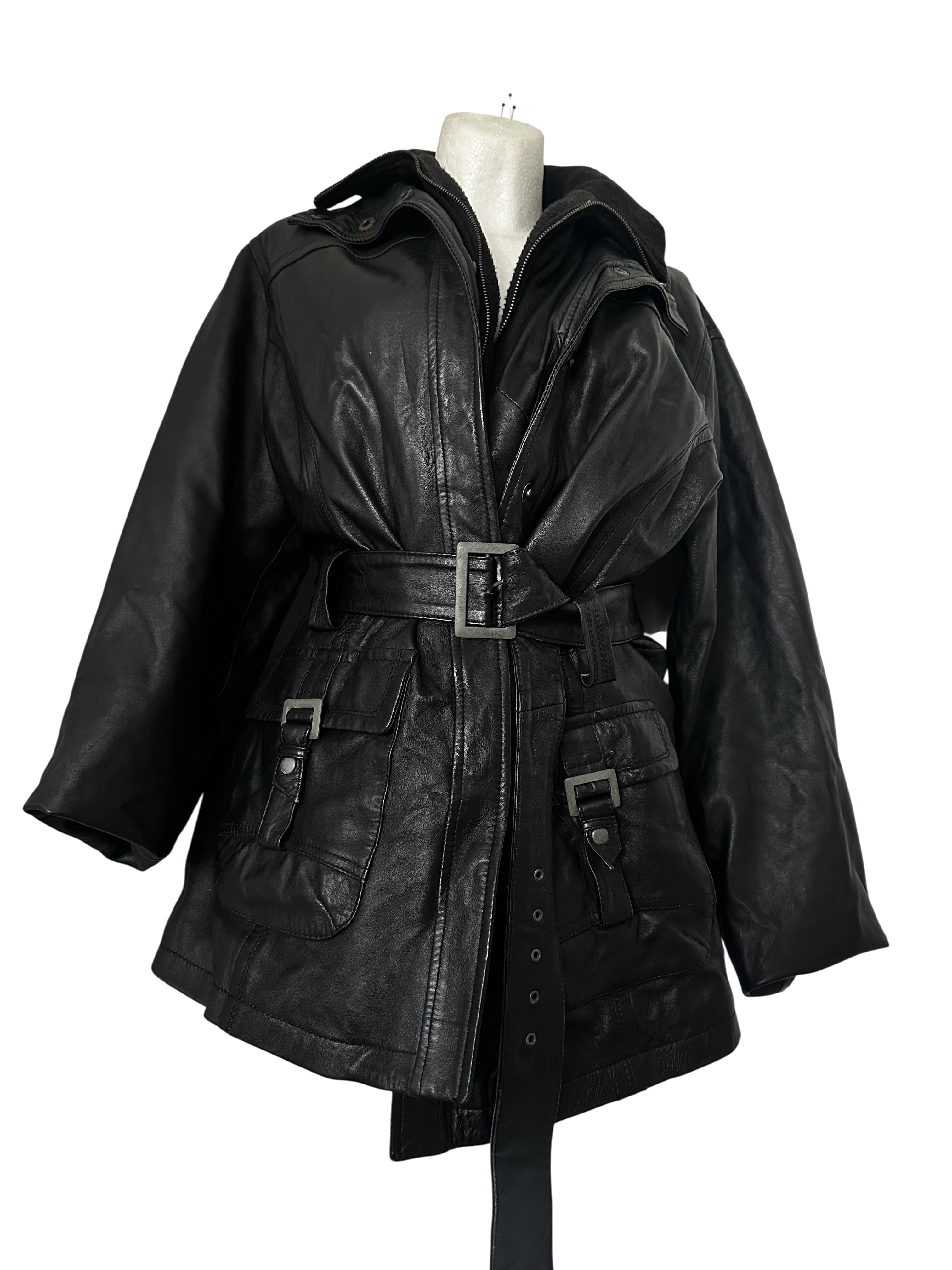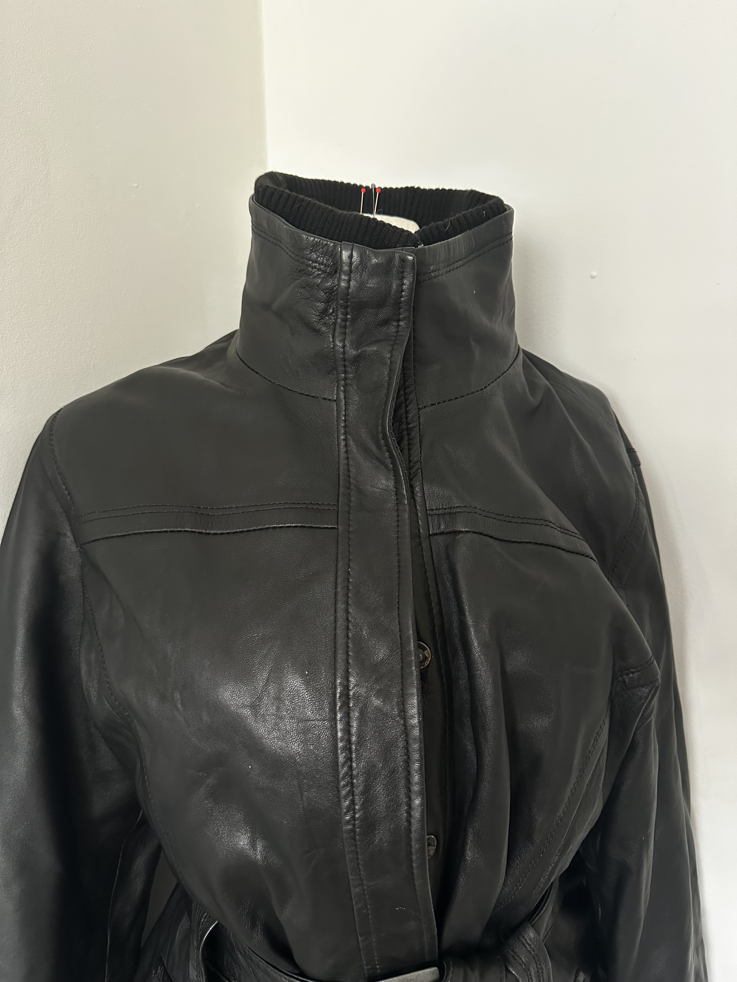 "Piękny skórzany biker jacket z pasem w talii.