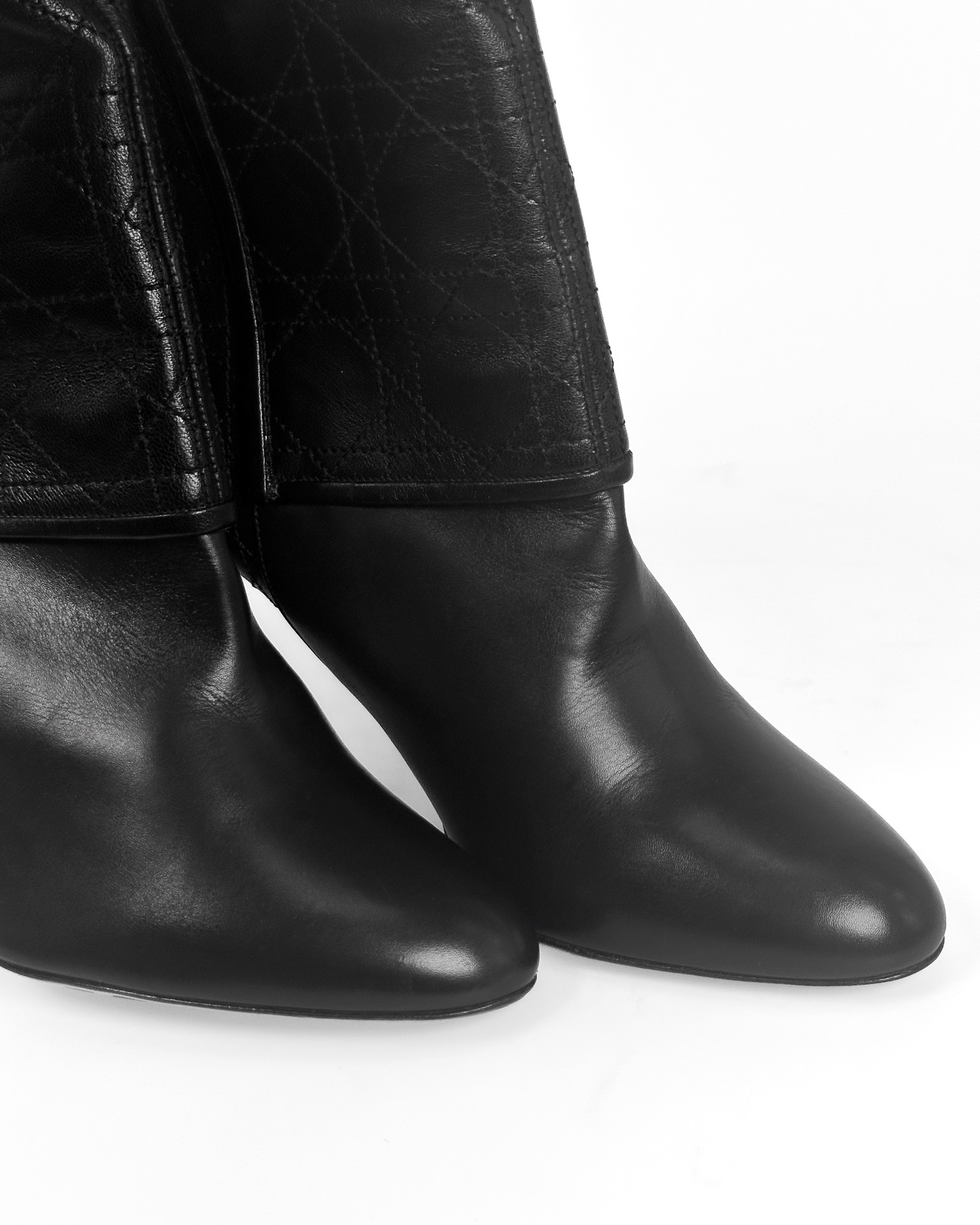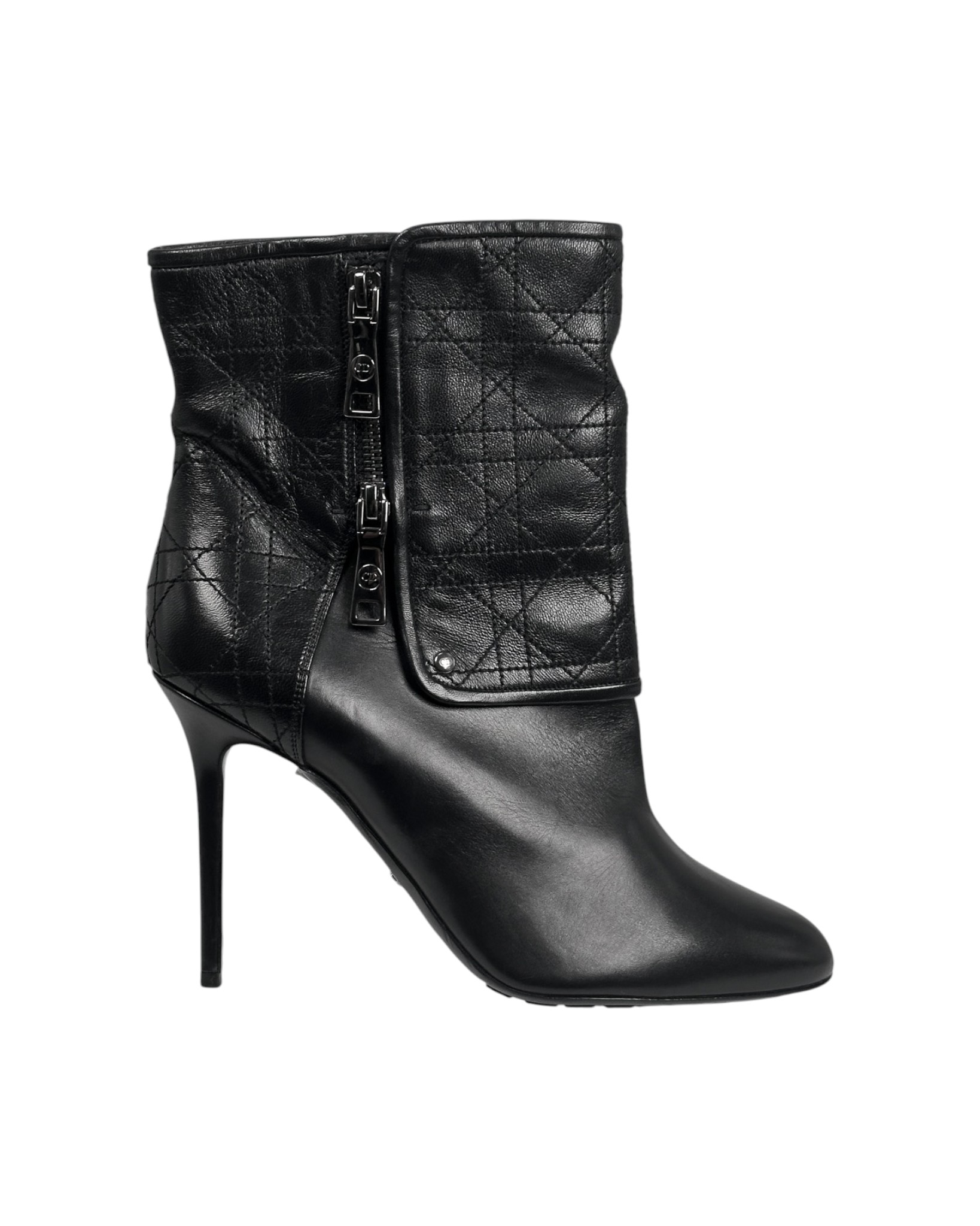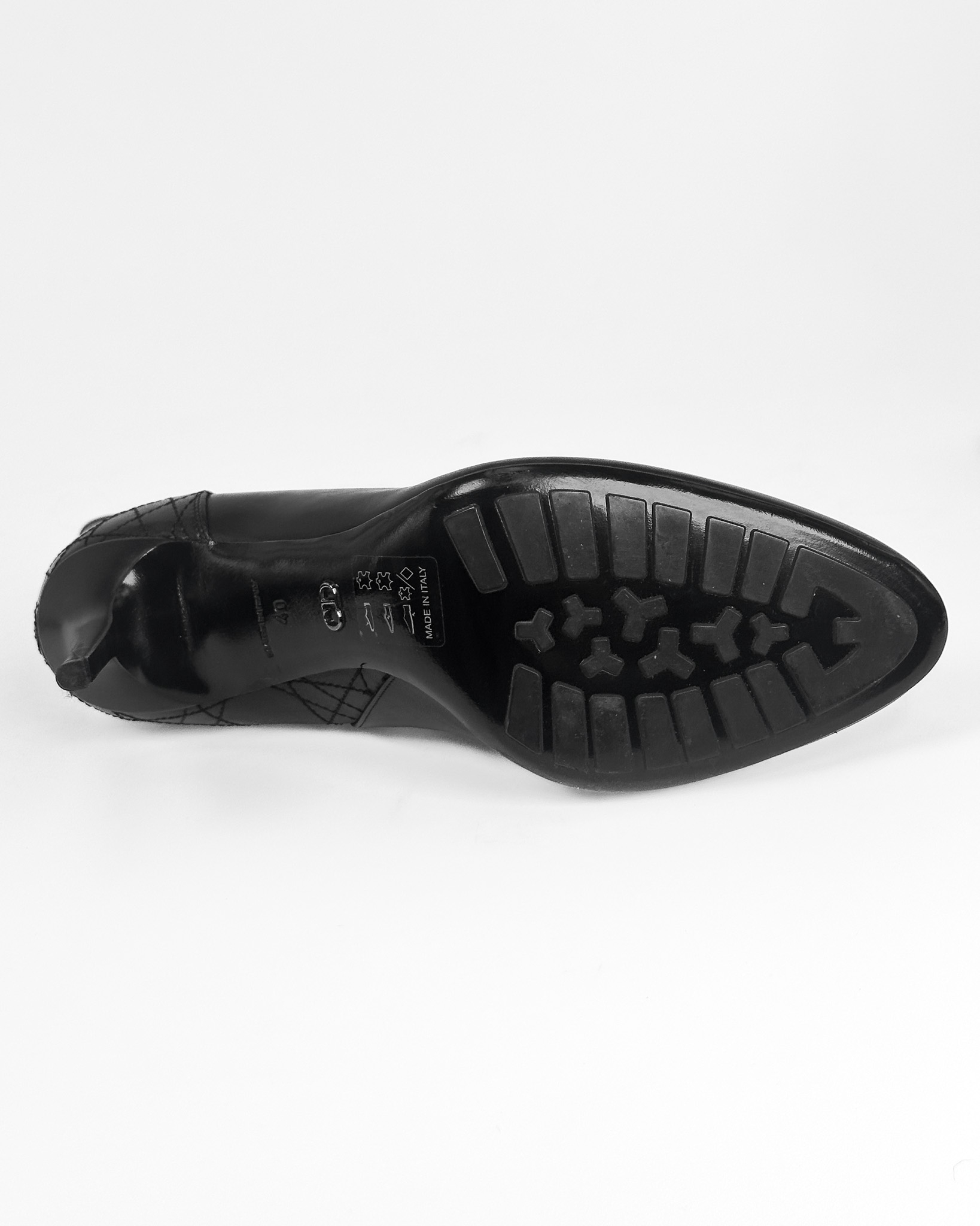 "Czarne botki za kostkę, na wysokiej szpilce, wykonane z gładkiej skóry, ozdobione przeszyciem charakterystycznym dla marki w motyw Cannage, suwaki w bocznej części od zewnętrznej strony, migdałowe noski. Stan jak nowy. Rozmiar 40. Wysokość obcasa 10,5 cm"