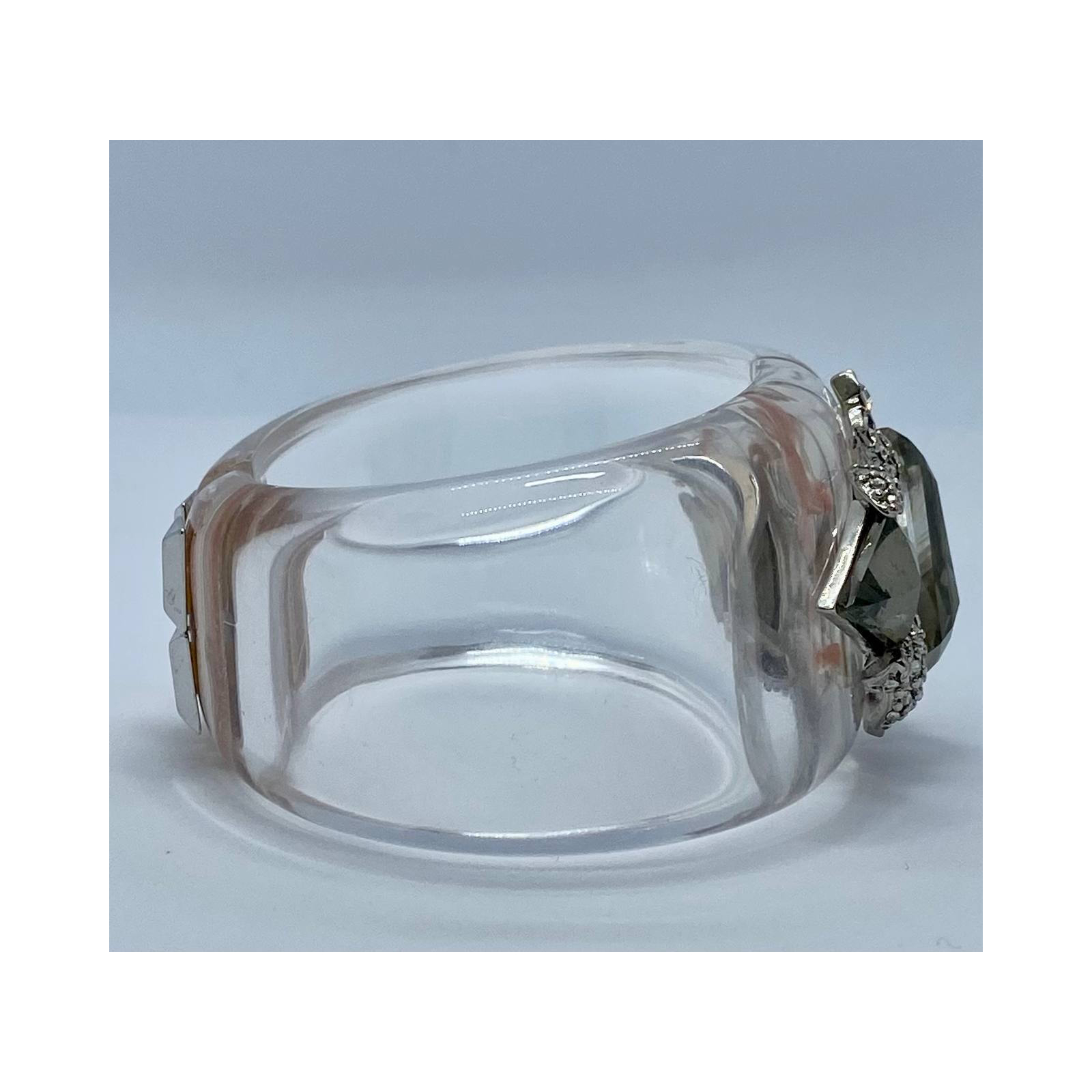 "gruba bransoleta zapinana na magnes, w kolorze stalowym, przezroczysta, matowa, magnez wykonany z oksydowanego srebra z cyrkoniami"