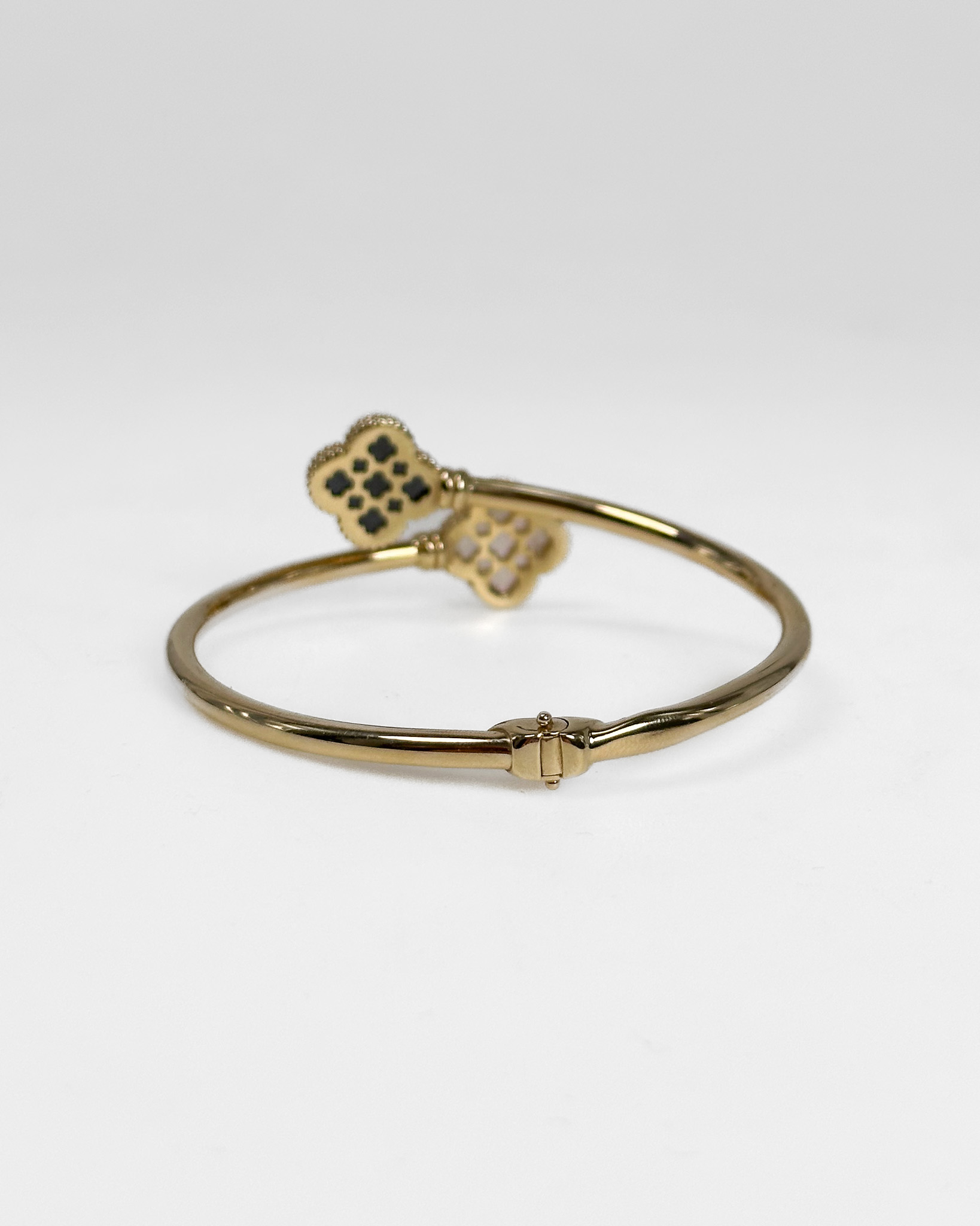 "Bransoletka złota, sztywna, ozdobne koniczyny z kamieniami- agatem"