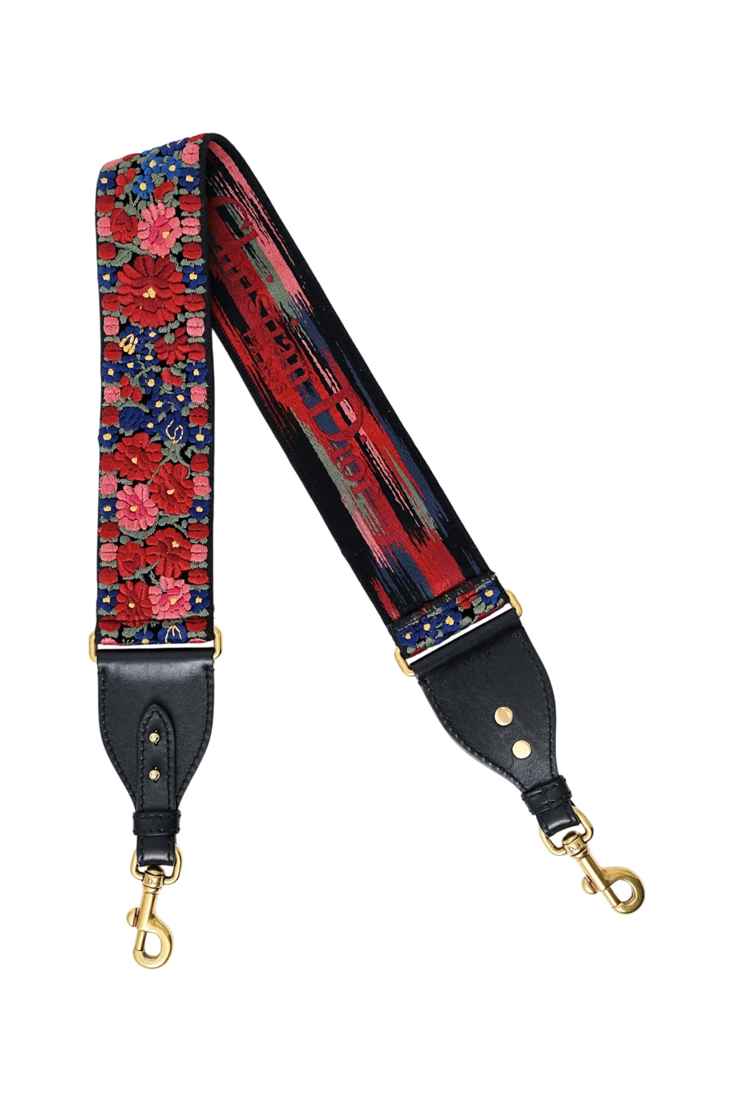 DIOR Canvas & Leather Embroidered Floral Shoulder Strap - pasek do torebki