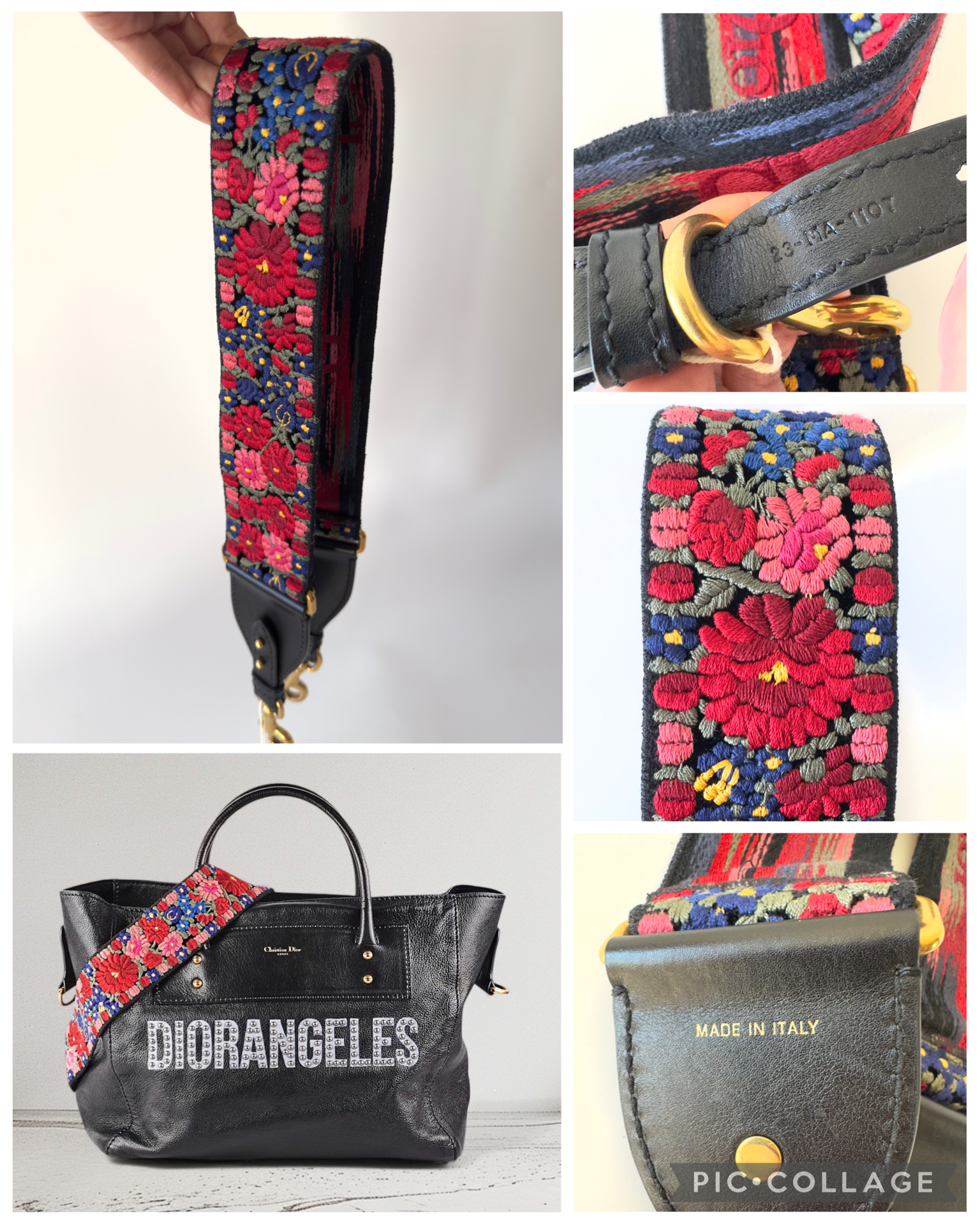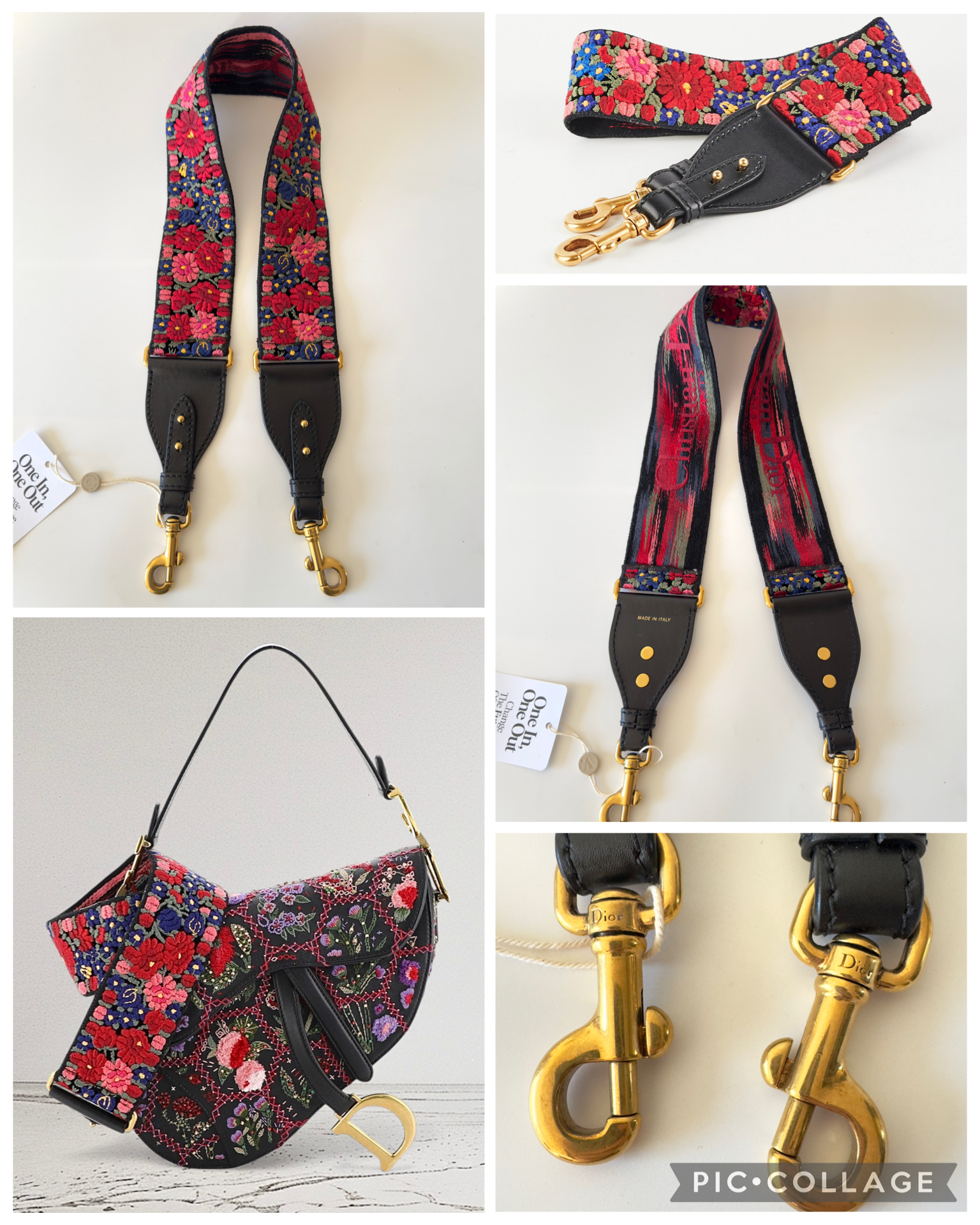 "DIOR Canvas & Leather Embroidered Floral Shoulder Strap - pasek do torebki