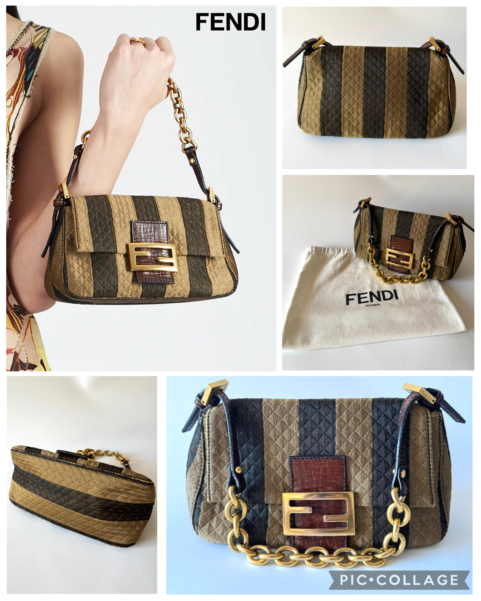 "FENDI Vintage Pequin Quilted Mini Mamma Baguette Bag