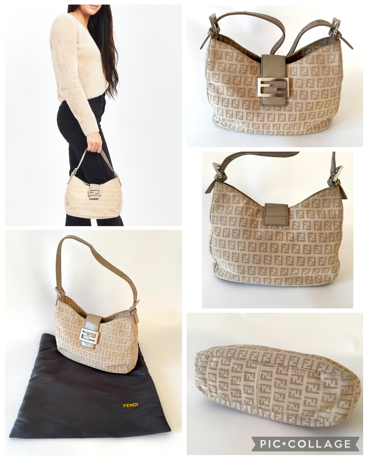 FENDI Vintage Zucca Canvas Zucchino Print Baguette Hobo Shoulder Bag – torebka