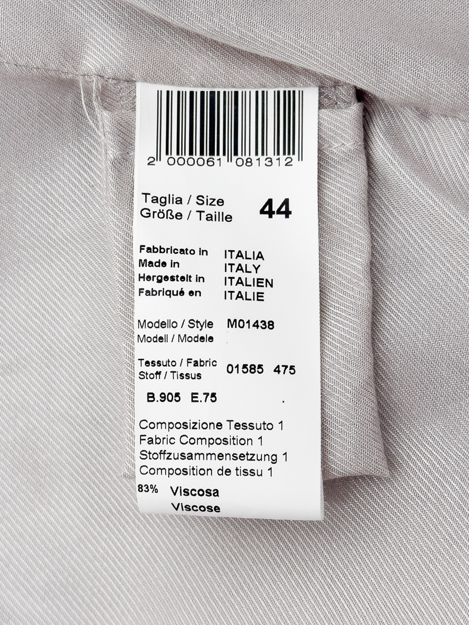"Jasnoszary prążkowany garnitur, komplet: marynarka+ spodnie, marynarka zapinana na dwa brązowe guziki na przodzie, dwurzędowa, prosty, dłuższy krój, głęboki dekolt, dwie zaszyte kieszenie z klapami, małe poduszki na ramionach, rozporek, spodnie zapinane na kryty suwak, dwie haftki oraz guzik, regulowany pasek ze srebrną klamrą w pasie, wysoki stan, proste nogawki podwinięte na końcach, dwie kryte kieszenie po bokach oraz dwie zaszyte z tyłu. Nowy z metkami. Rozmiar z metki IT 44. Skład marynarki: materiał 1: 83% wiskoza, 17% poliamid; podszewka: 58% bawełna, 42% wiskoza. Skład spodni: materiał 1: 83% wiskoza, 17% poliamid;; materiał 2: 61% acetat, 39% kupro."