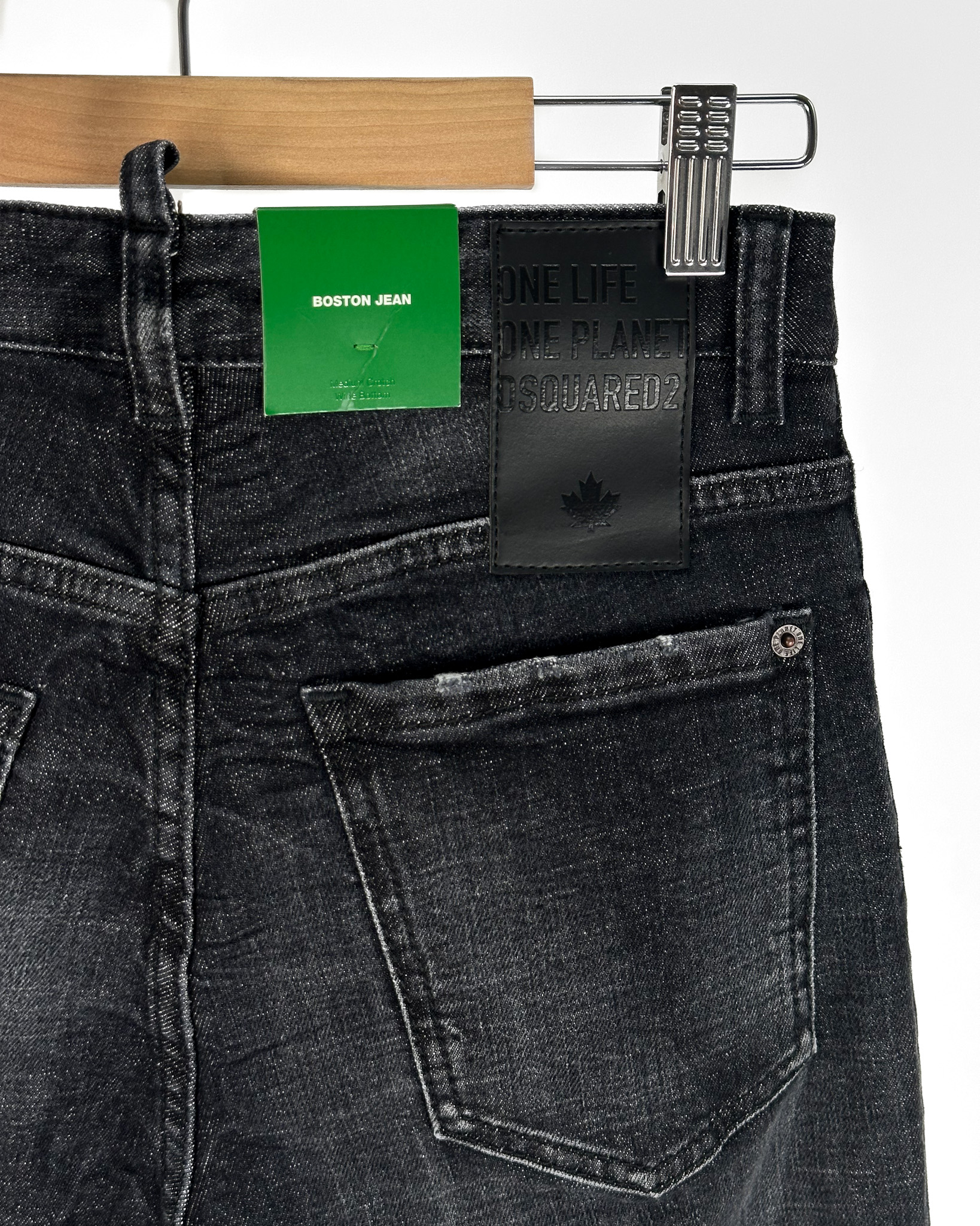 "Model: Boston Jean, spodnie jeansowe z wysokim stanem o prostym kroju, kolor ciemno-grafitowy, lekko przecierane, rozmiar S. Nowe z metkami."