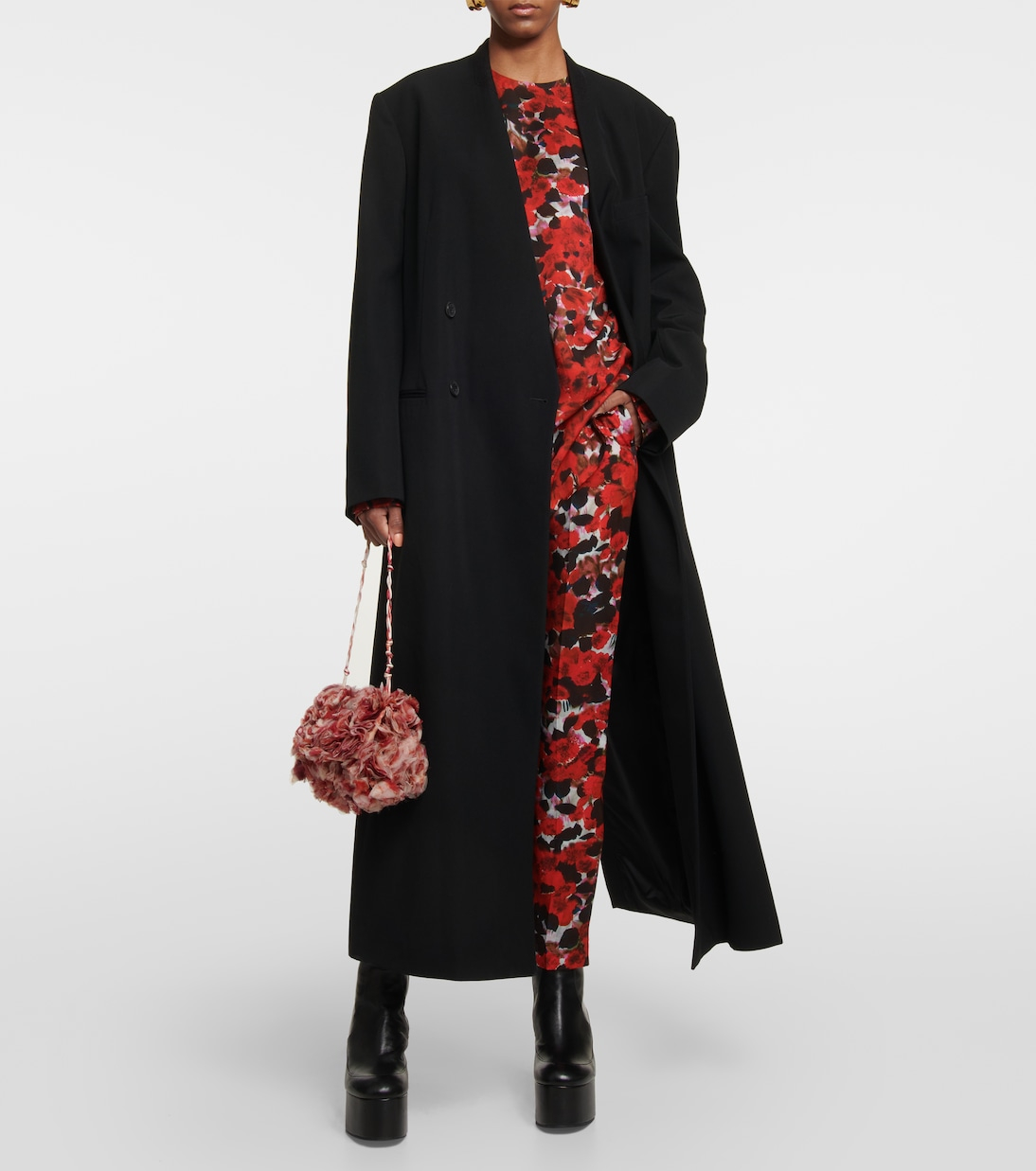 "Komplet z wiskozy w czerwono-różowo-granatowy motyw kwiatowy: bluzka + spodnie Bluzka/koszula o dłuższym, prostym kroju, zapinana na guziki w tylnej części, długi rękaw, rozpinane mankiety. Spodnie z prostą nogawką, wysoki stan, guma w pasie, dwie kryte kieszenie po bokach. Stan bardzo dobry. Rozmiar z metki koszuli- L, spodni- EU 42. Skład: 100% wiskoza. Wymiary: szerokość mierzona od pachy do pachy 56cm, długość całkowita koszuli 84cm, szerokość w pasie spodni 39cm, długość całkowita mierzona od zewnętrznej strony nogawki 100cm.Kolekcja spring summer 2023"