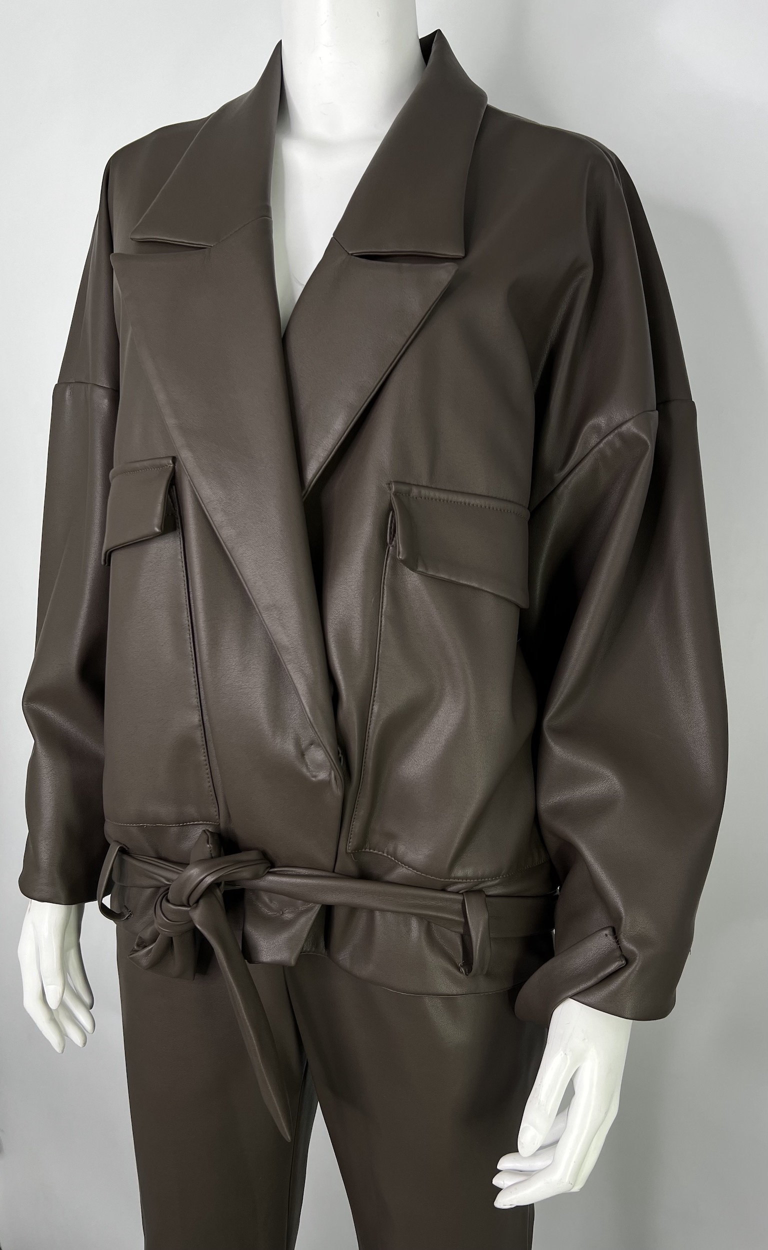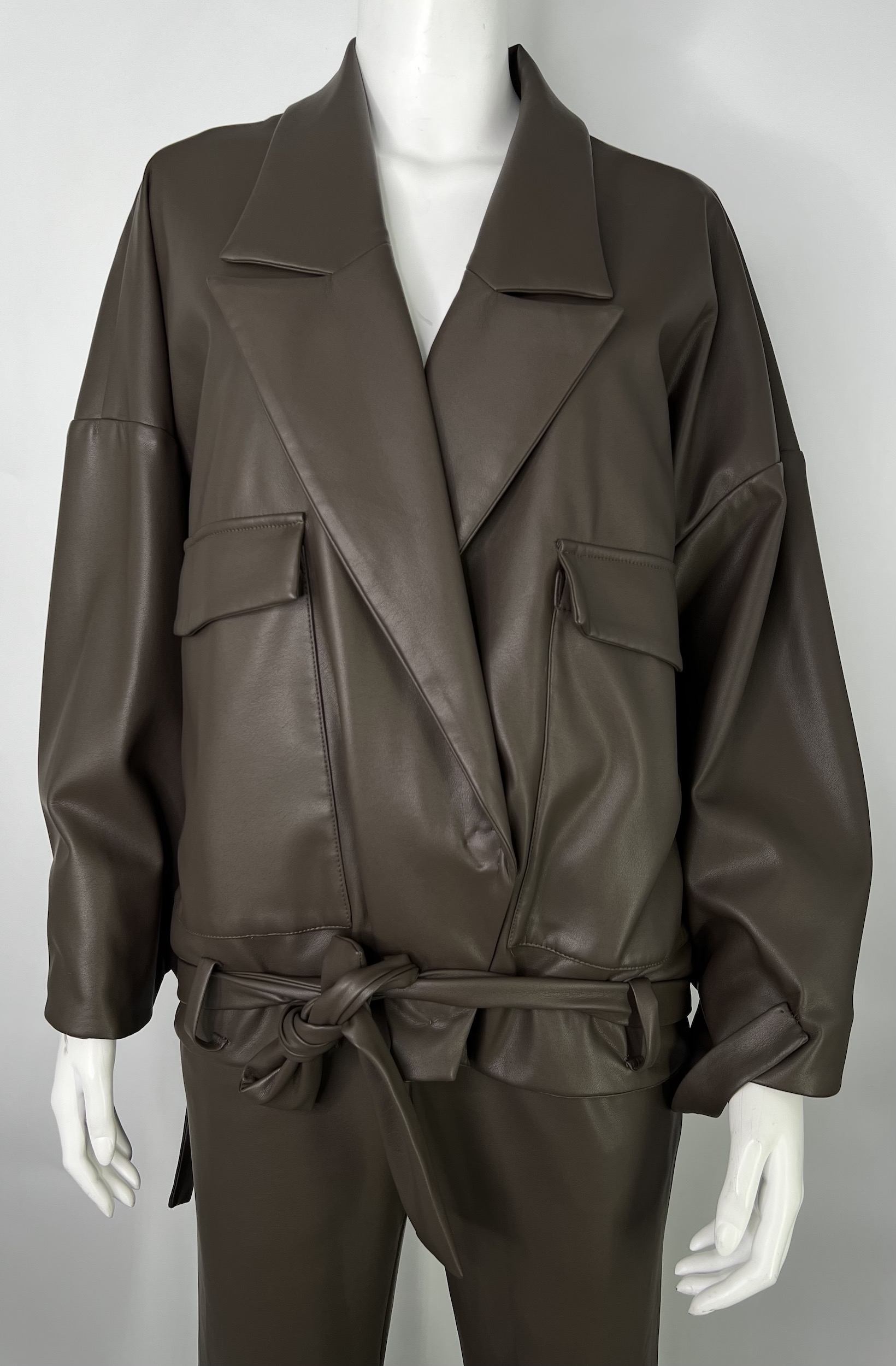 "beżowy komplet, spodnie gładkie, długie, marynarka rękaw 3/4, boczne kieszenie z klapami, wiązanie w talii, zapinana na dwa guziki z przodu, szara podszewka. Skład: 68% poliester, 32% poliuretan, podszewka: 100% wiskoza. Rozmiar S/XS. Wymiary:spodnie: szer. talii 35cm, szer. bioder 41 cm, dł. całkowita 106 cm, marynarka: szer. ramion 69 cm, szer. biustu 60 cm, szer. talii 56 cm. dł. całkowita 61 cm, dł. rękawa 40 cm."