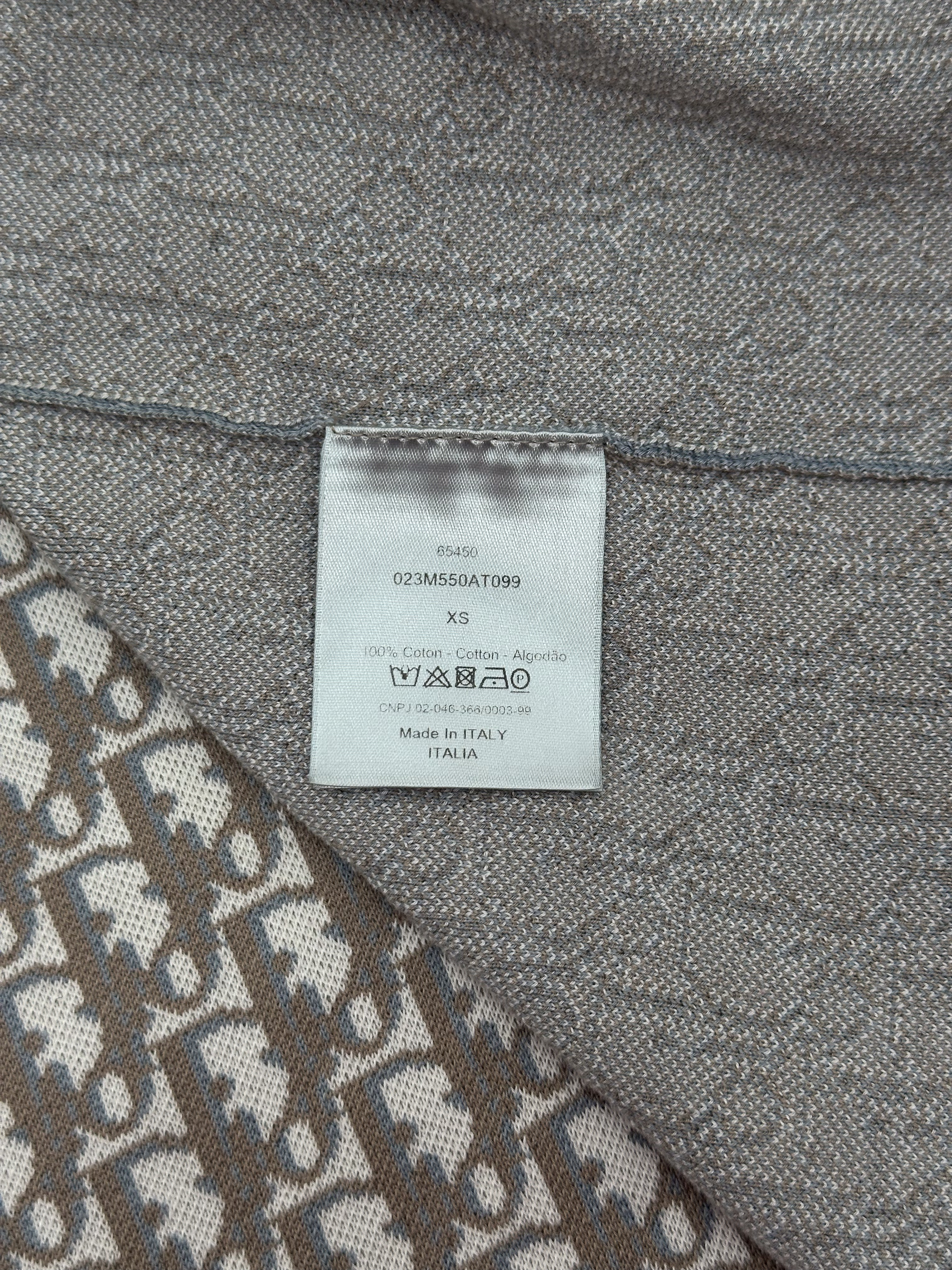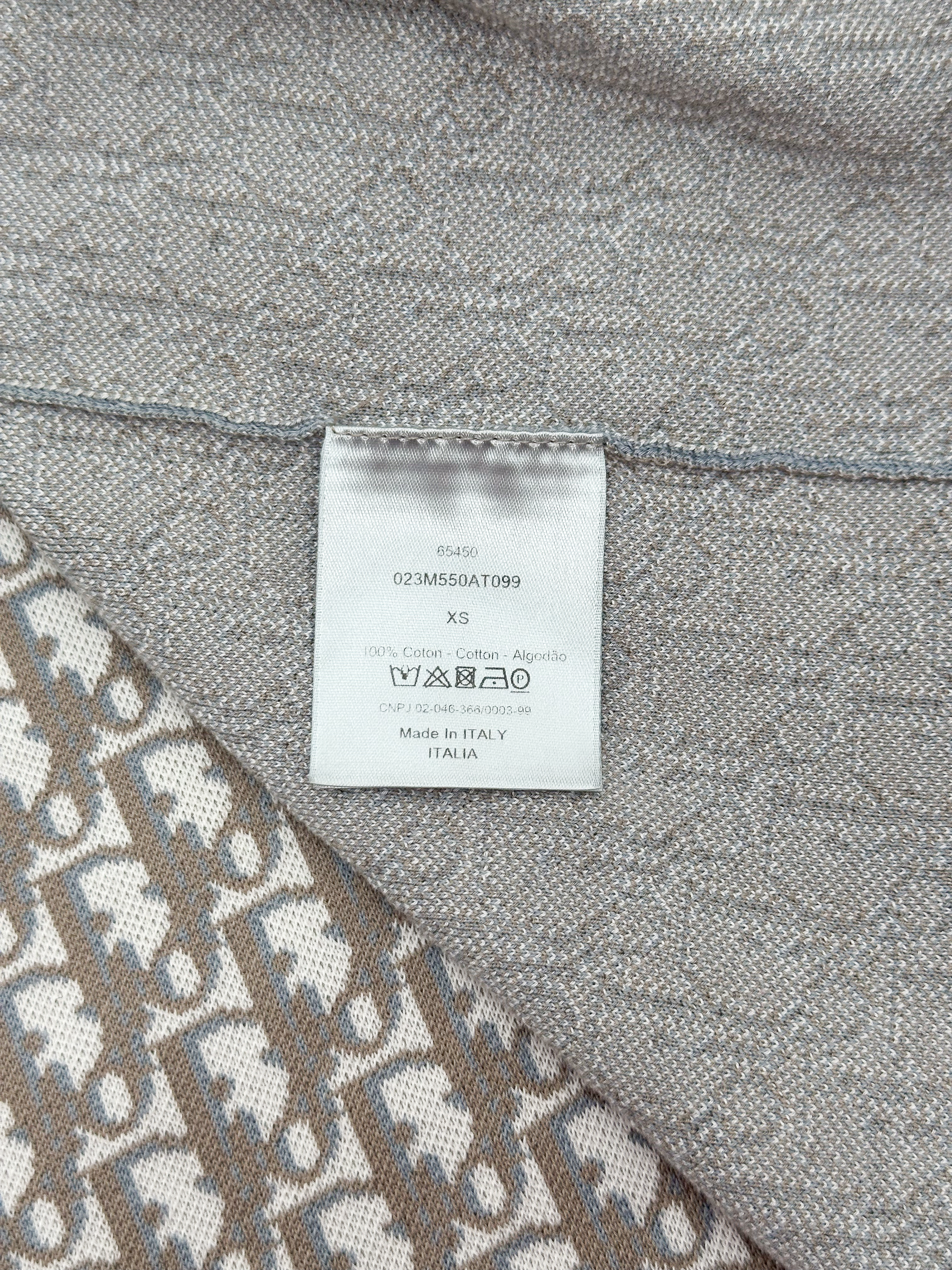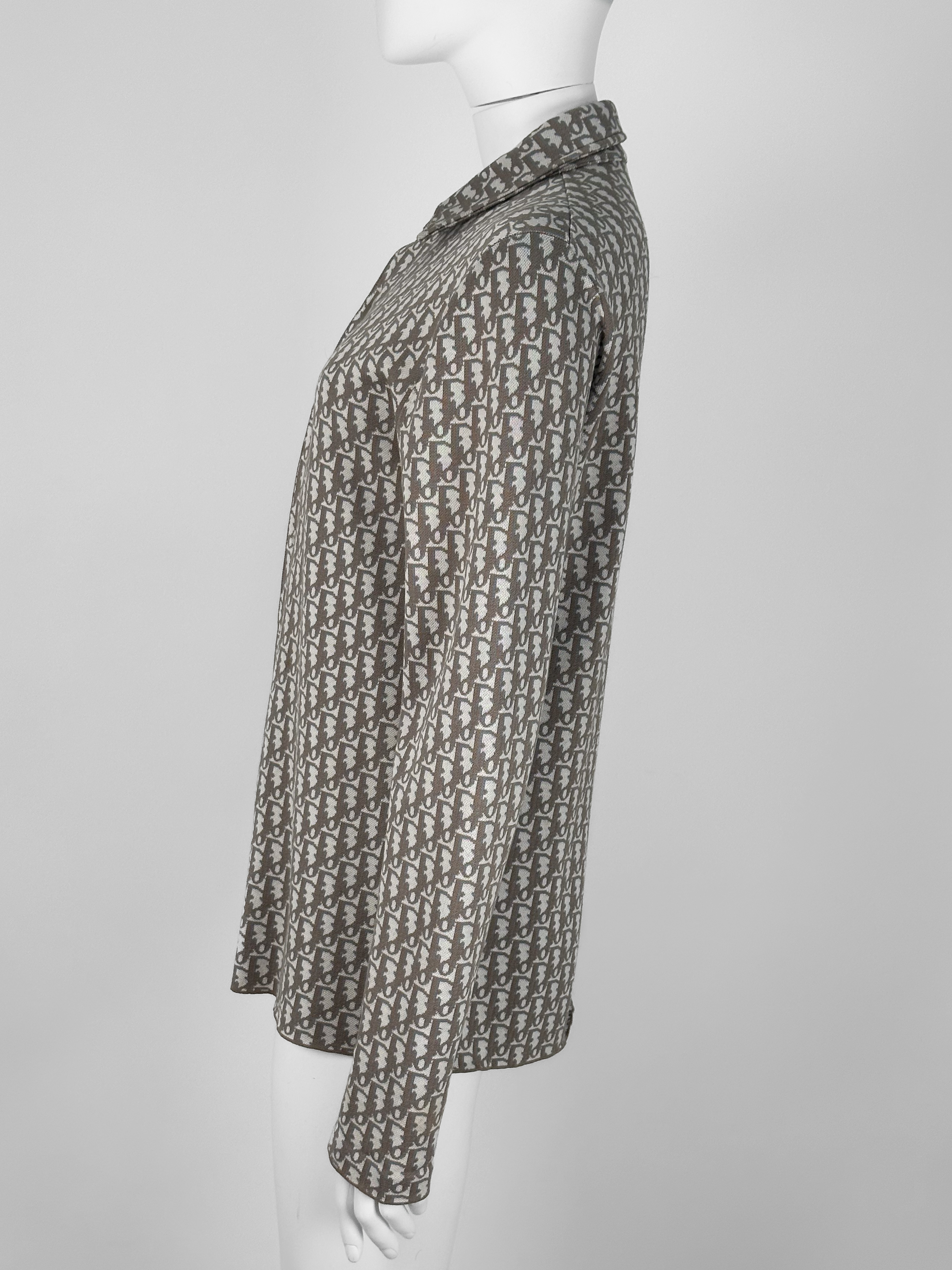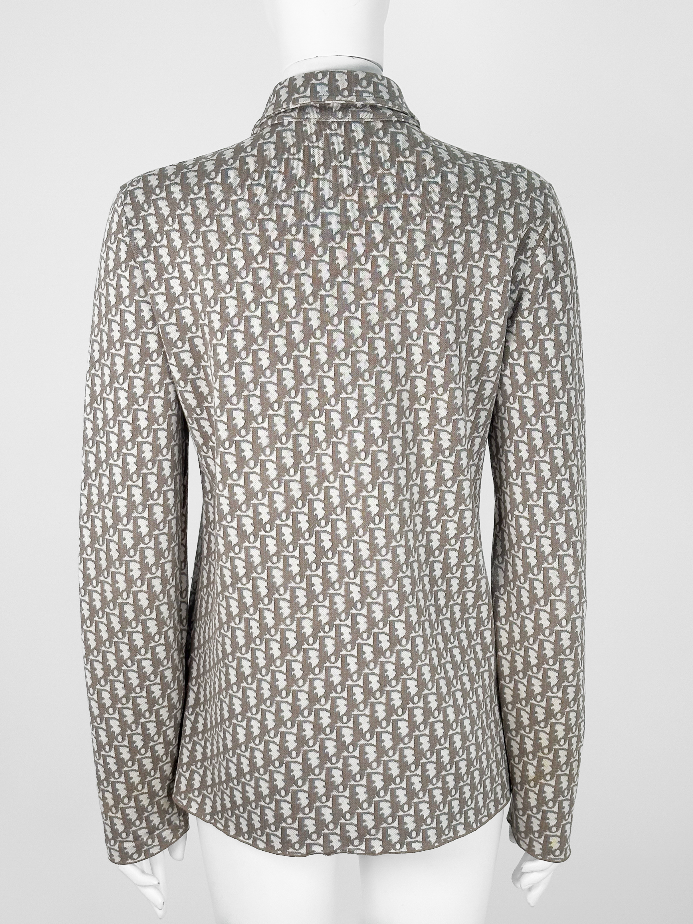 "Beżowa koszula w monogram marki, klasyczny krój, zapinana na guziki, rozmiar z metki XS. Skład: 100 % bawełna. Wymiary: szerokość 48 cm, długość 72 cm."