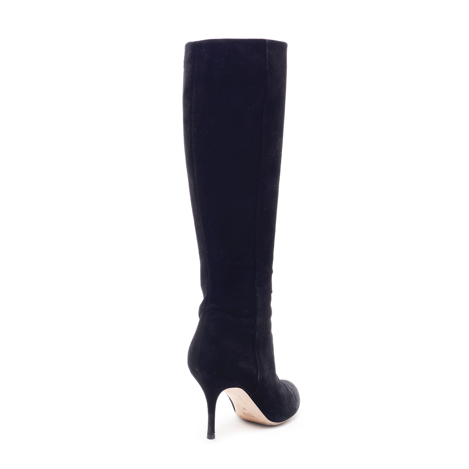 "Czarne kozaki na obcasie , w szpic , zapinane na suwak. Wykonane z zamszu , rozmiar 37"