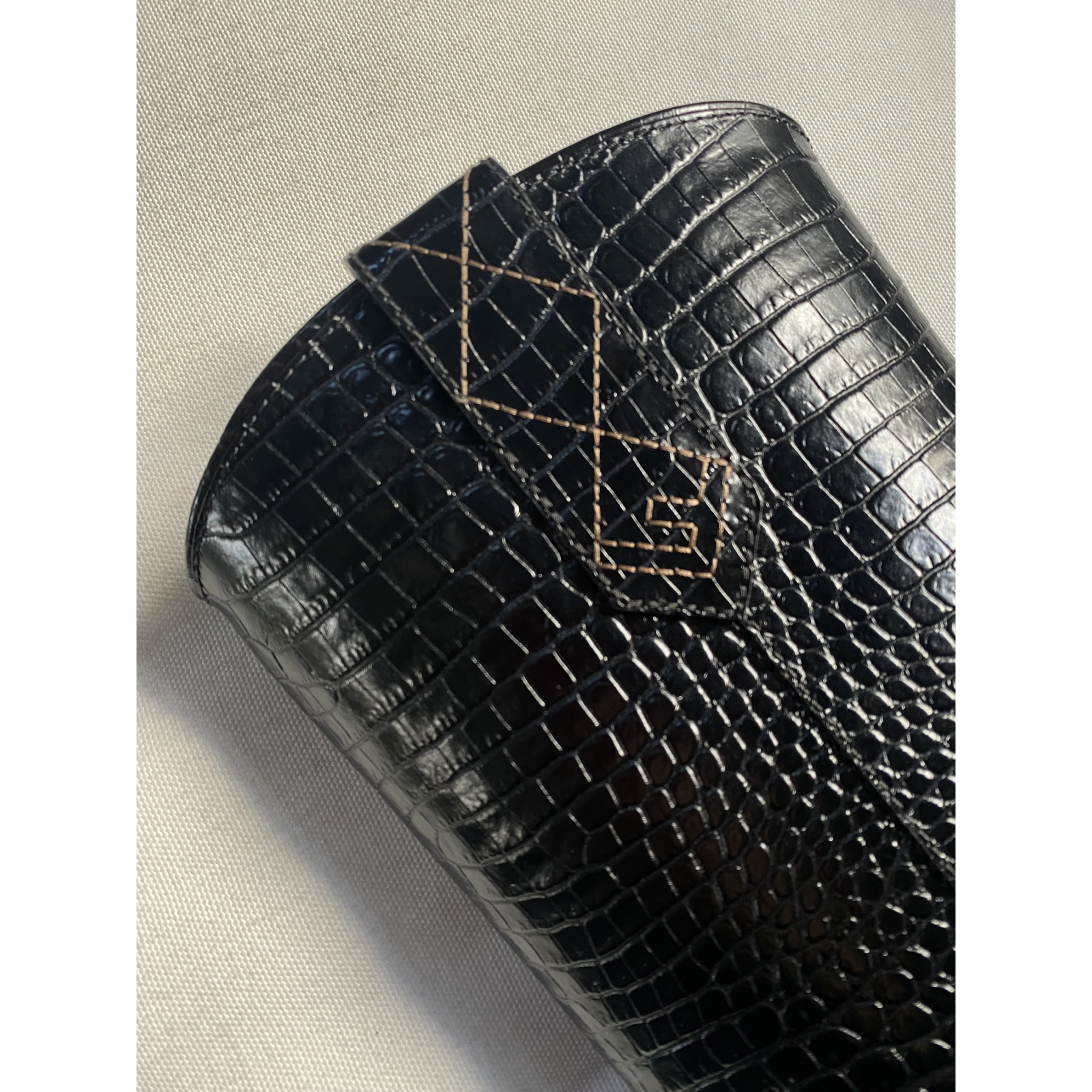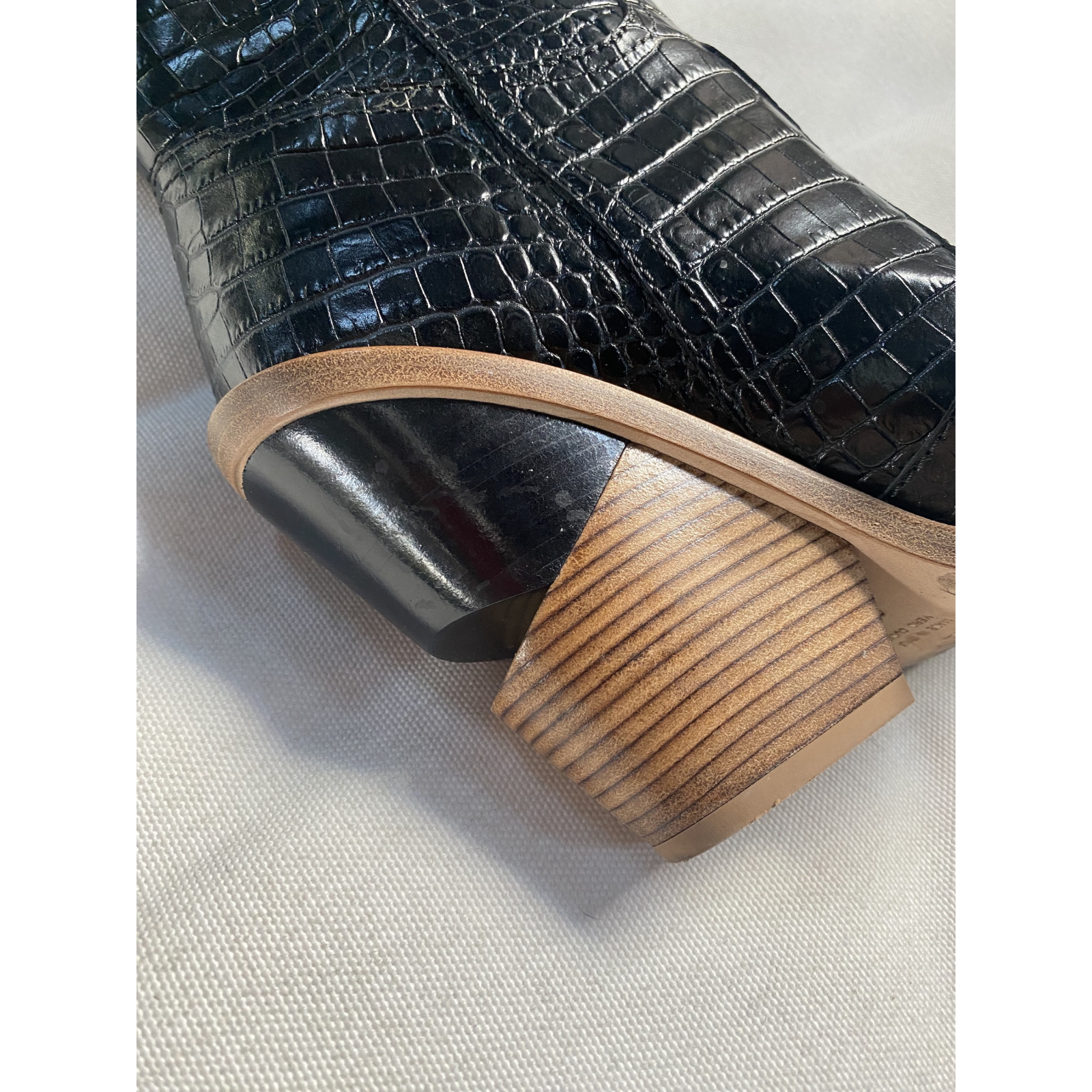 "kozaki czarne, faktura skóry krokodyla, rozszerzana cholewka, noski w szpic, beżowa podeszwa, ścięty obcas, roz. 37, założone dwa razy, pudełko, paragon zakupu 1190 euro"