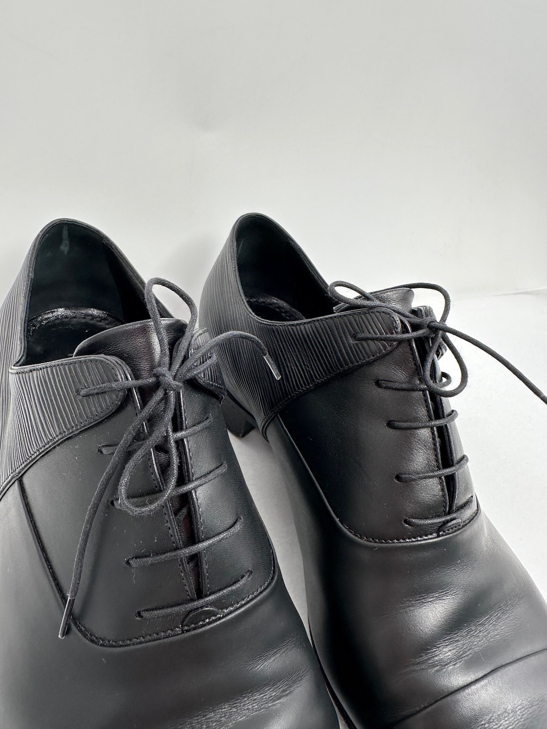 "klasyczne pantofle męskie, skórzane, na pięcie skóra epi, wiązane, stan bardzo dobry, zelówka, pudełko i worki w zestawie. Rozmiar 9."