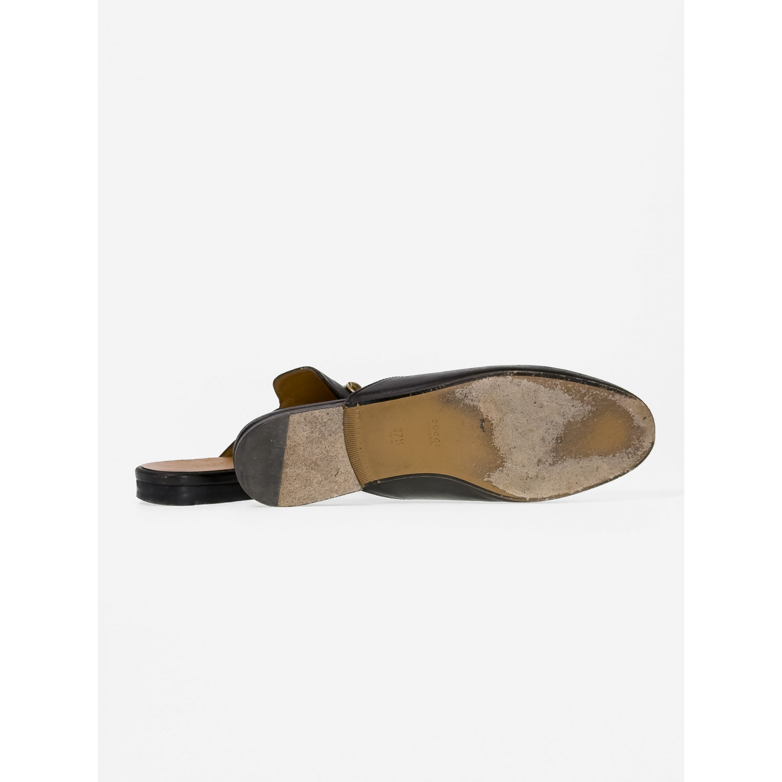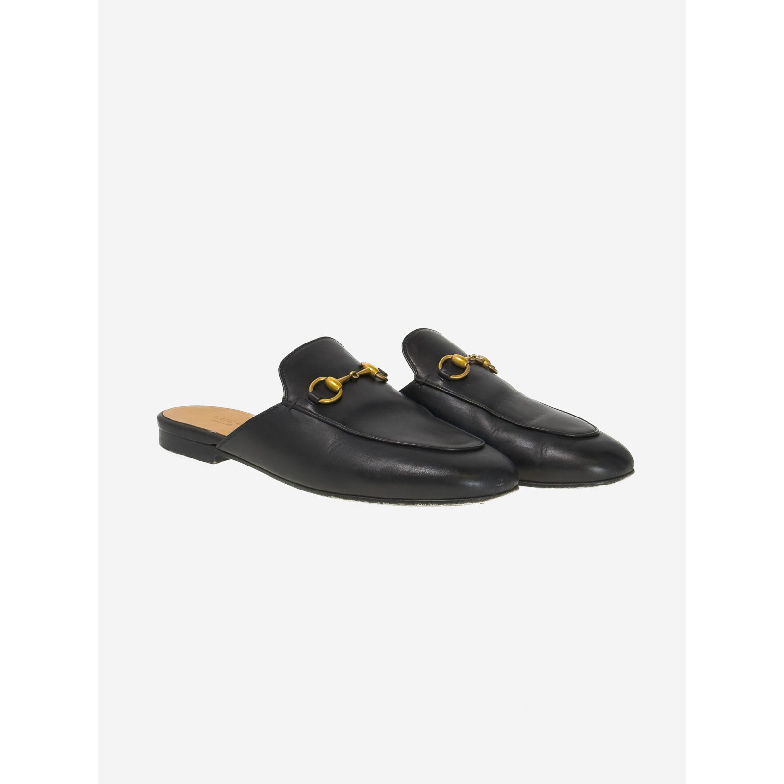 "Czarne skórzane mule ozdobione złotym wędzidłem na przodzie w charakterystycznym dla marki kształcie, wsuwane, migdałowe noski, niski obcas, cieliste skórzane wnętrze, w zestawie z dowodem zakupu oraz pudełkiem, używane. Stan dobry, przetarcia na podeszwie, marszczenia na skórze, zadrapanie na prawym nosku, Rozmiar 37,5."