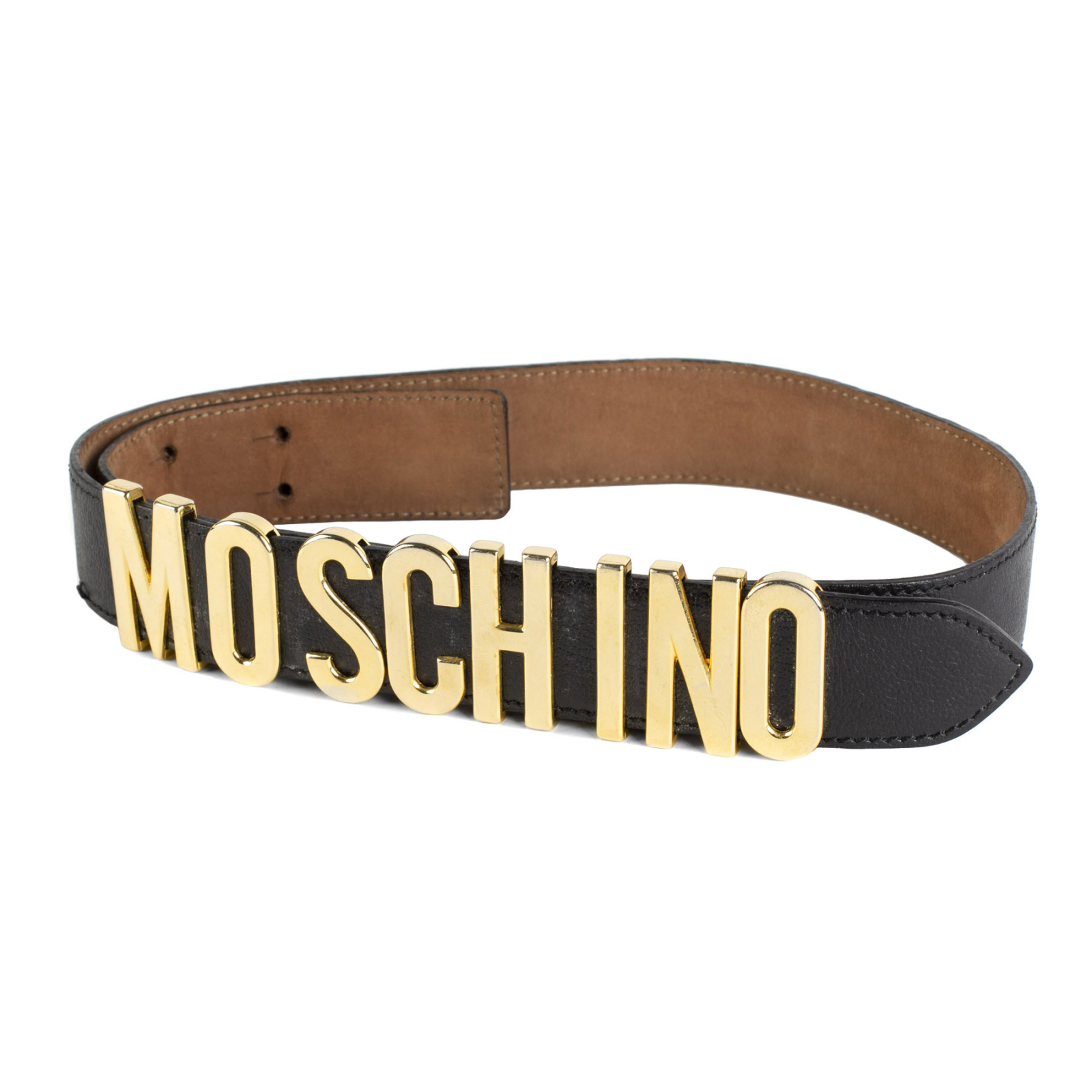 "czarny skórzany pasek ze złotymi literkami tworzącymi nazwę