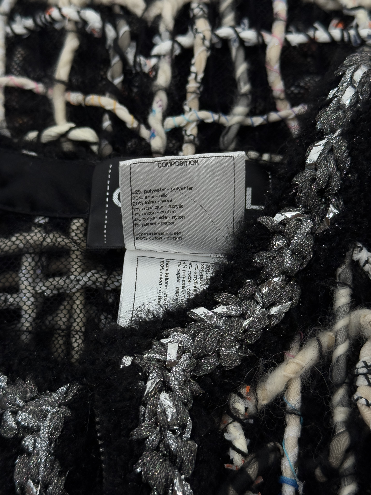 "Czarny płaszcz z długim rękawem, połączenie różnych tkanin, jasnego splotu, metalicznego wzdłuż zamka. Zapinany na kryty suwak oraz delikatnie rozpinane rękawy. Rozmiar z metki 36. Skład: 42% poliester, 20% jedwab, 20% wełna, 7% akryl, 6% bawełna, 4% poliamid, 1% papier. Stan bardzo dobry. Wymiary: szerokość mierzona od pachy do pachy 42cm, długość całkowita 87cm."