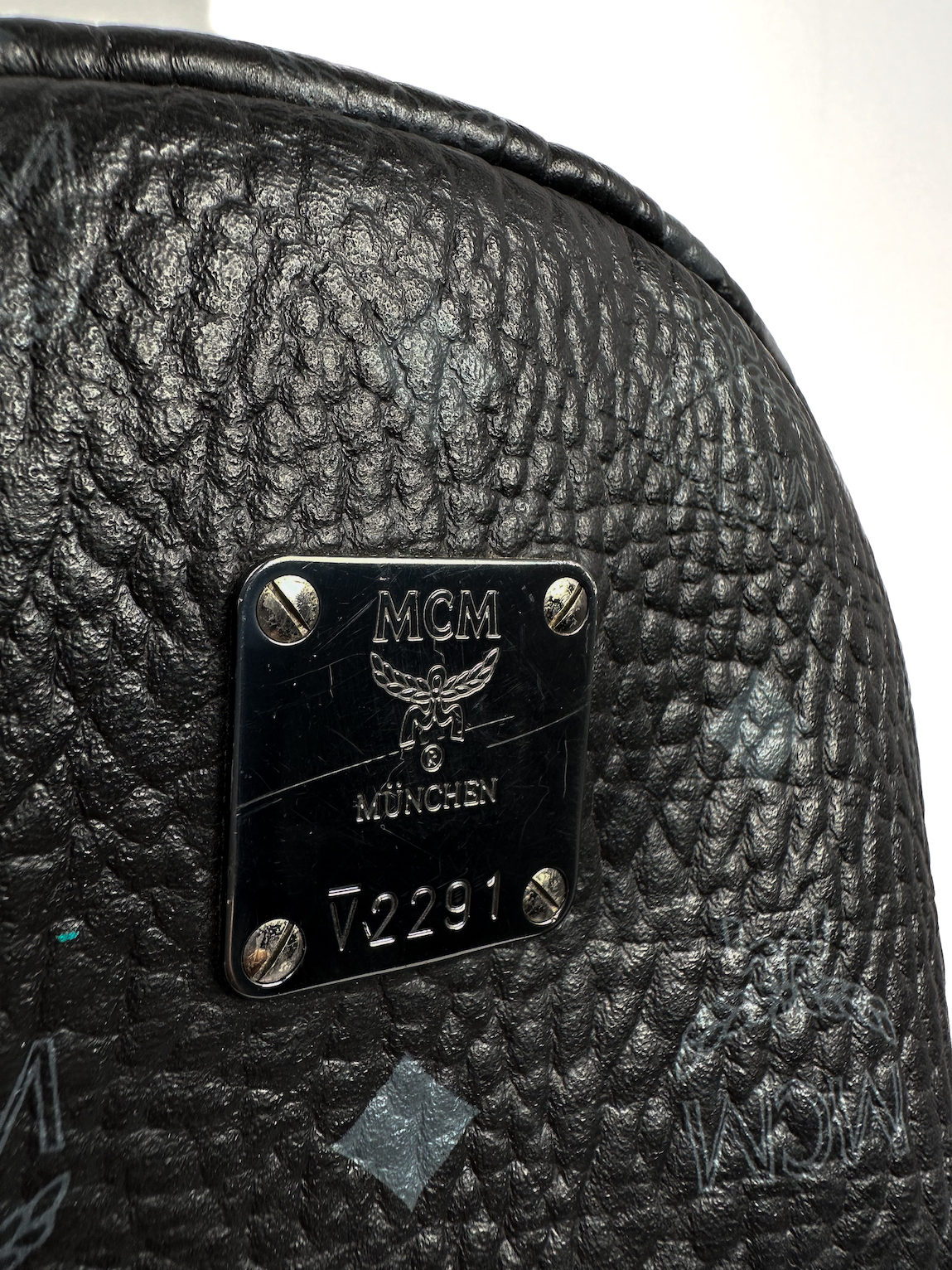 "Czarny skórzany logowany plecak, ozdobiony srebrnymi ćwiekami po bokach, jedna duża kieszeń na przodzie, srebrne metalowe logo w górnej części, regulowane paski, zaokrąglona góra, dwie mniejsze kieszenie po bokach, usztywniony dół, uchwyt na górze, szare wnętrze z dwoma komorami i trzy kieszenie, używany. Stan bardzo dobry, lekko zabrudzone wnętrze. Wymiary: głębokość 16cm, wysokość 37cm, szerokość 29cm."