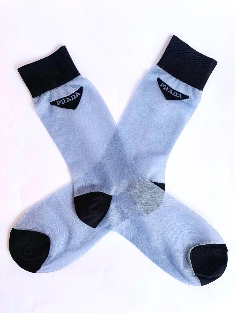 "PRADA – krótkie skarpetki, nowe, z metką, materiał nylon, rozmiar 3, skład: 70% poliammid i 30% poliamid; kolory: wrzosowy i czarny."