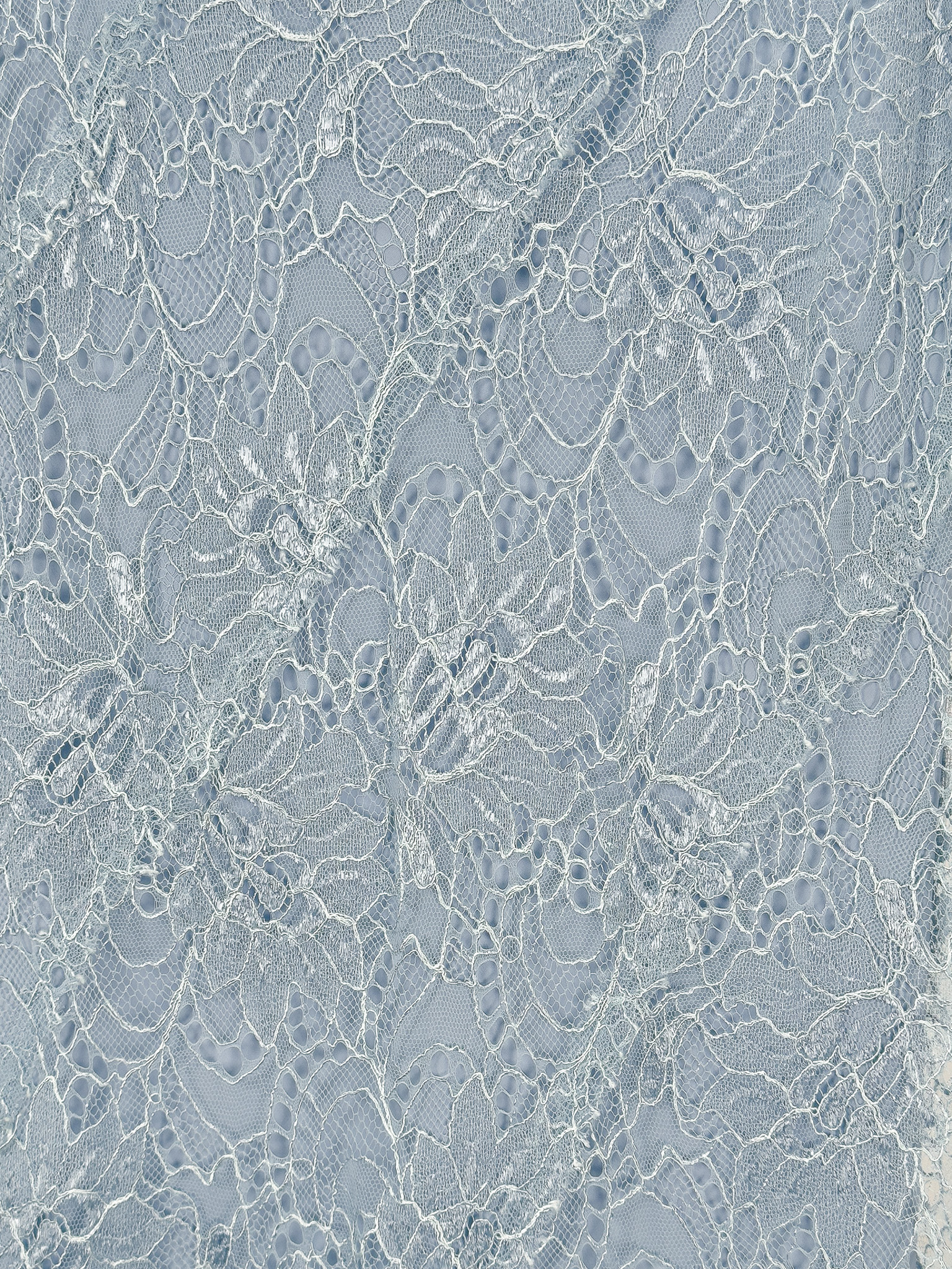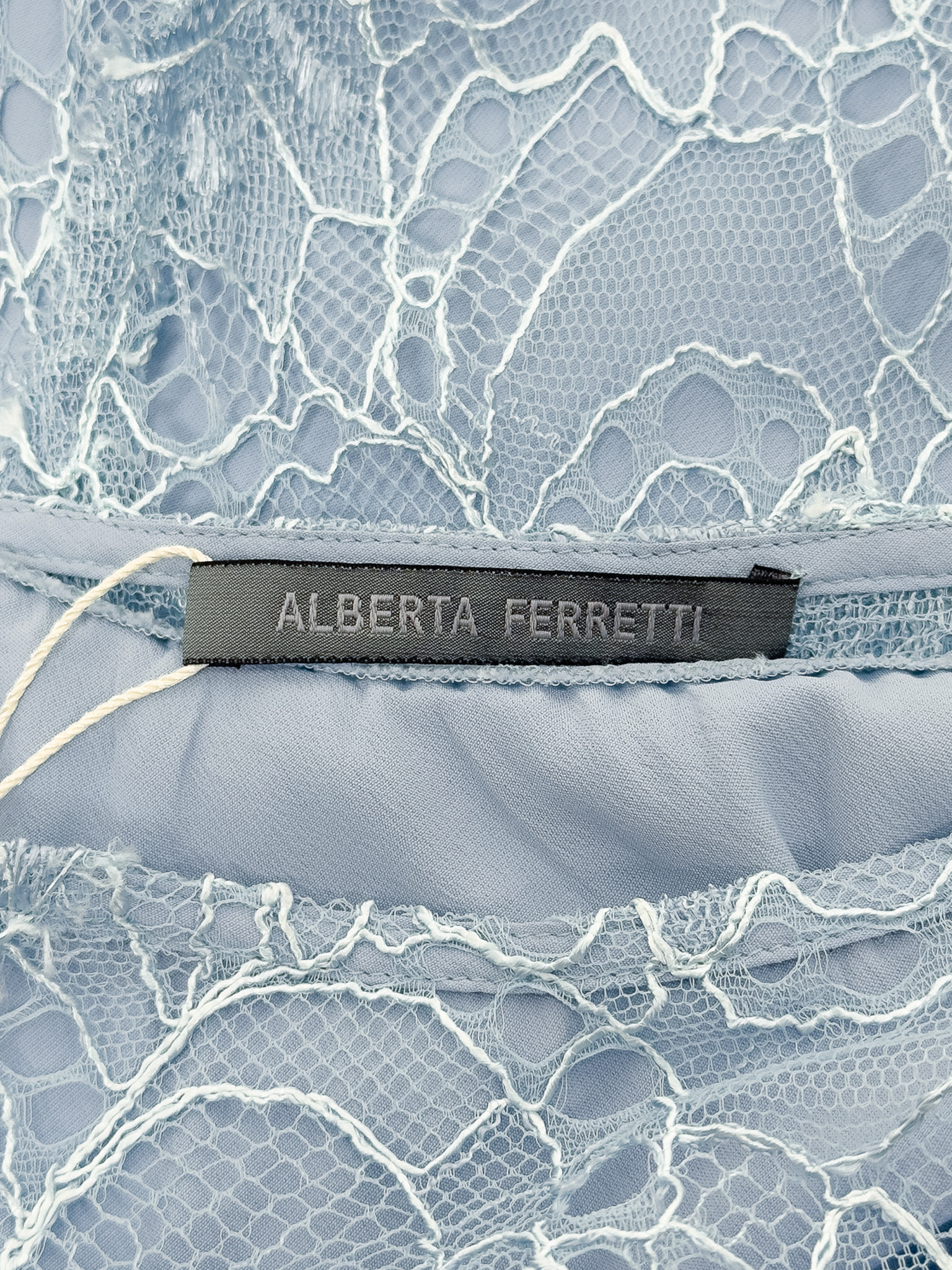 "Błękitna, koronkowa, maxi spódnica w motyw kwiatowy. Wysoki stan. Halka wykończona gumą w pasie. Stan bardzo dobry. Rozmiar z metki IT 42. Skład: 86% acetat, 9% jedwab, 5% inne tkaniny. Wymiary: szerokość w pasie 39cm, długość całkowita 110cm."