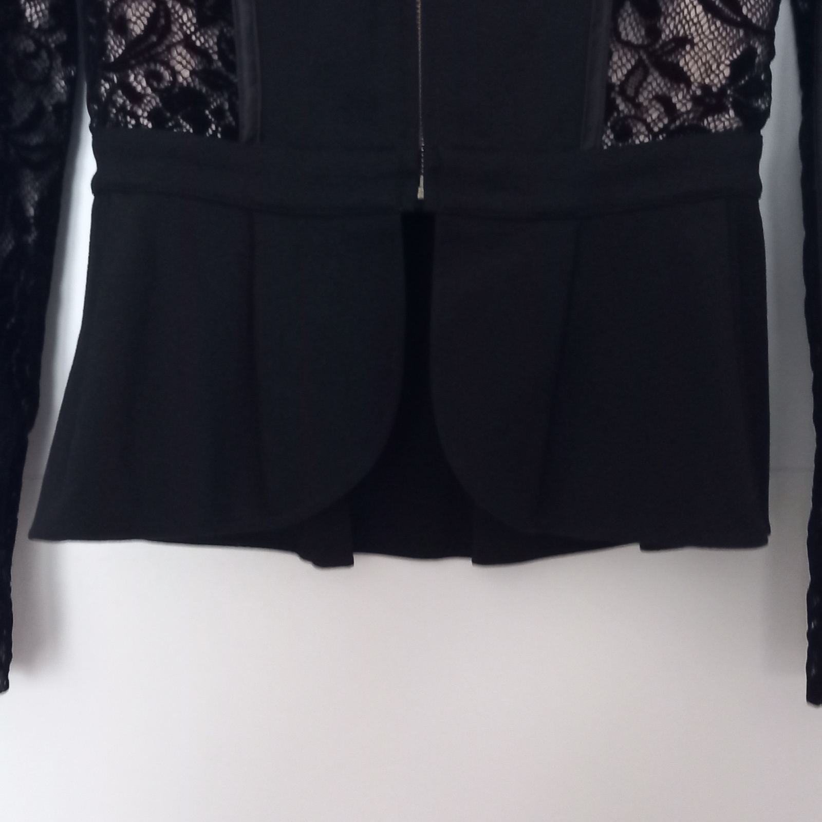 "Sukienka z żakietem do kompletu. Z boku koronkowe wstawki zarówno w sukience, jak i w żakiecie. Satynowa podszewka. Stan bdb."