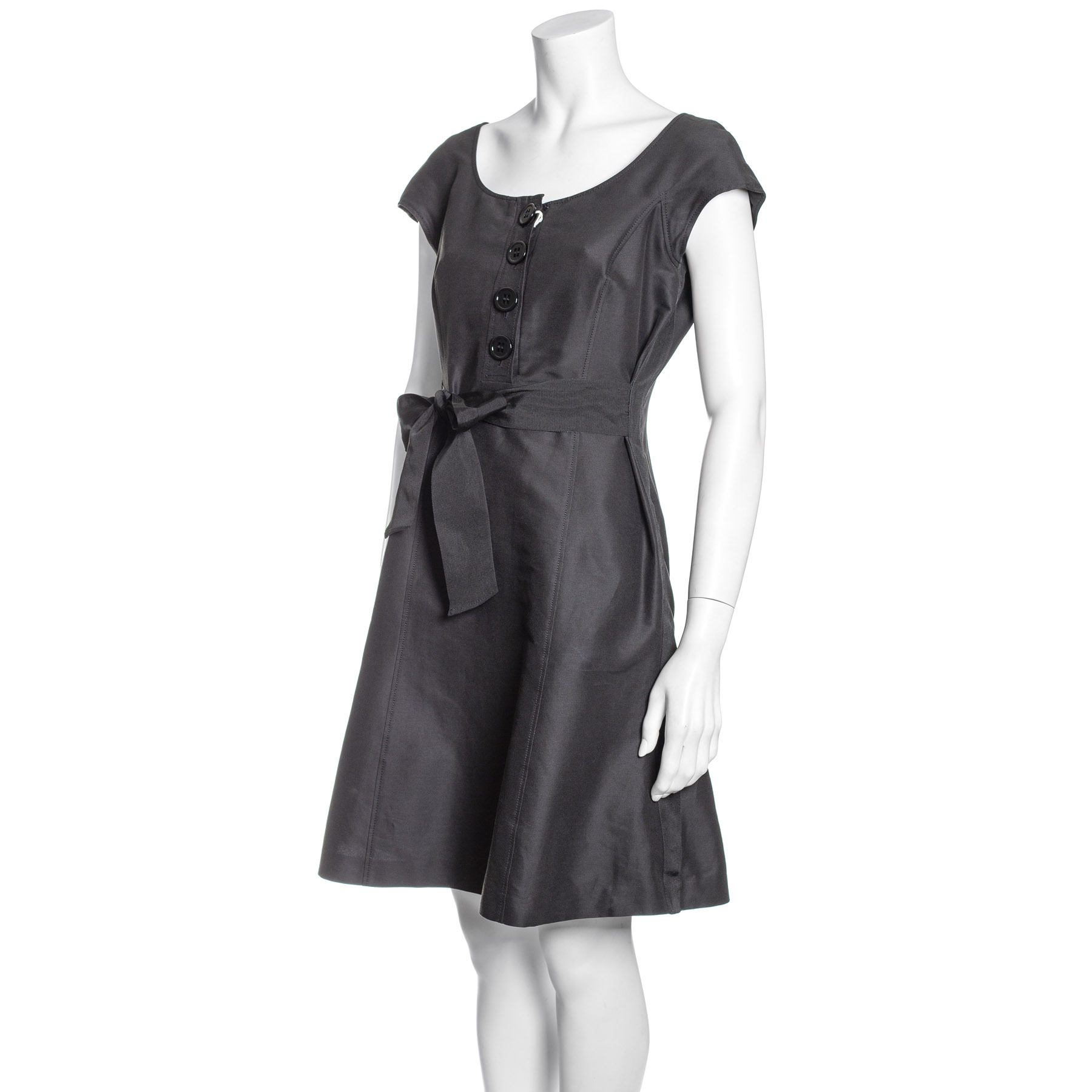 "Czarna sukienka z krótkim rękawem, przy dekolcie guziczki, z wiązaniem w pasie. Rozmiar M"