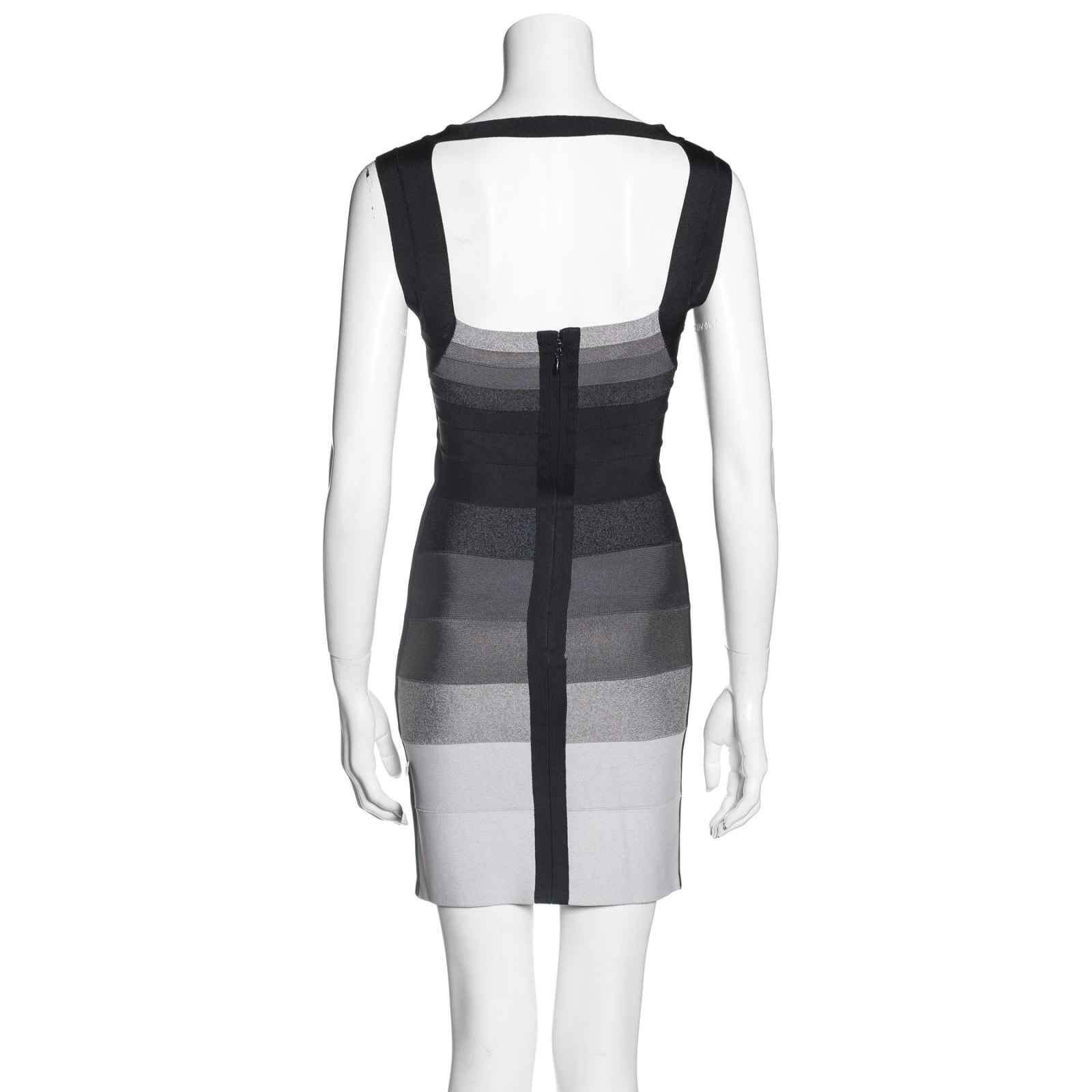 "Sukienka mini, elastyczna, grubsze czarne ramiączka, szare pasy w różnych odcieniach. Nowa z metkami. Rozmiar S. Skład 90 % rayon 9% nylon 1% spandex. Wymiary: biust 35 cm., talia 31 cm. długość całkowita 84 cm."