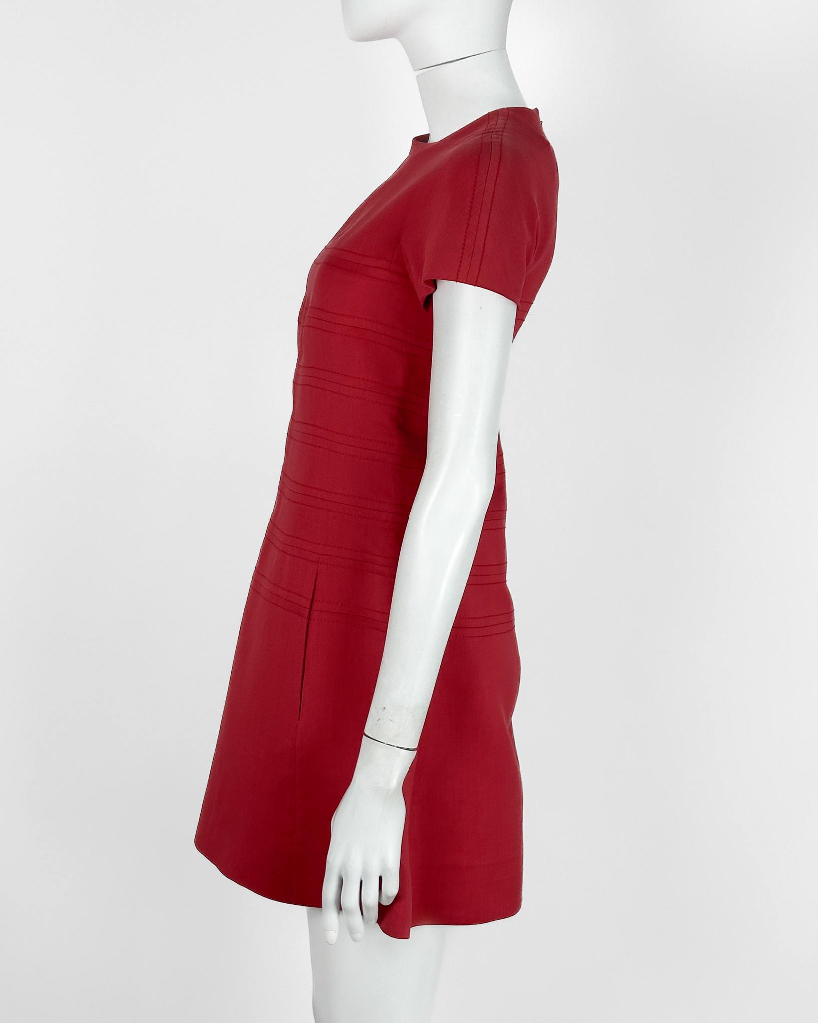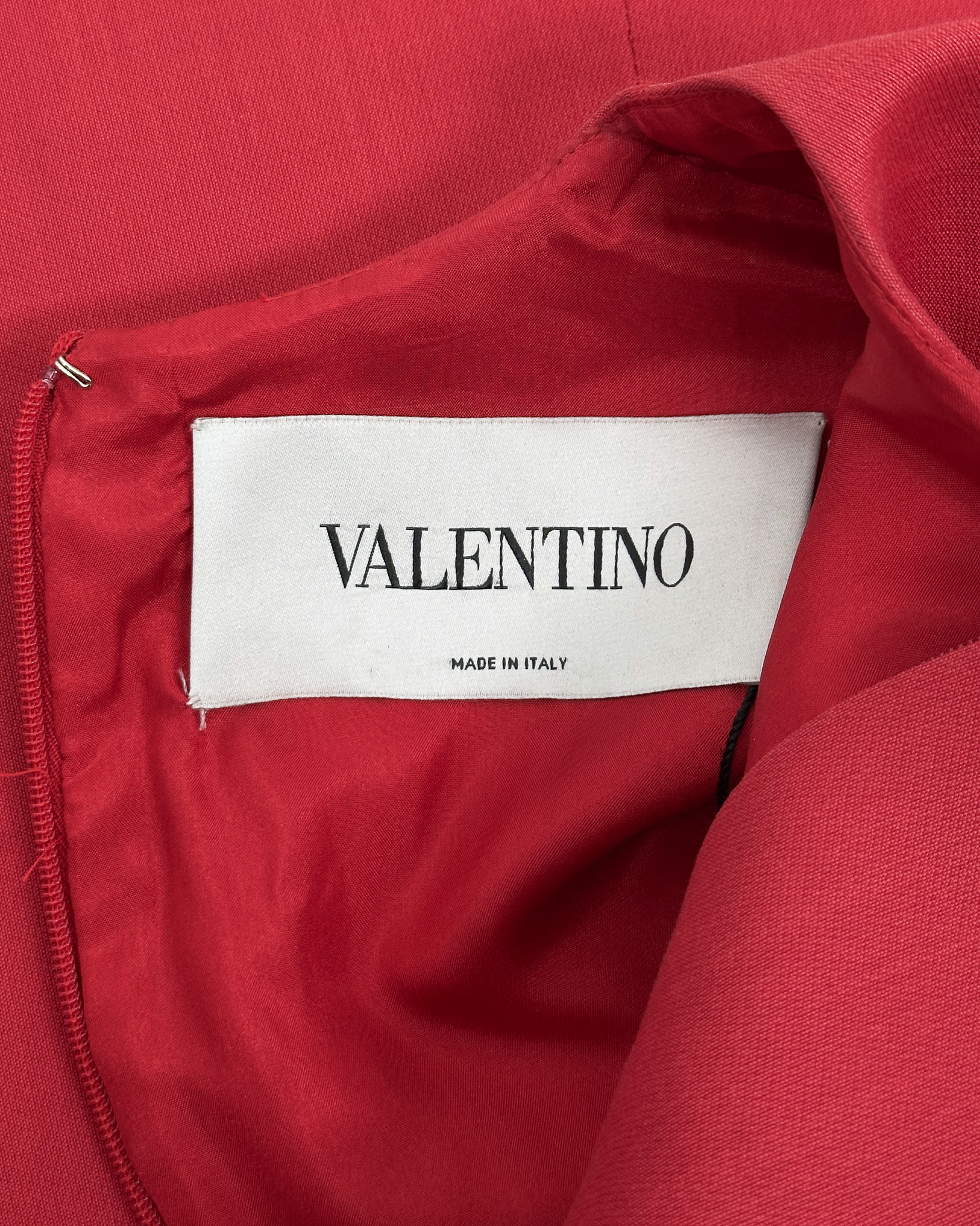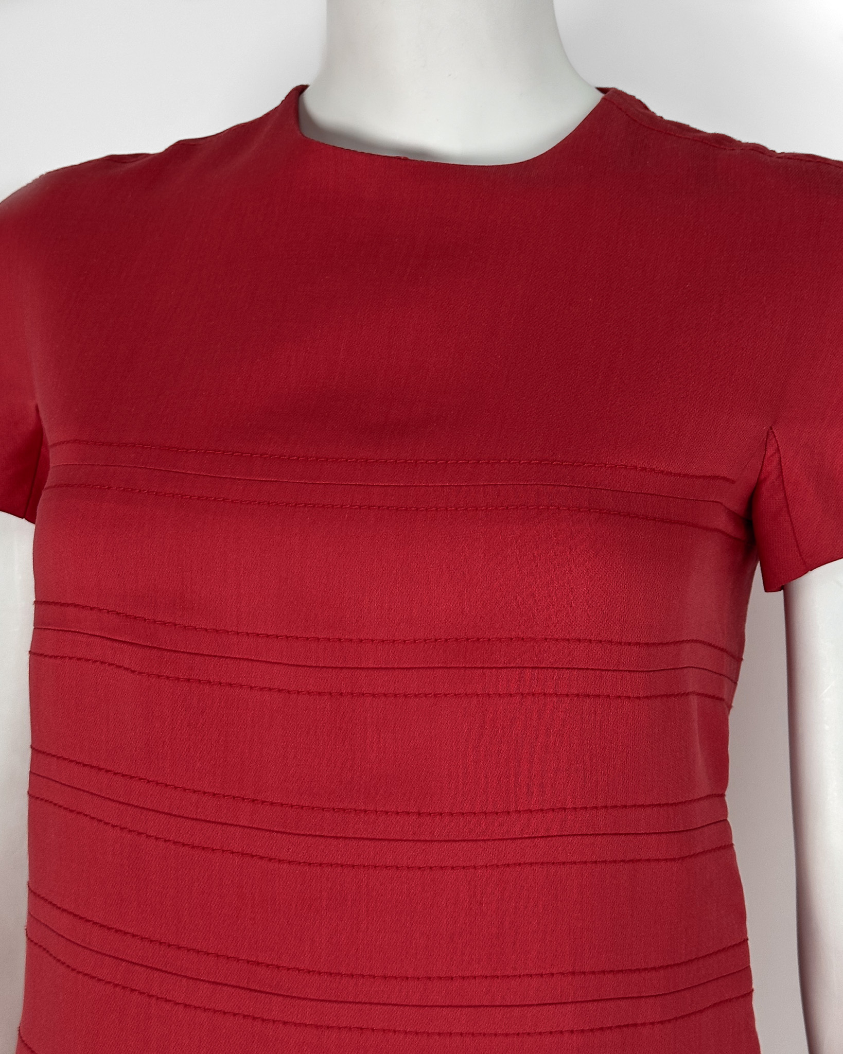 "Czerwona sukienka przed kolano. Skład 52% bawełna, 48% jedwab. Podszewska 100% jedwab.
