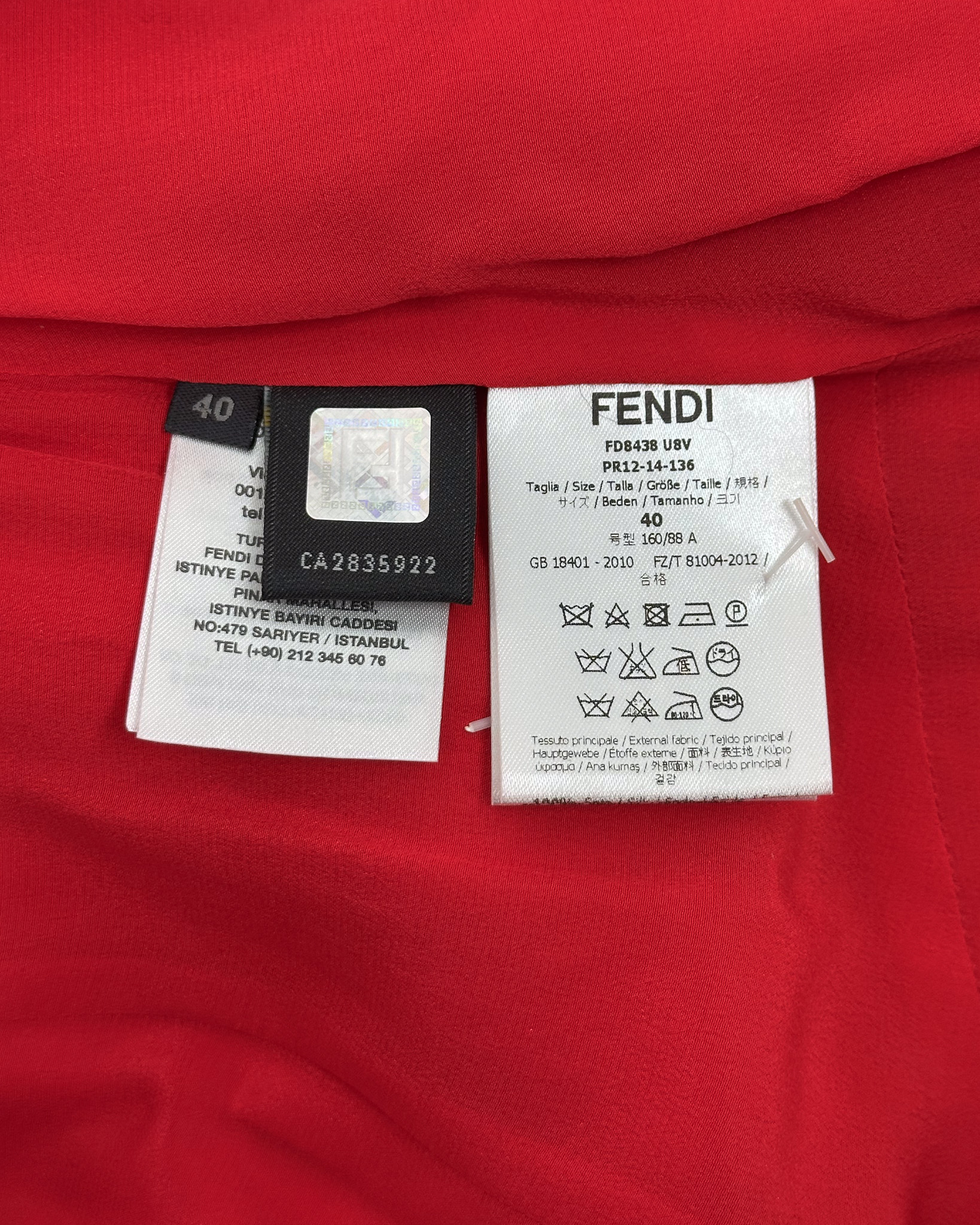 "Sukienka czerwona Fendi. Skład 100% jedwab.