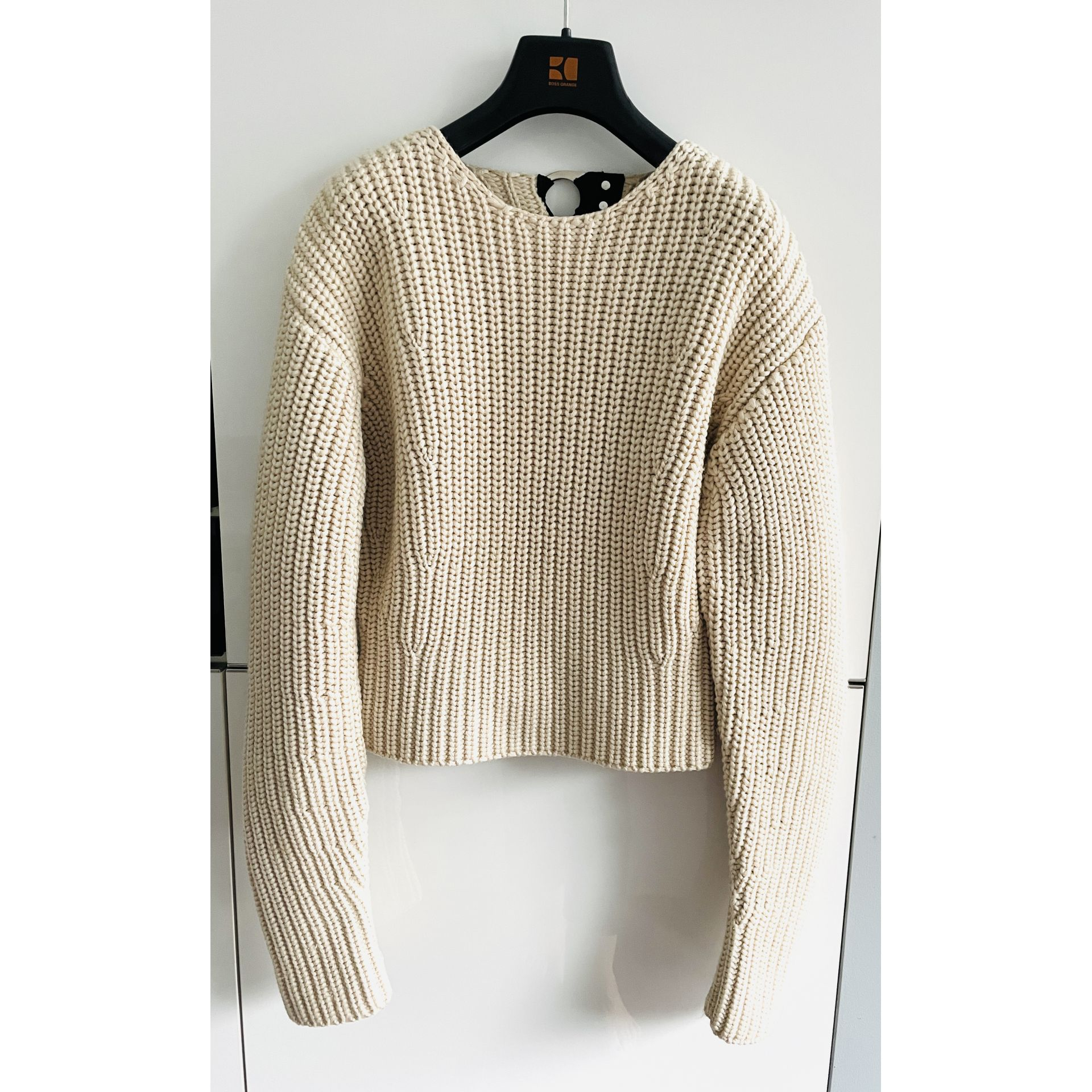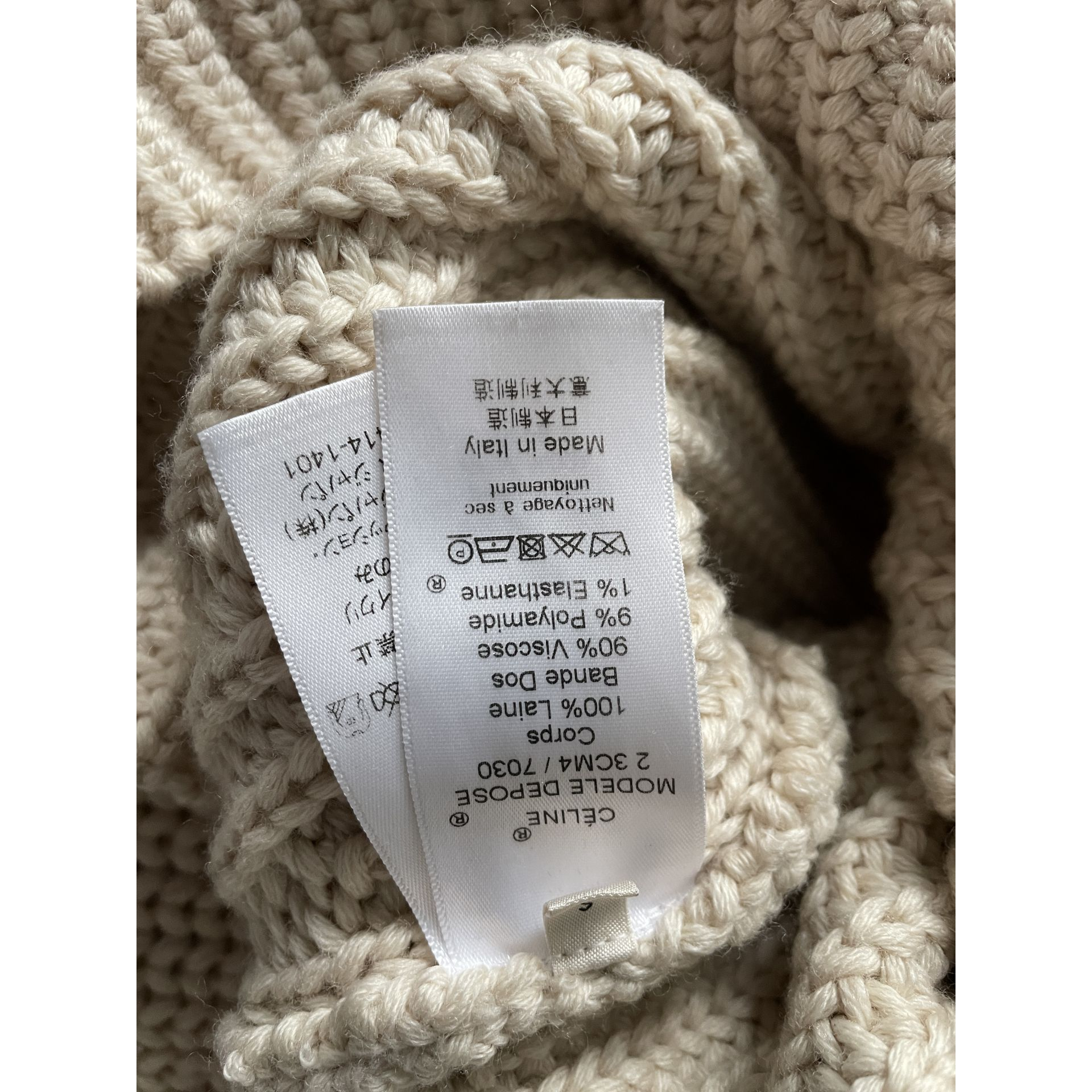"SWETER CELINE W KOLORZE BEŻOWYM, Z WEŁNY, FASON KRÓTKI DO PASA - IDEALNY DO SPODNI Z WYSOKIM STANEM. Z TYŁU OZDOBNE ZAPIĘCIE Z CZARNĄ LUŹNO OPADAJĄCĄ WSTĄŻKĄ. STAN BARDZO DOBRY. ROZMIAR S."