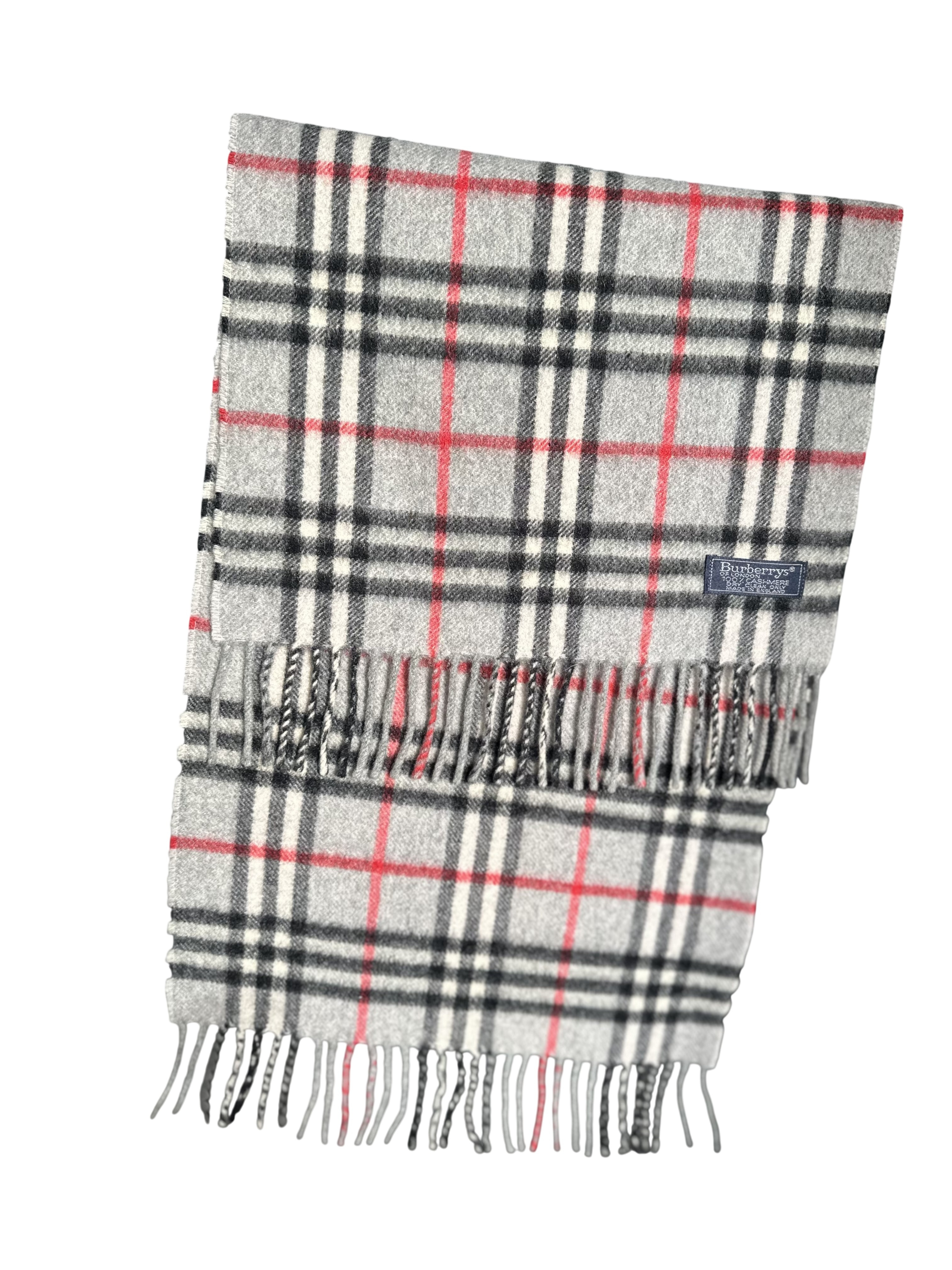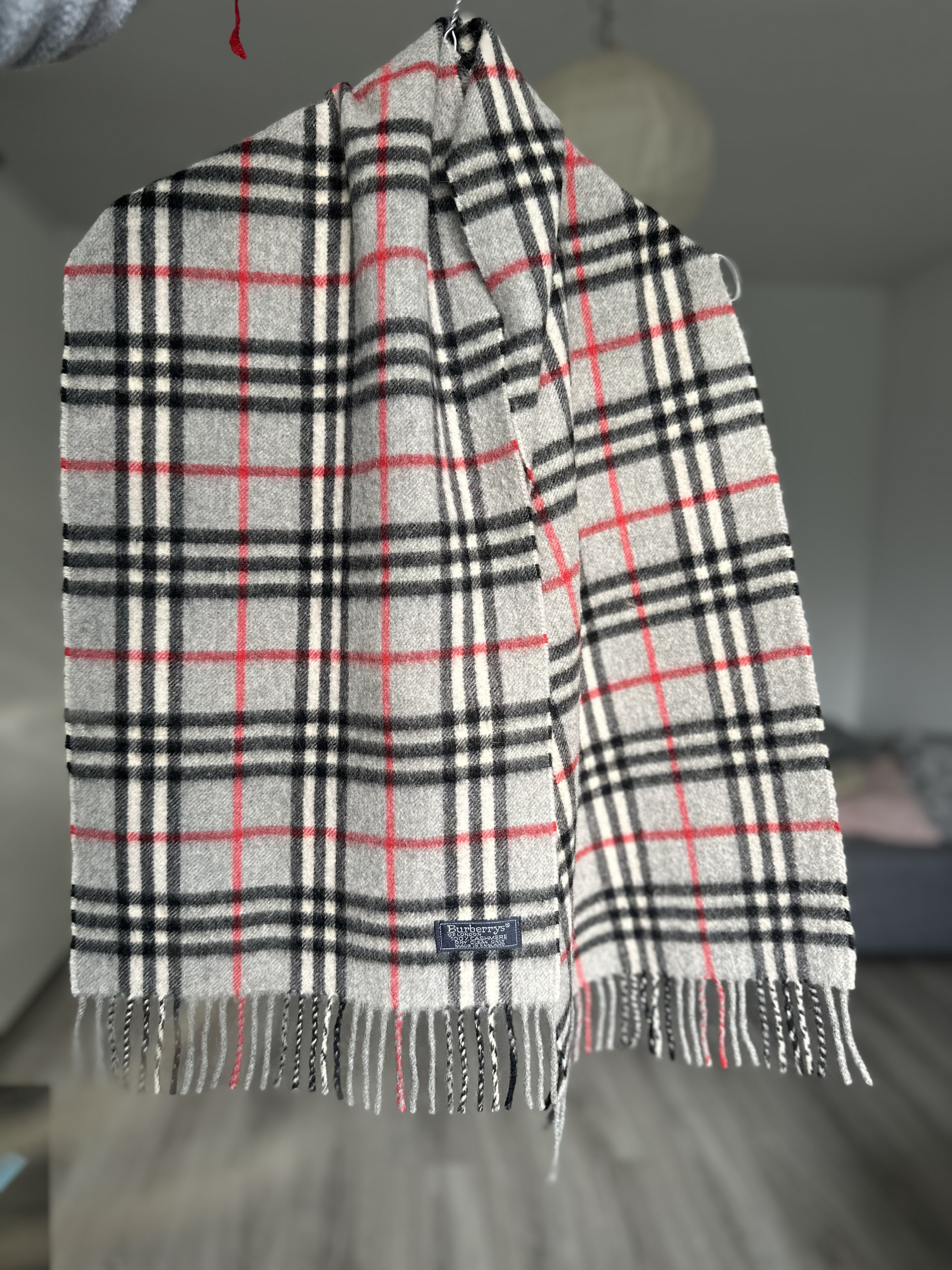 Ten autentyczny szalik Burberrys of London w stylu vintage to piękny i ponadczasowy dodatek. Metka „Burberrys” potwierdza, że jest to oryginalny produkt wytworzony przed rebrandingiem marki w 2000 roku. Wykonany w Anglii ze 100% kaszmiru, zapewnia wyjątkowe ciepło, miękkość i trwałość.