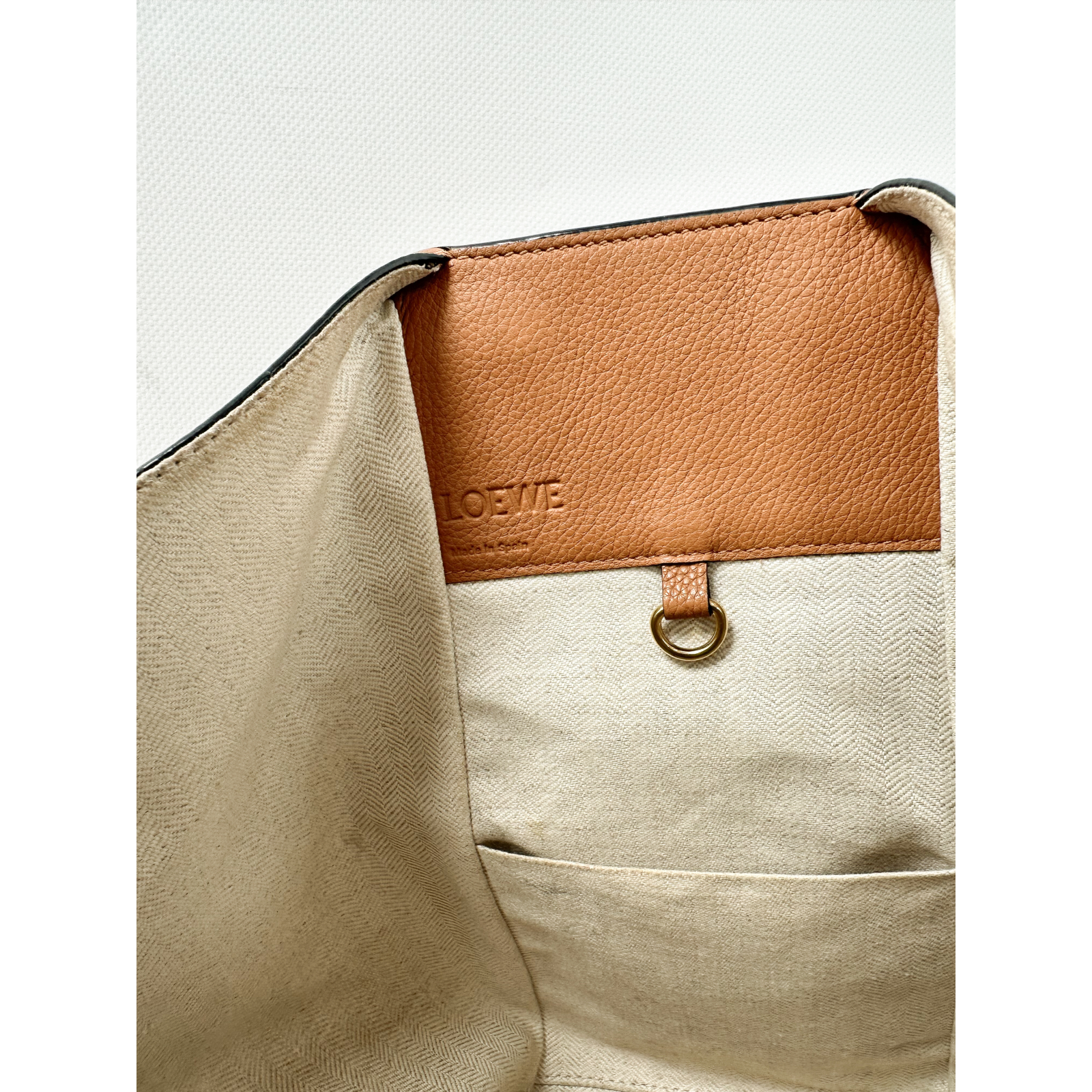 "LOEWE HAMMOCK. Brązowa skórzana torebka, złote okucia, logowanie z boku torebki, regulowany pasek, torebka posiada rozpinane zamki. Używana w bardzo dobrym stanie, rączki są delikatnie poprzecierane, podszewka torebki posiada niewielkie plamy, okucia posiadają rysy. W komplecie rachunek oraz karta. Wymiary: 25 x 26,5 x 16 cm (wys. x szer. x gł.)."