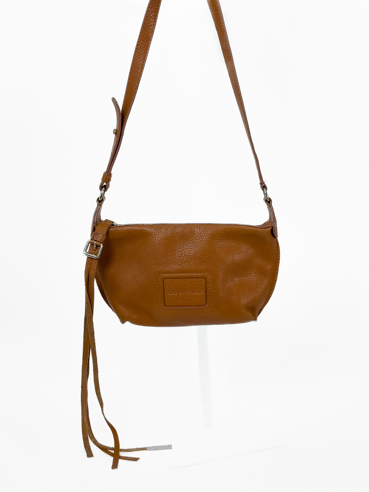 "Camelowa torebka, delikatny kształt bagietki, pasek z regulacją. Worek przeciwkurzowy oraz karta w komplecie. Stan dobry, posiada przetarcia. Wymiary: szerokość 24cm, wysokość 13cm, głębokość 5cm."