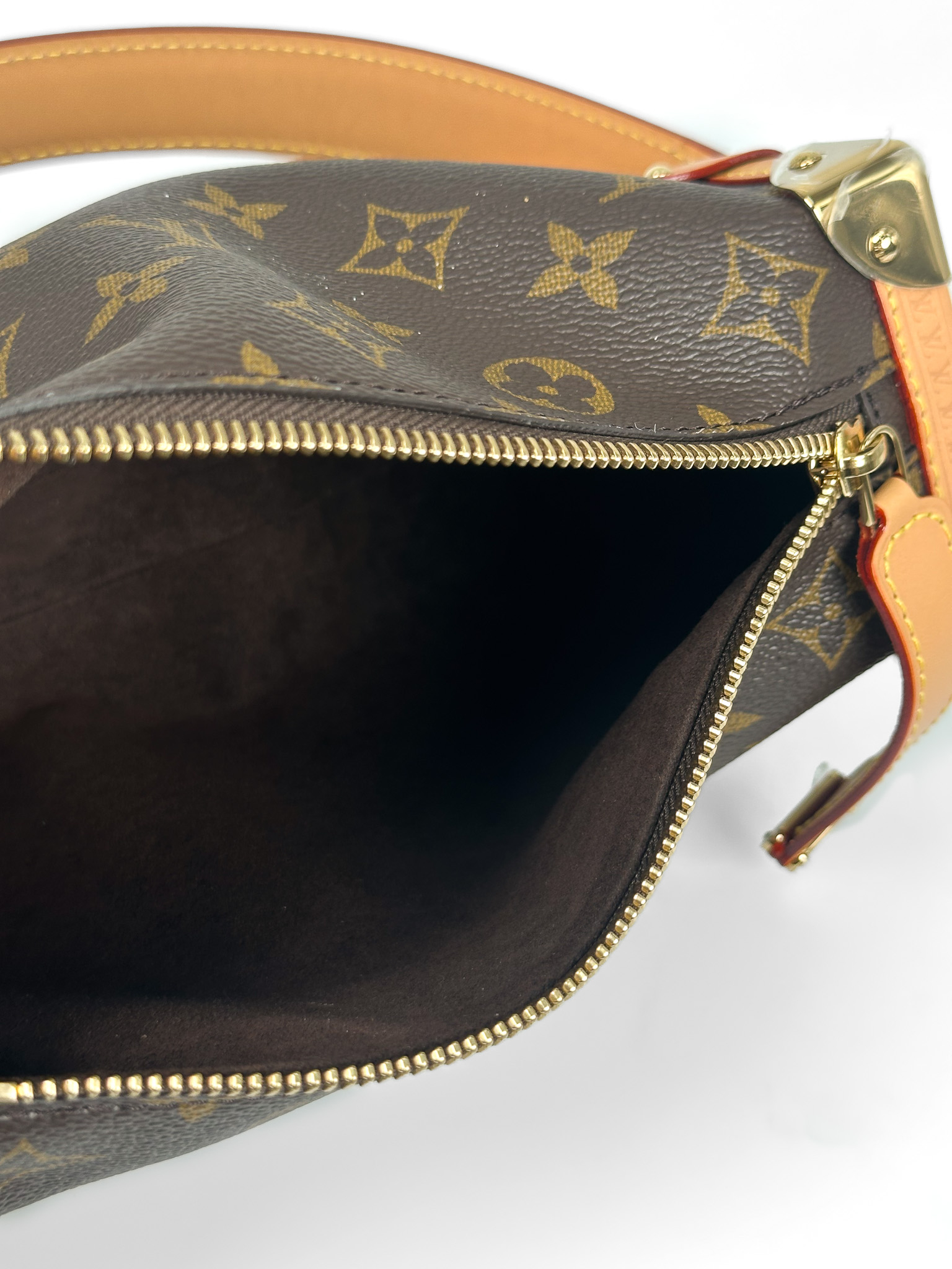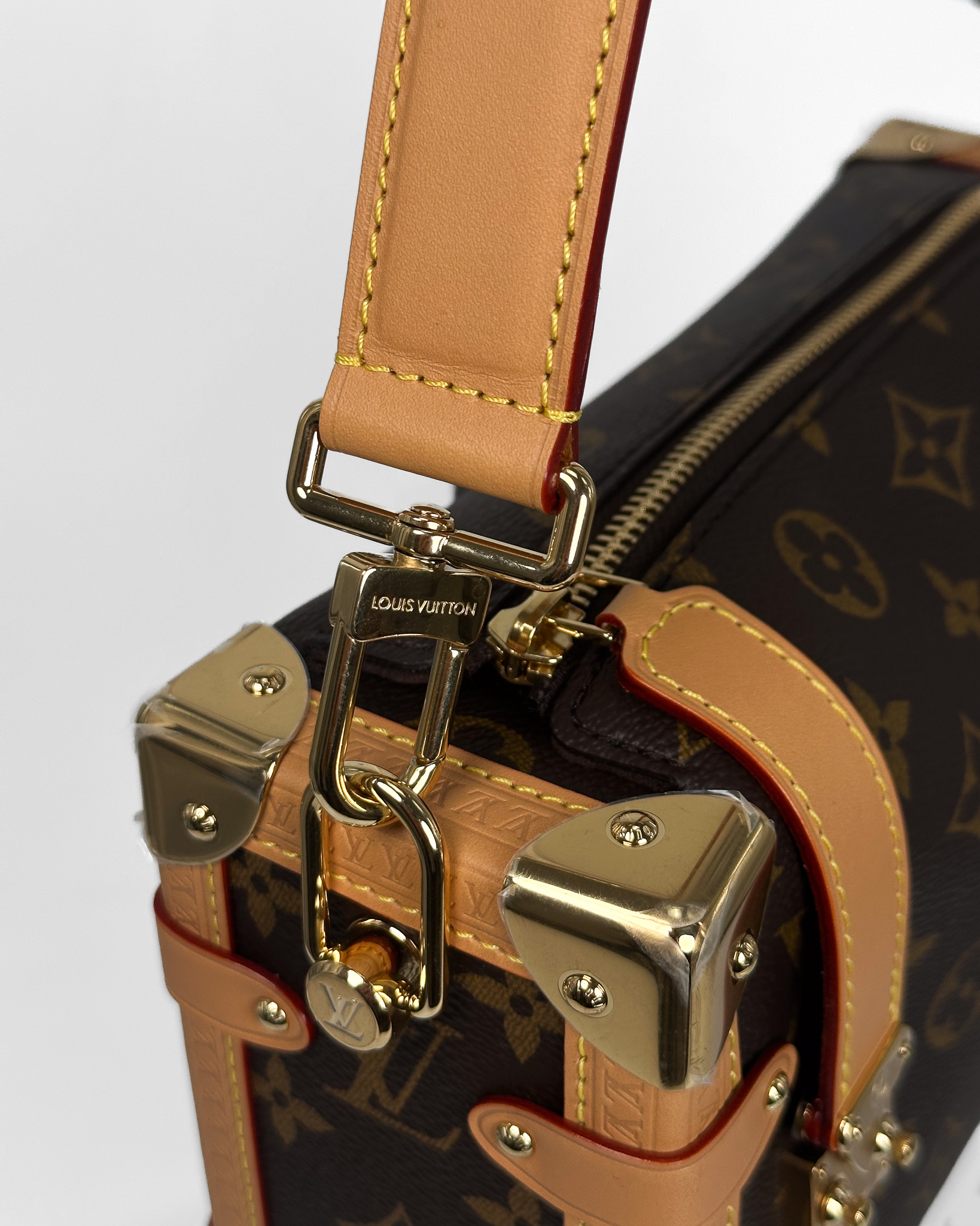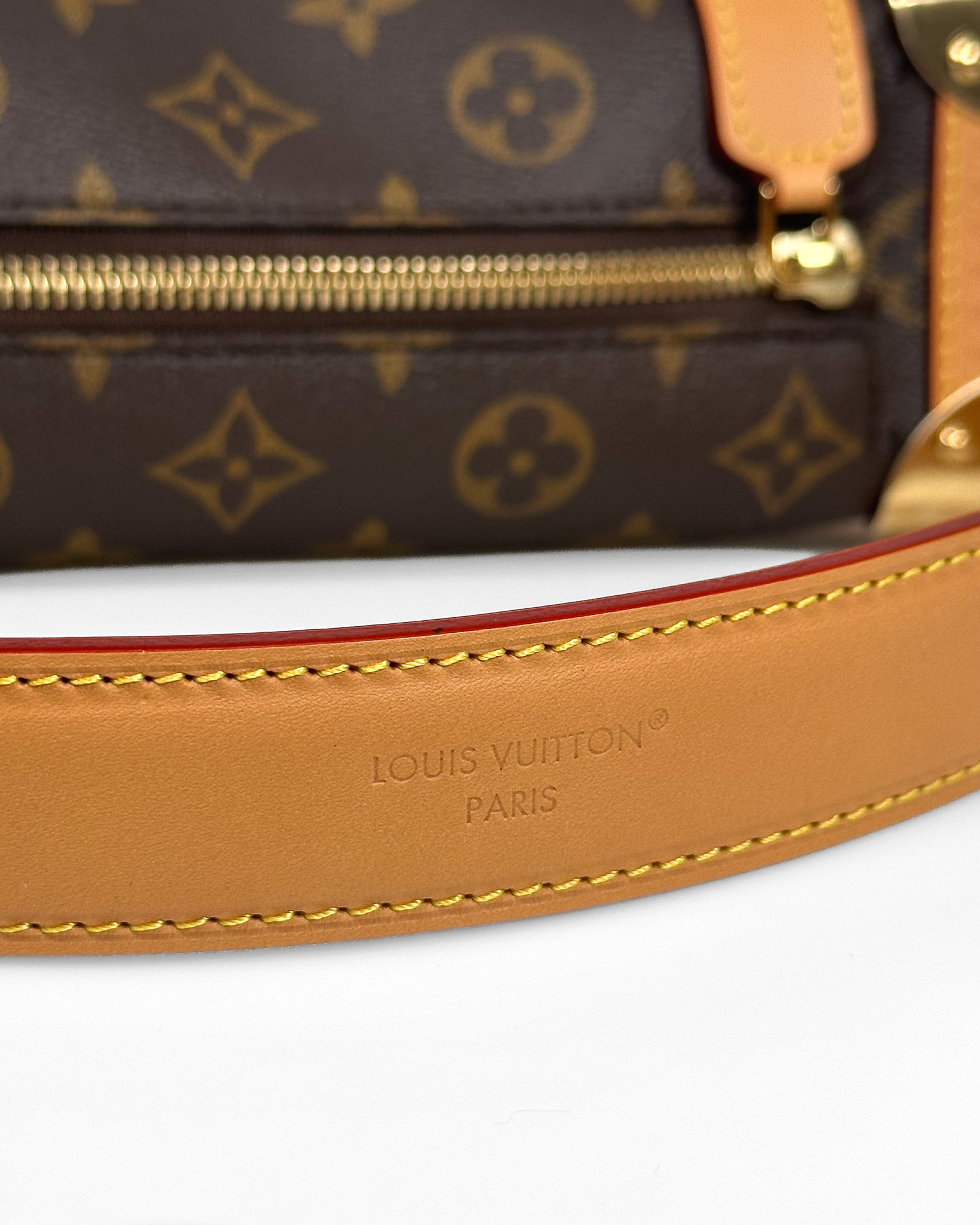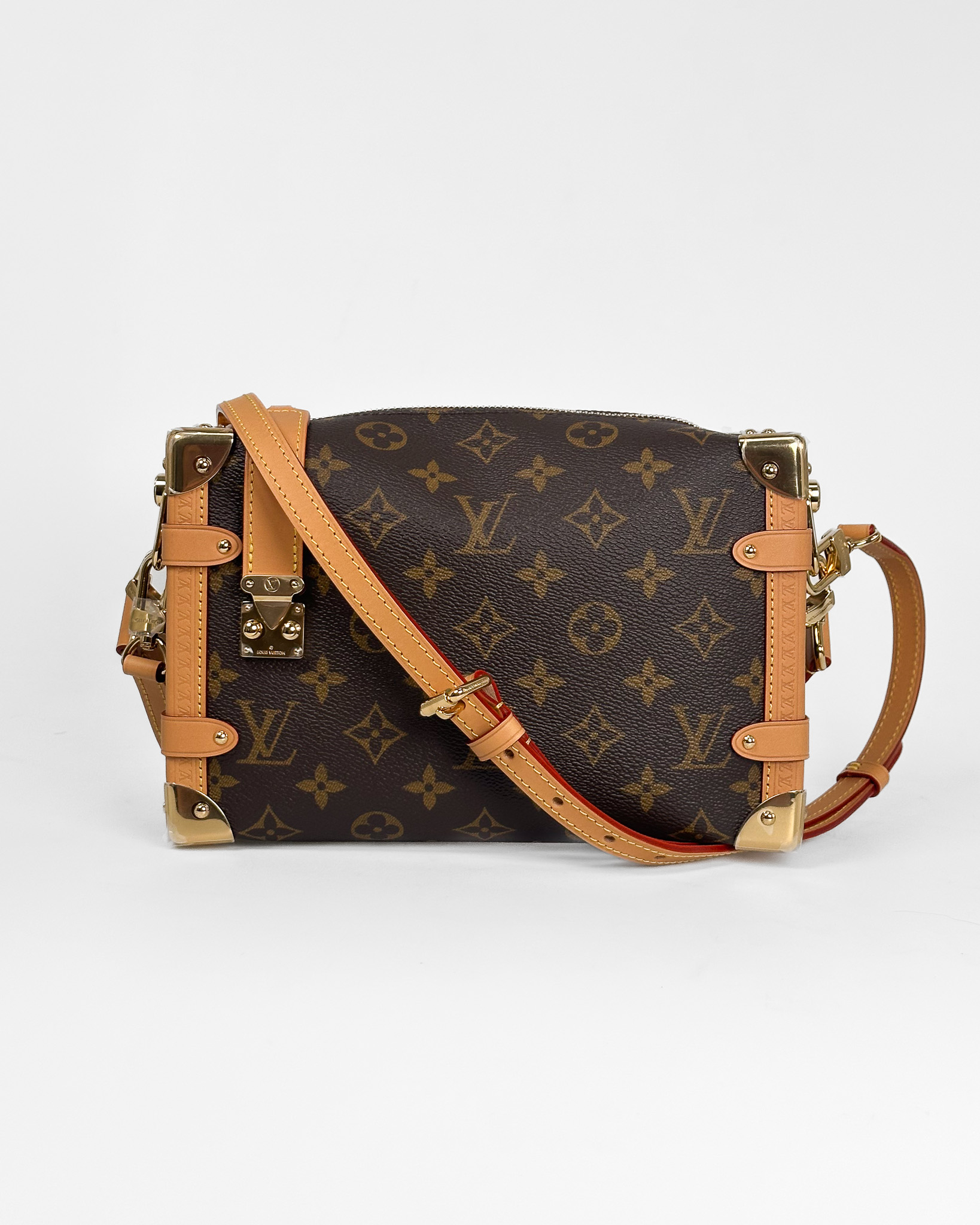 "Model: Side Trunk MM. Torebka w monogram ze skórzanymi wykończeniami. Posiada unikatowy skórzany suwak z kultowym zamkiem S-lock oraz wzmocnione metalowe narożniki. Szeroki uchwyt górny jest odpinany, możliwość dopięcia dwóch pasków. W zestawie z pudełkiem. Nowa. Wymiary: szerokość 24cm, wysokość 15,5cm, głębokość 8,5cm."