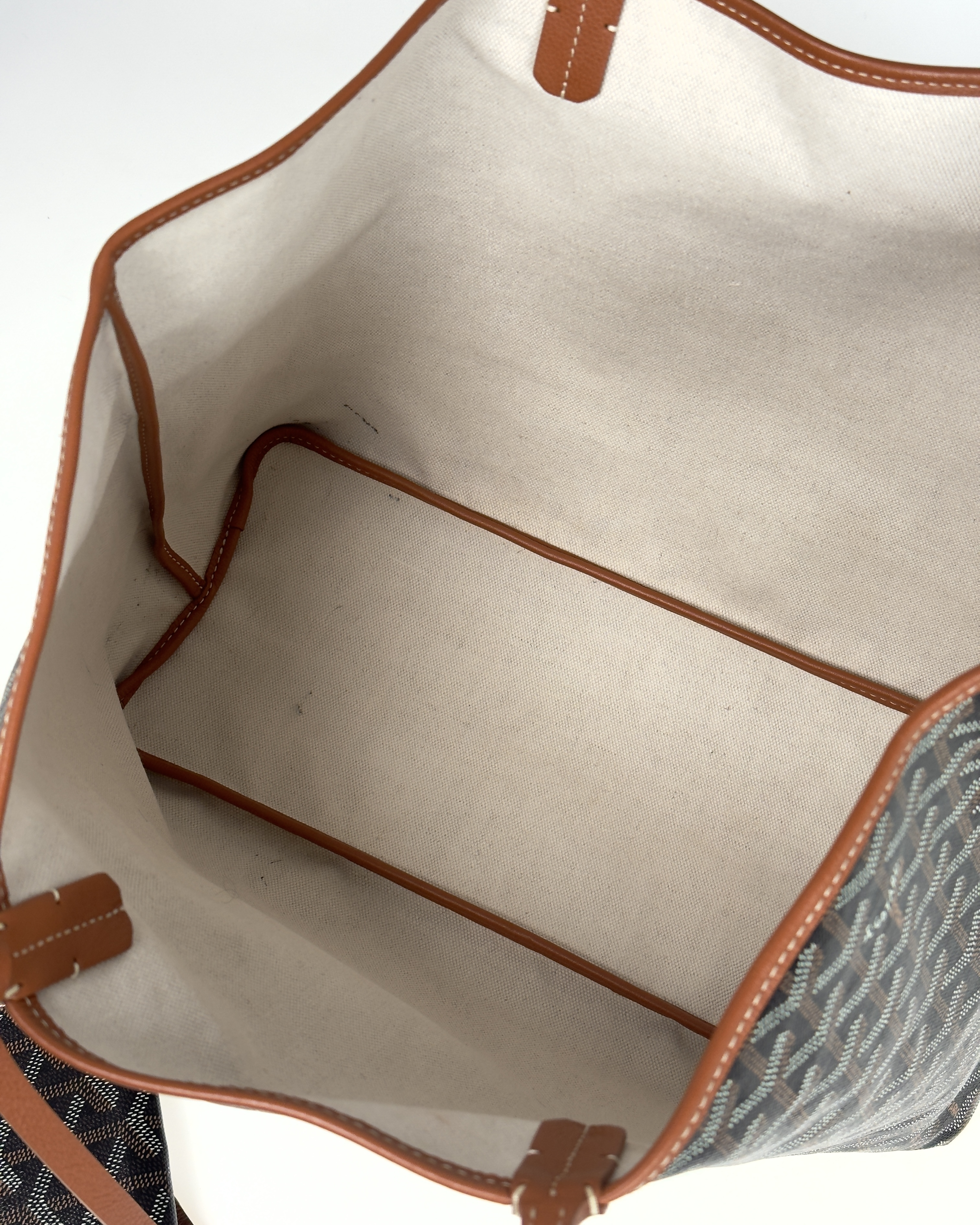 "Goyard Saint Louis PM, brązowy monogram + naturalna skóra, shopper, canvas, skóra cielęca, brak zamka 34x28x15cm, posiada dokumenty oraz etui, stan bardzo dobry"