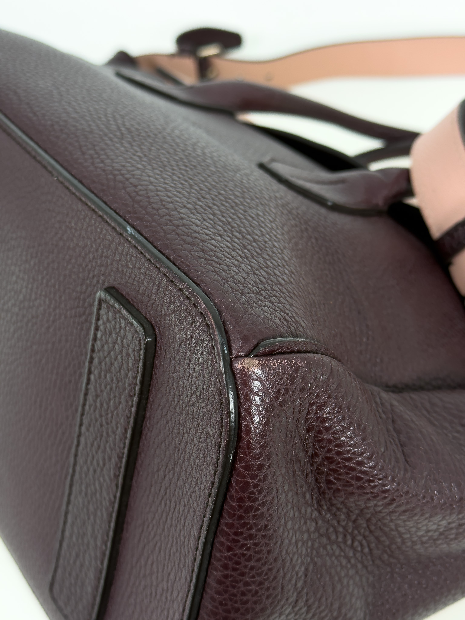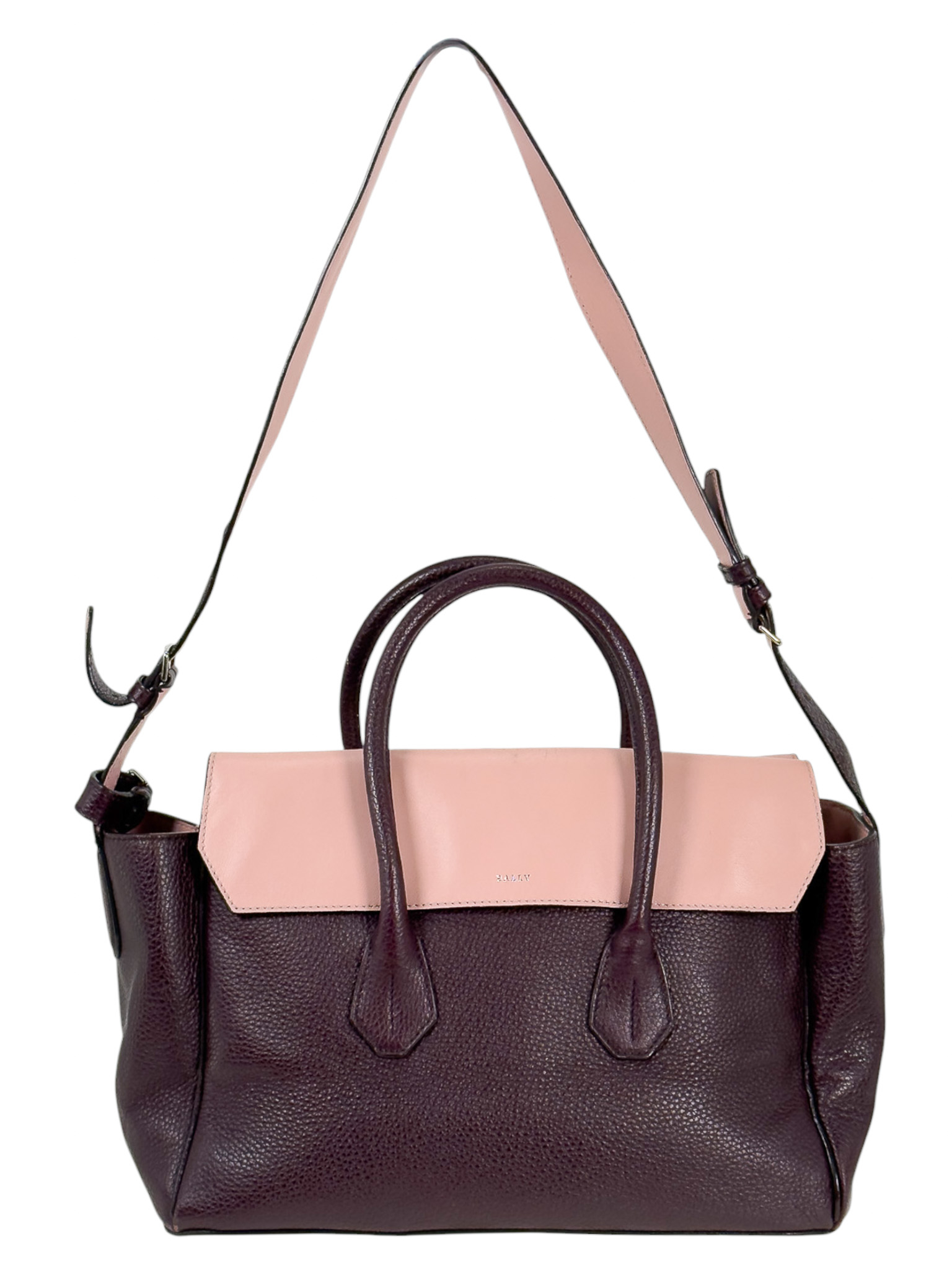 "model Sommetfold w kolorze śliwkowo-różowym. Klasyczna torba typu tote, wykonana ze skóry cielęcej, zapinana na magnes, pojemne wnętrze ze skóry o kolorze różowym, dodatkowo kieszonka na zamek. Z przodu torebki wybite srebrne logo marki, jedna kieszeń zewnętrzna pod przednią klapą. Posiada długi, regulowany, nieodpinany pasek. Torebka nosi ślady użytkowania, zarysowania, przebarwienia na skórze, przetarcia na rogach, wewnątrz torebki nieznaczne ślady z długopisu. Stan dobry. Worek przeciwkurzowy w zestawie. Wymiary: wysokość 28 cm, szerokość 35cm, głębokość 18 cm."