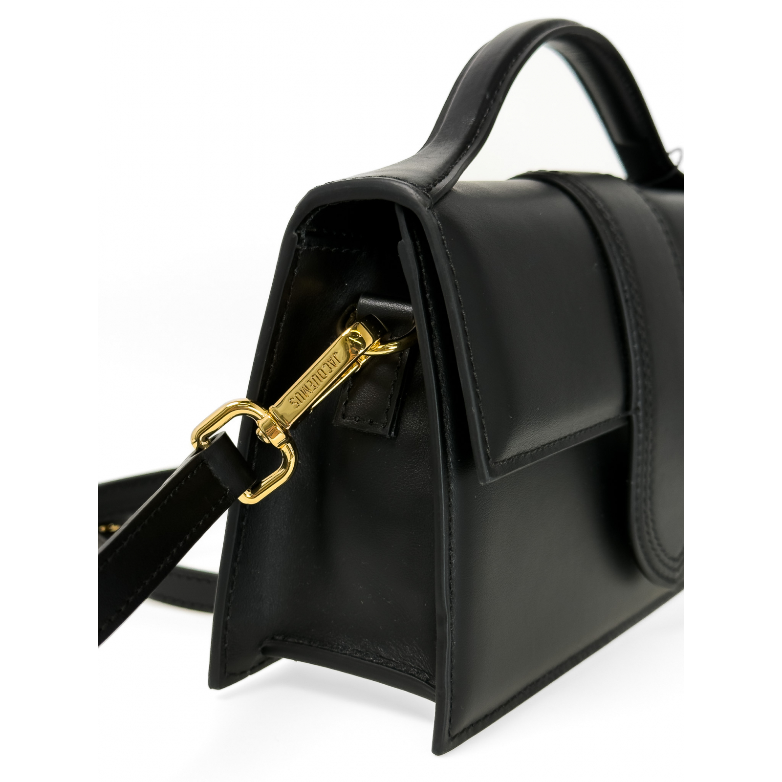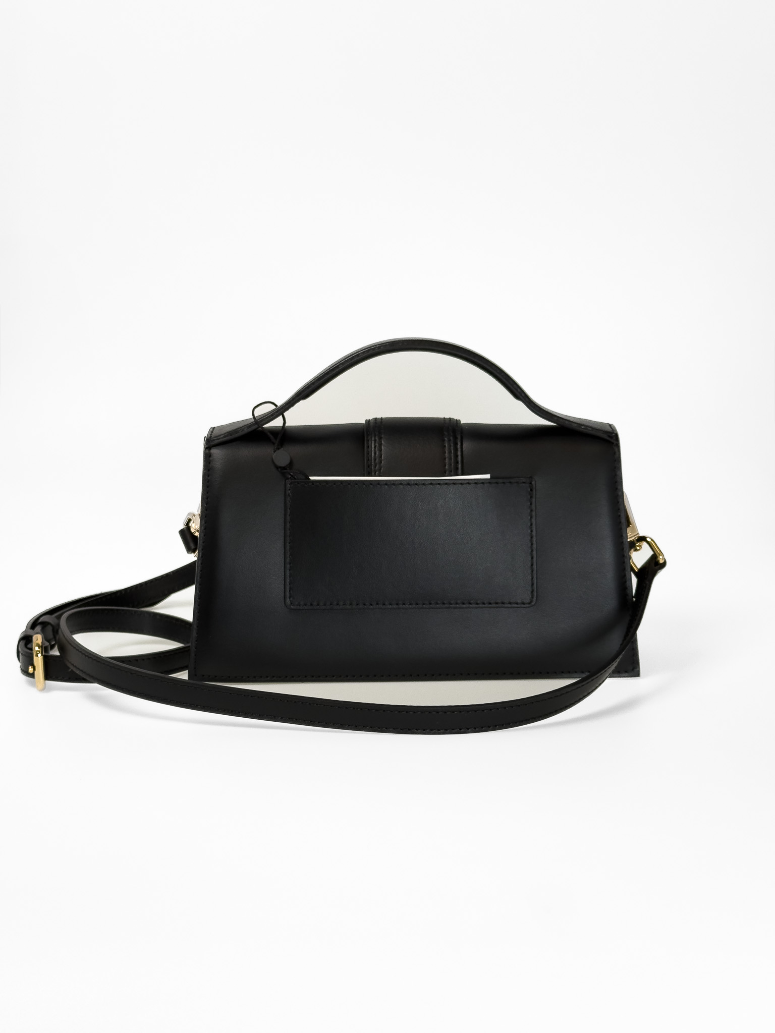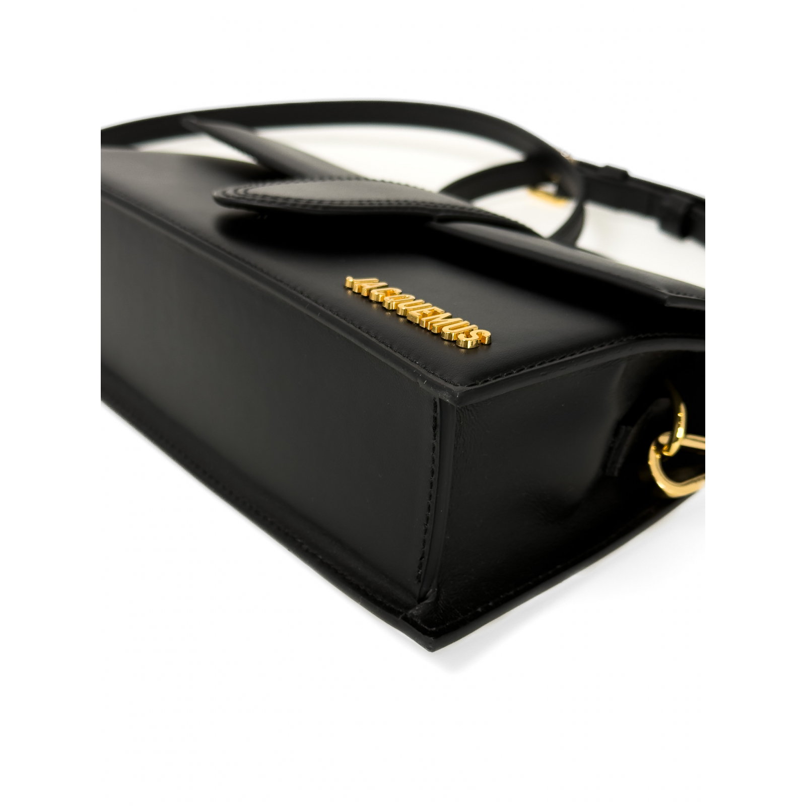 "Model: le grand bambino; Czarna skórzana torebka na ramię/ do ręki, odzobiona złotym logo marki, trapezowy kształt, długi, regulowany pasek na ramię, uchwyt do ręki, zapinana na zapięcie magnetyczne pod klapą, jedna komora z kieszenią wewnątrz, w zestawie z workiem przeciwkurzowym. Stan nowa."