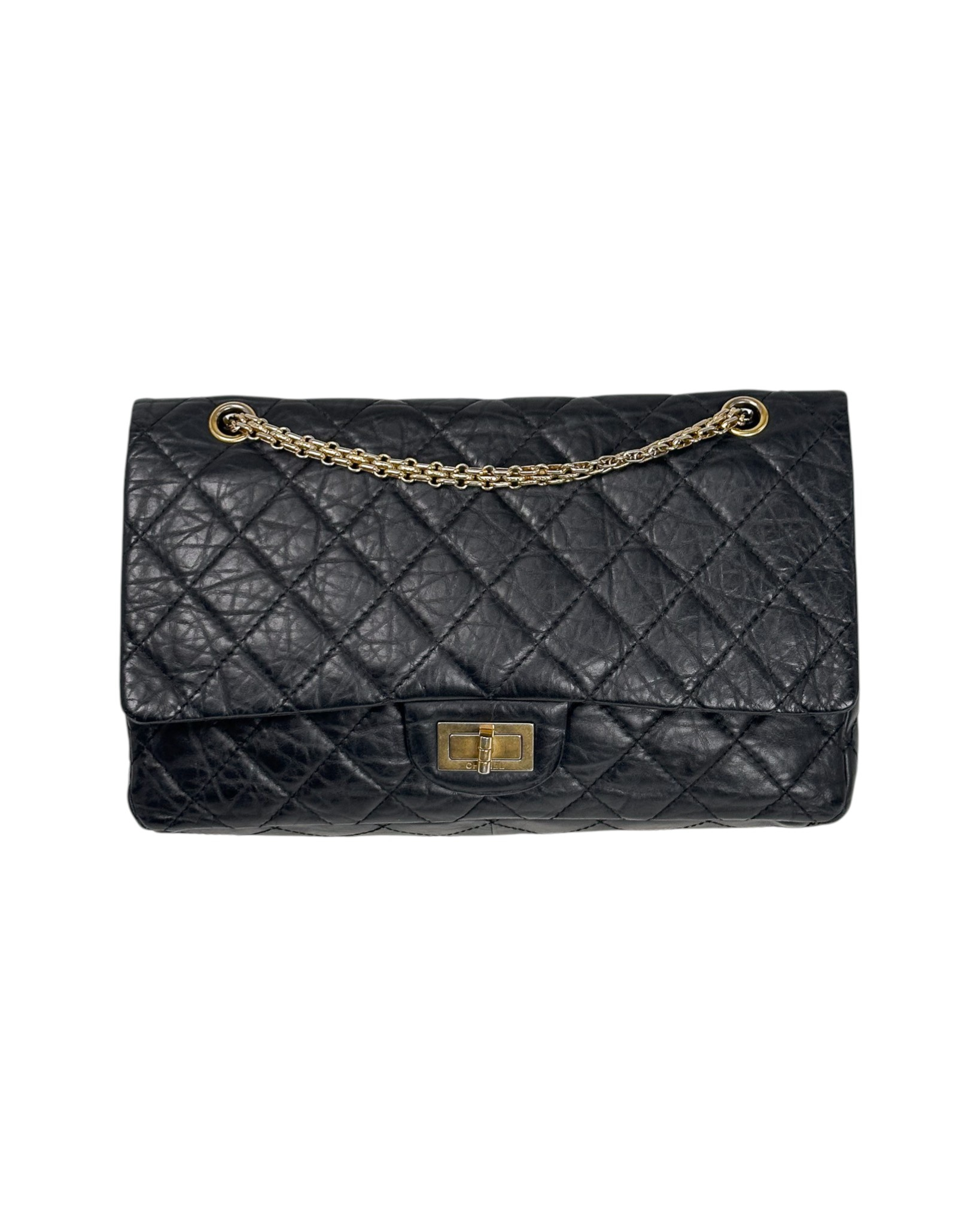 "Czarna torebka z gniecionej skóry, złote okucia. Model Reissue Rozmiar JUMBO."