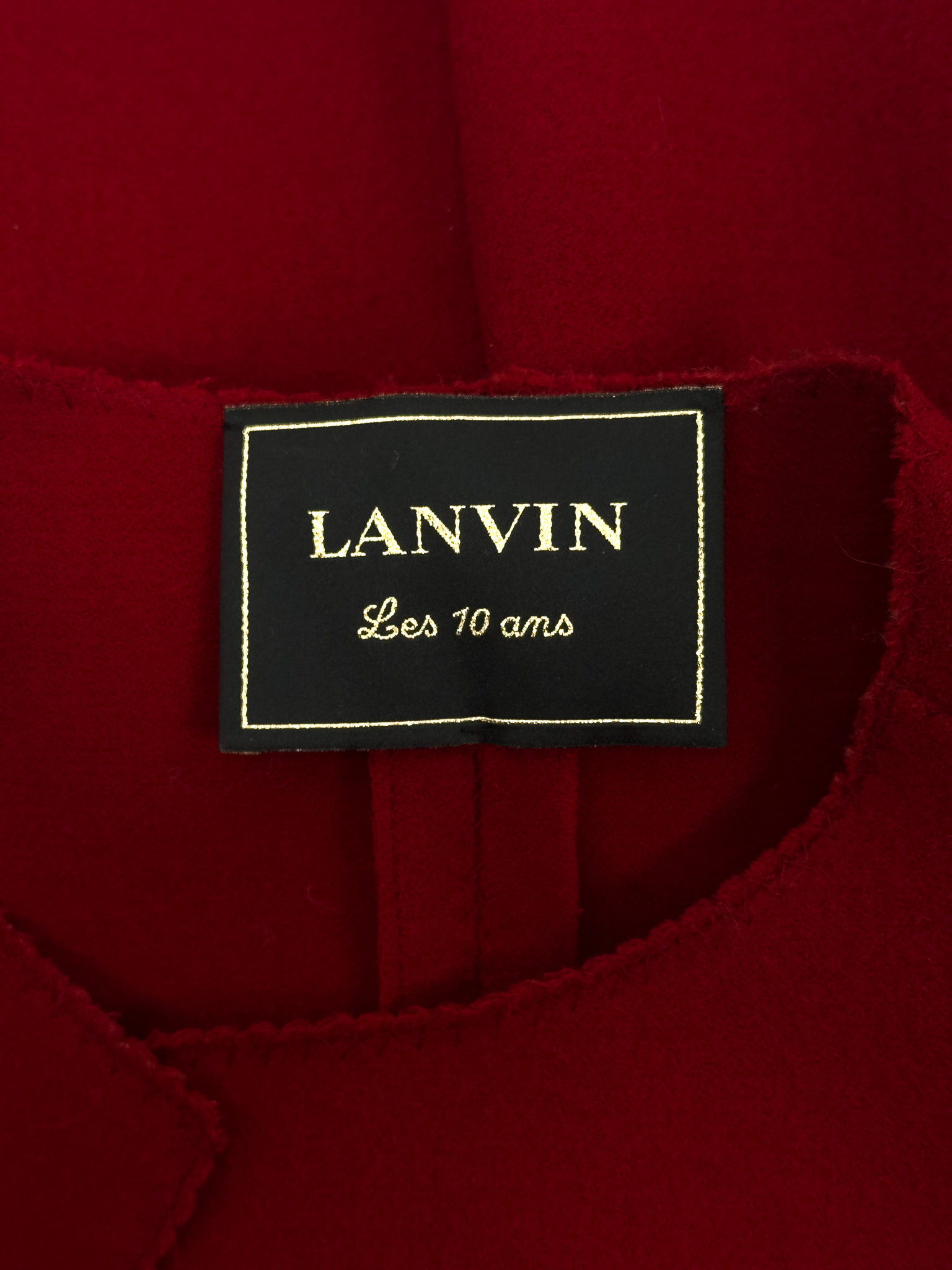 "Czerwony, wełniany żakiet, taliowany, forma baskinki, zapinany na haftkę, surowo wykończony. Rozmiar z metki FR 44. Skład: 77% wełna, 19% poliamid, 4% elastan. Stan: bardzo dobry. Wymiary: szerokość mierzona od pachy do pachy 51cm, długość całkowita 60cm."