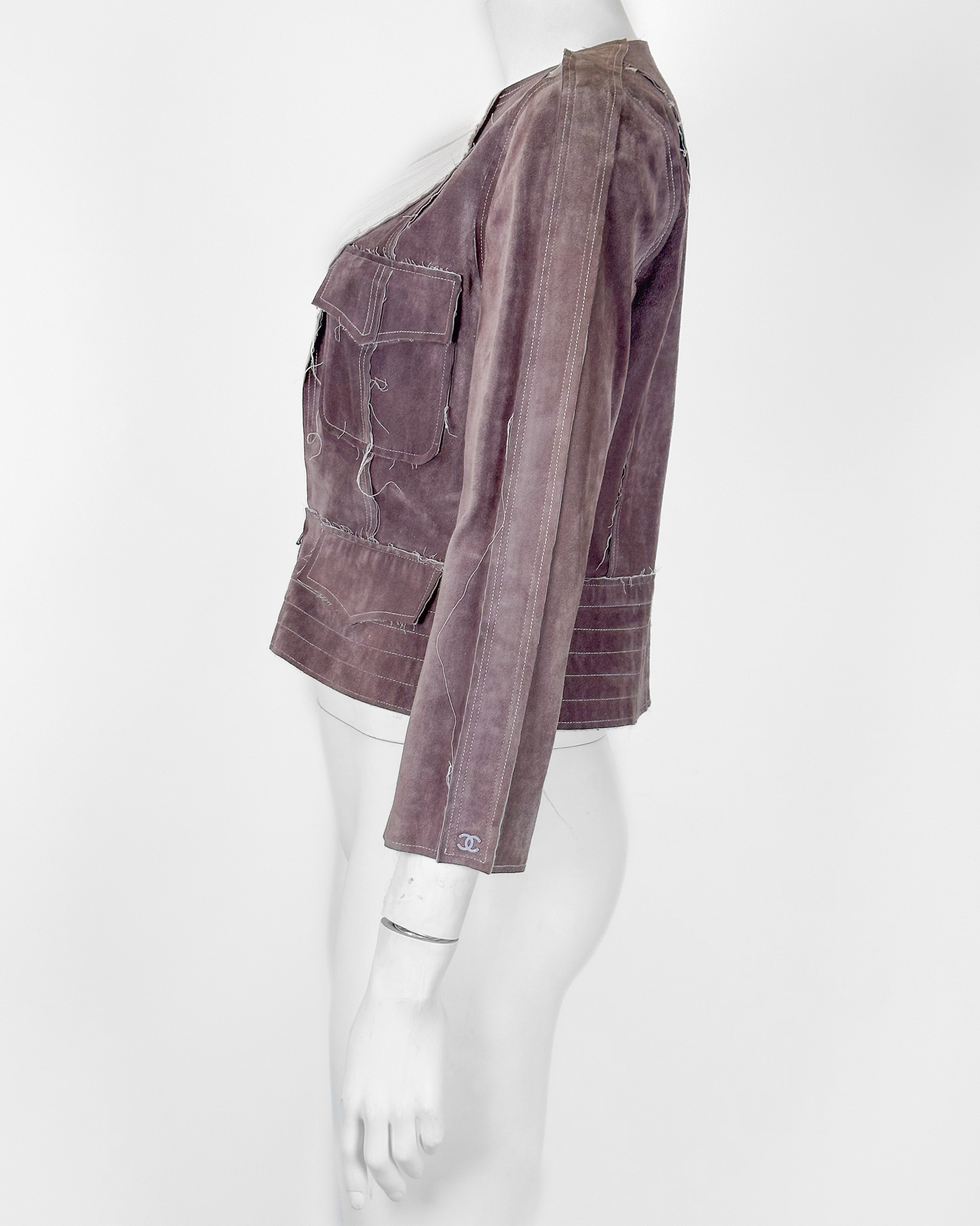 "Żakiet, kurtka skórzana-zamszowa, distressed, przeszywany biała nitką. Rozmiar 42."