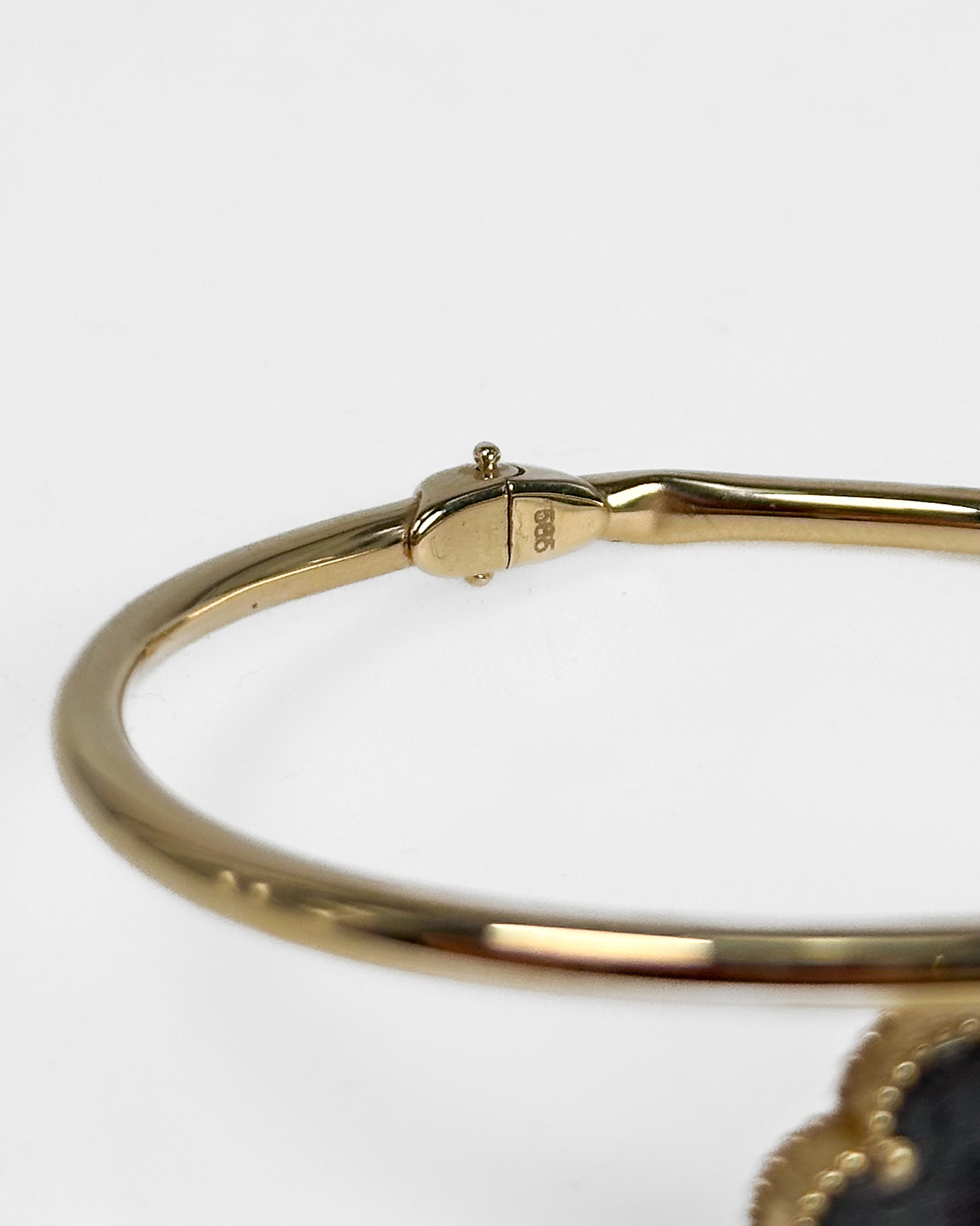 "Bransoletka złota, sztywna, ozdobne koniczyny z kamieniami- agatem"