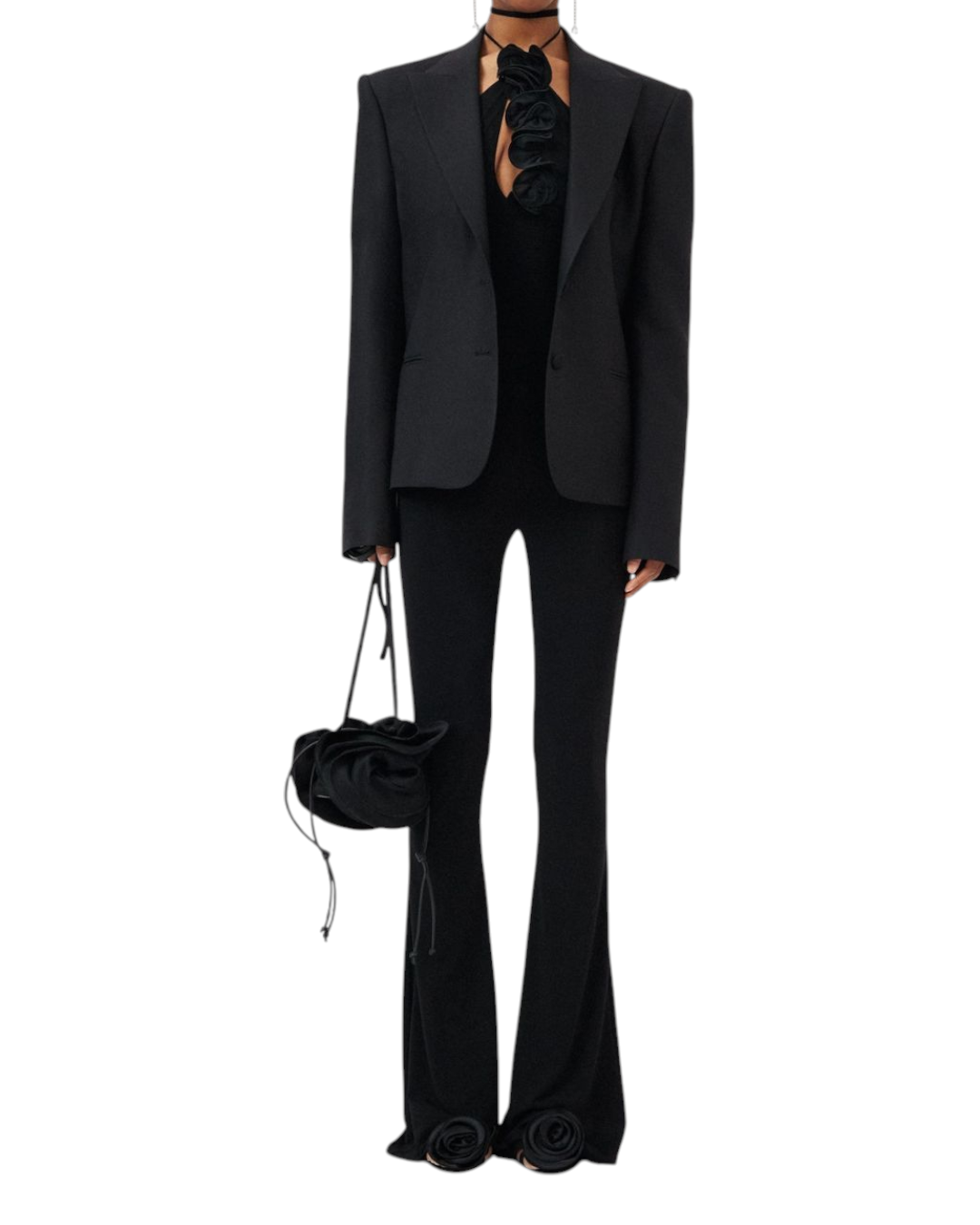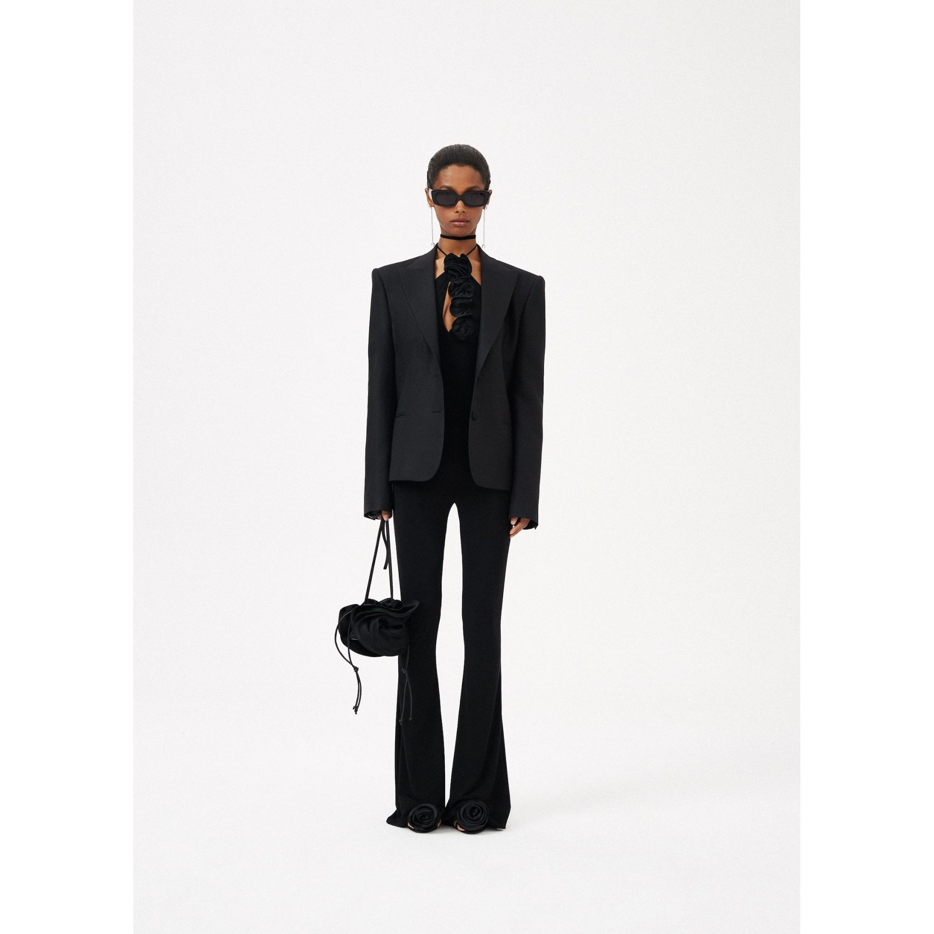 "GARNITUR MAGDA BUTRYM - KLASYCZNA MARYNARKA OVERSIZE R. 36 ORAZ SPODNIE R. 36. MATERIAŁ WEŁNA - JEDWABNA PODSZEWKA. WYMIARY MARYNARKI - SZEROKOŚĆ 52 CM, DŁUGOŚĆ 75 CM, RAMIONA 39 CM, ATŁASOWE KLAPY - ZAPINANA NA JEDEN GUZIK. SPODNIE - PAS 74 CM, SZAROŚĆ UDA 26 CM, SZEROKOŚĆ DOŁU 30 CM, DŁUGOŚĆ 109 CM, PO BOKACH ATŁASOWE LAMPASY. STAN BARDZO DOBRY - UBRANY DWUKROTNIE."