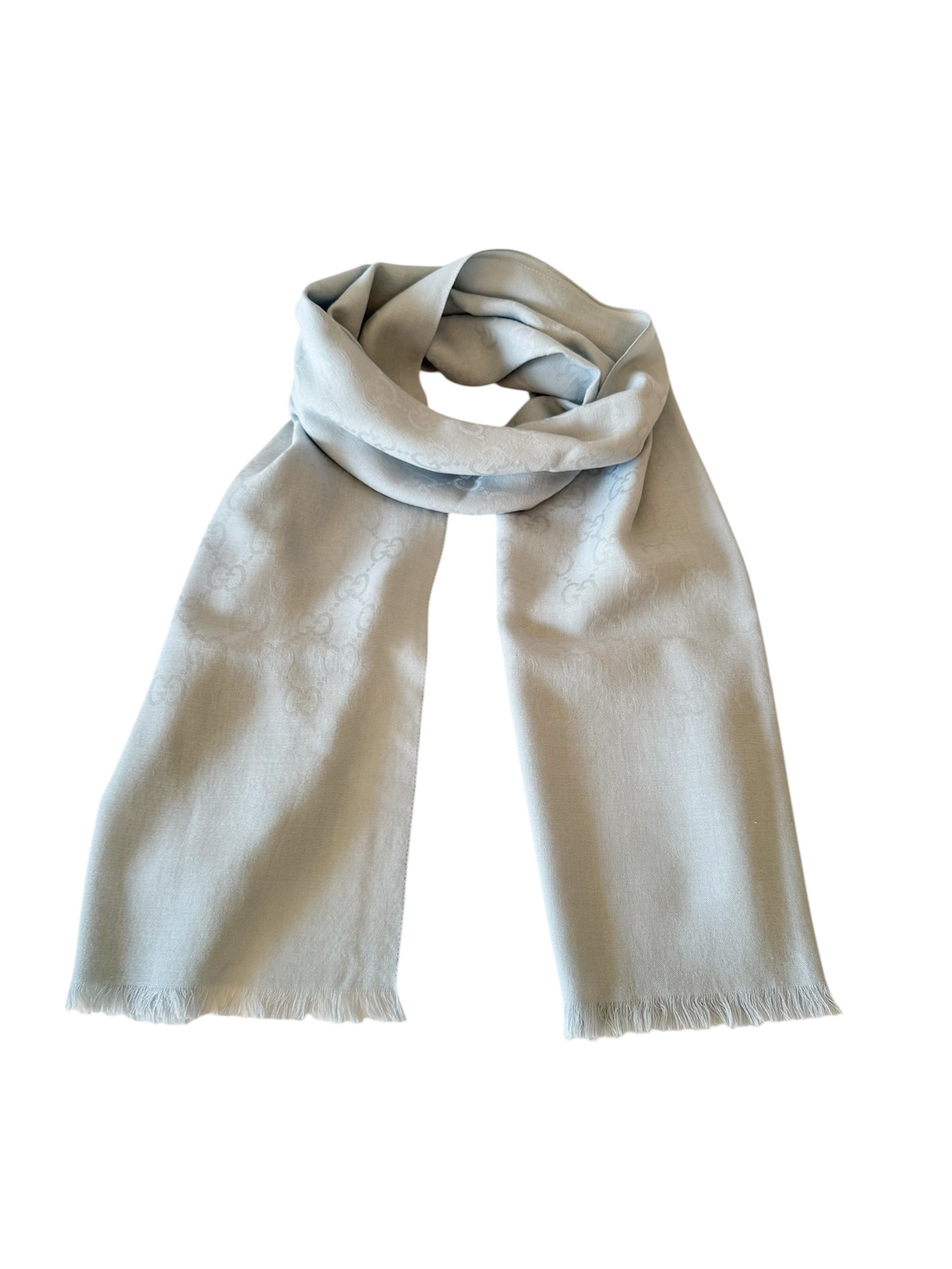 ▪️Wykonany we Włoszech z mieszanki wełny i jedwabiu, tkany z charakterystycznym dla marki logo „GG” i obszyty miękkimi frędzlami.