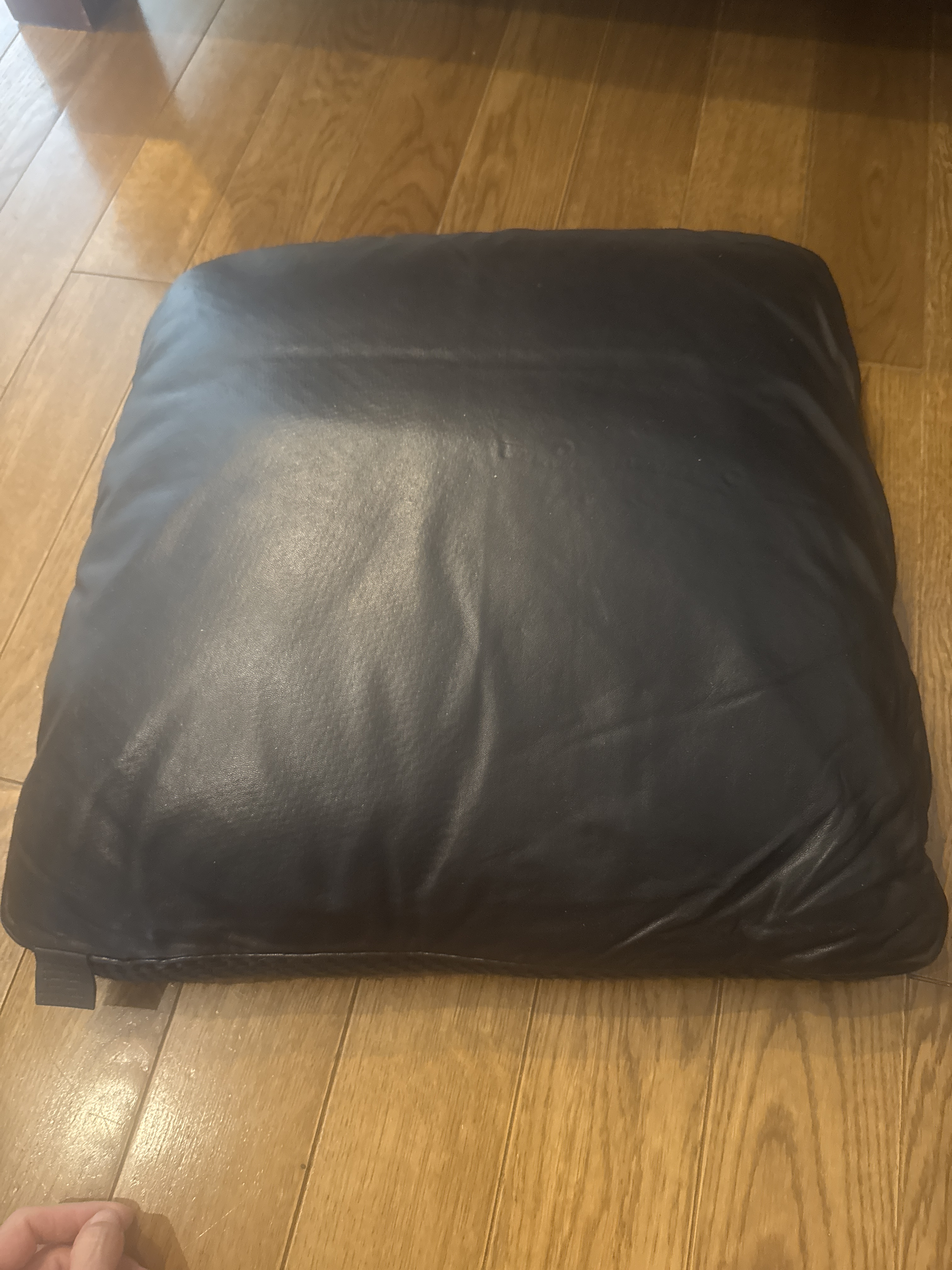 "Dwustronna skórzana poduszka. Stan bardzo dobry, wymiary 45 cm x 45 cm. Została zakupiona w Paryżu w second hand."